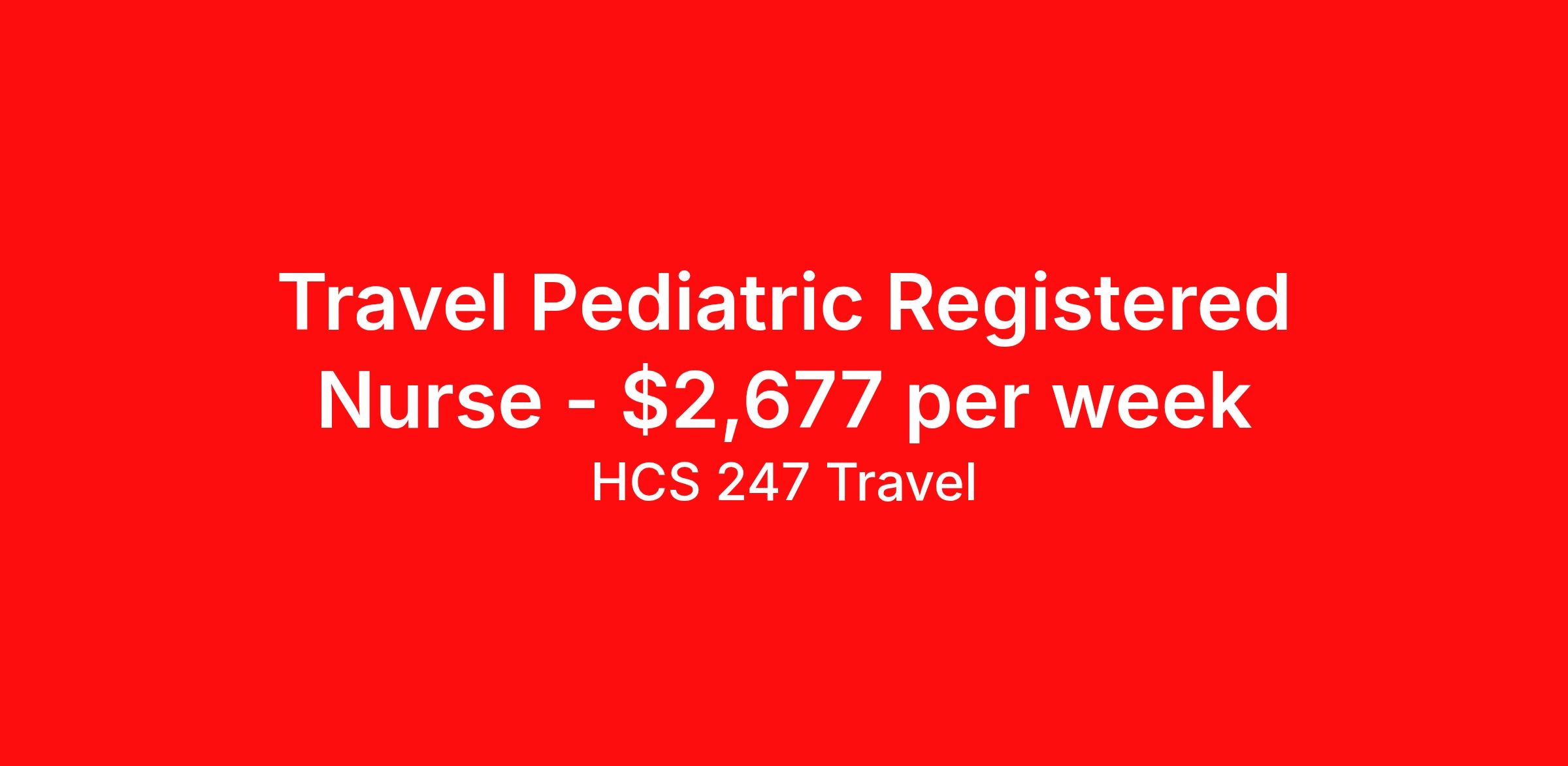 HCS 247 Travel is seeking a travel nurse RN Pediatrics for a travel nursing job in Pittsfield, Massachusetts. Job Description & Requirements Specialty: Pediatrics Discipline: RN Start Date: 04/13/2026 Duration: 13 weeks 36 hours per week Shift: 12 hours, days Employment Type: Travel HCS 247 Travel Job ID 62299604. Pay package is based on 12 hour shifts and 36 hours per week (subject to confirmation) with tax-free stipend amount to be determined. About HCS 247 Travel HCS 24/7 is a national healthcare staffing organization specializing in the placement of Registered Nurses and Allied health professionals across acute care and other clinical settings. We support travel assignments, local short- and long-term contracts, per diem, temp-to-perm, and direct hire opportunities nationwide. Our clinical coverage includes Registered Nurse specialties such as ER, ICU, Med-Surg, Telemetry, Step-Down, OR, PACU, L&D, Mother/Baby, NICU, Cath Lab, Endoscopy, and more along with a full range of allied and imaging professionals, including Respiratory Therapists, Surgical Technicians, X-Ray Techs, CT Techs, MRI Techs, Interventional Radiology (IR) Techs, Cath Lab Techs, Ultrasound/Sonographers, Mammography Techs, and Nuclear Medicine Techs. With competitive compensation and benefits, consistent opportunities, and a clinician-first approach backed by top-rated customer service, HCS 24/7 delivers a seamless experience from initial application through assignment completion. Benefits Holiday Pay Guaranteed Hours Continuing Education Mileage reimbursement Referral bonus Medical benefits Dental benefits Vision benefits License and certification reimbursement Life insurance Benefits start day 1 Weekly pay