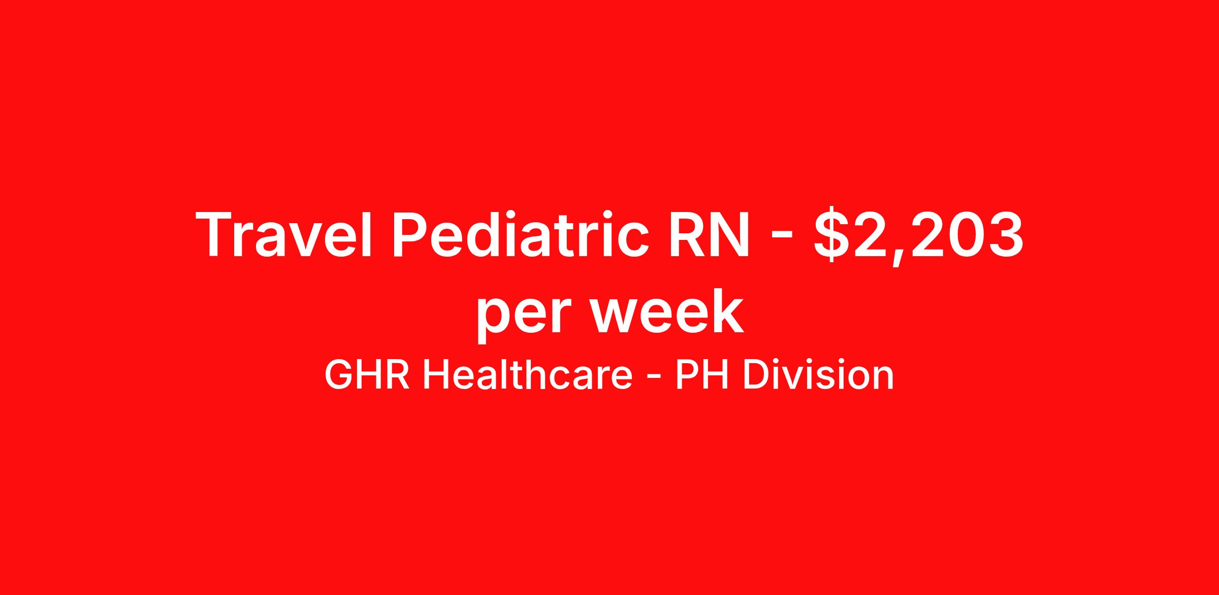GHR Healthcare - PH Division is seeking a travel nurse RN Pediatrics for a travel nursing job in Mason City, Iowa. Job Description & Requirements Specialty: Pediatrics Discipline: RN Start Date: 04/06/2026 Duration: 12 weeks 36 hours per week Shift: 12 hours Employment Type: Travel Planet Healthcare Job ID 74107020. Pay package is based on 12 hour shifts and 36 hours per week (subject to confirmation) with tax-free stipend amount to be determined. About GHR Healthcare - PH Division For over 30 years, GHR Healthcare has been the bridge between healthcare professionals and the facilities that need them nationwide. We're committed to uncovering your ideal fit, supported by GHR's dedication to competitive compensation, transparent communication, and a devoted team that genuinely cares about your career journey. You can trust us to stand by your side as your advocate, confidante, and partner in advancing your career. At GHR, care and consideration are at the heart of everything we do. Visit ghrhealthcare.com to learn more.