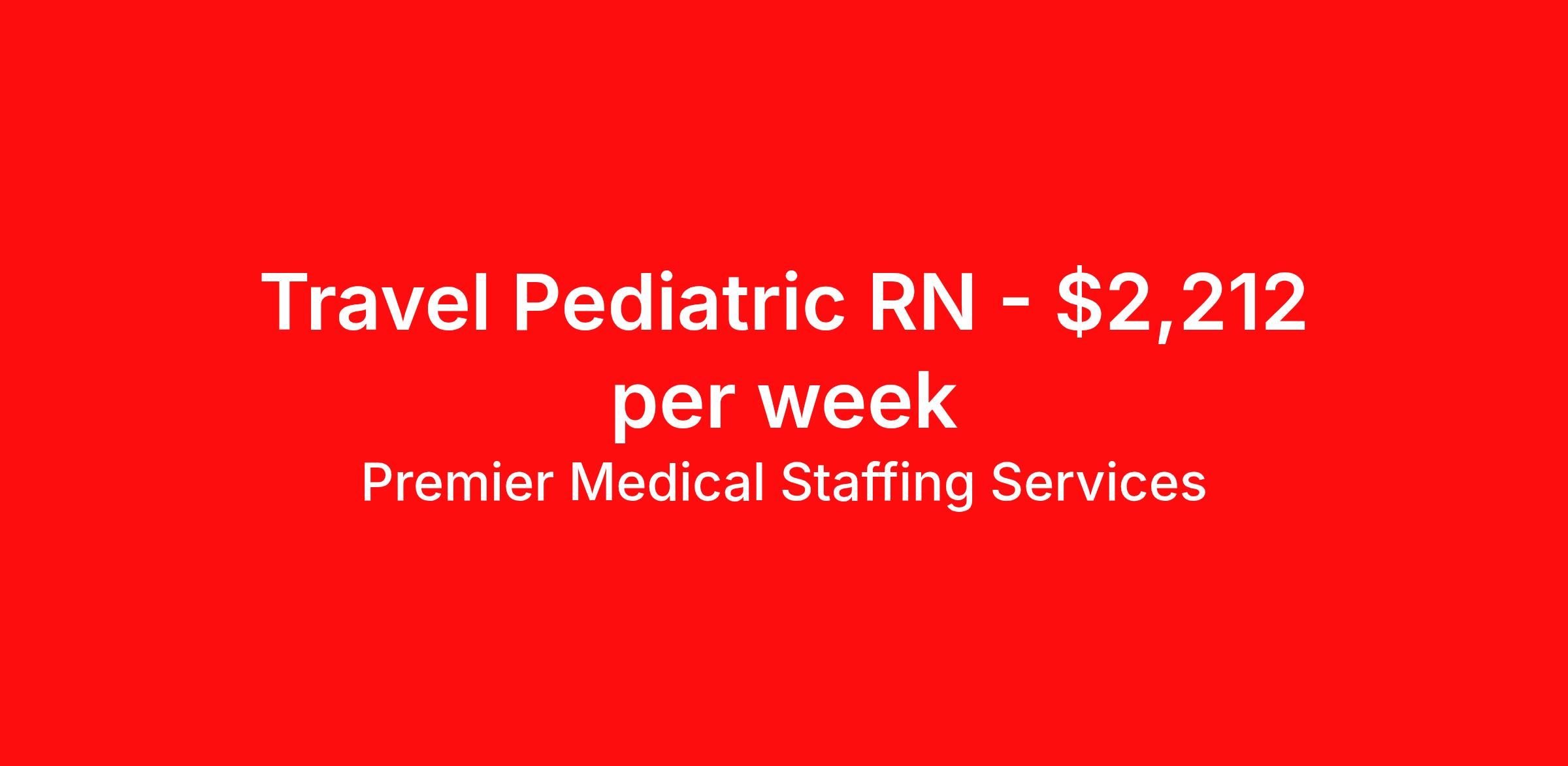 Premier Medical Staffing Services is seeking a travel nurse RN Pediatrics for a travel nursing job in Mason City, Iowa. Job Description & Requirements Specialty: Pediatrics Discipline: RN Start Date: 04/06/2026 Duration: 12 weeks 36 hours per week Shift: 12 hours Employment Type: Travel Premier Medical Staffing Job ID 604427. Pay package is based on 12 hour shifts and 36 hours per week (subject to confirmation) with tax-free stipend amount to be determined. Posted job title: RN PICU About Premier Medical Staffing Services Premier Medical Staffing Services, LLC is a nationally expanding healthcare staffing firm for healthcare professionals and companies. We understand our clients’ need for highly qualified, expertly trained medical professionals and are passionate about helping clinicians find employment opportunities that fit their personality and needs. Able to accommodate the ever-changing needs of the healthcare landscape, we offer per-diem, contract and direct hire placements to support the unique needs of each industry sector. Premier Medical Staffing Services is Joint Commission Certified, a Military Spouse Employment Partner and is certified as a Women’s Business Enterprise. We are proudly nurse owned.