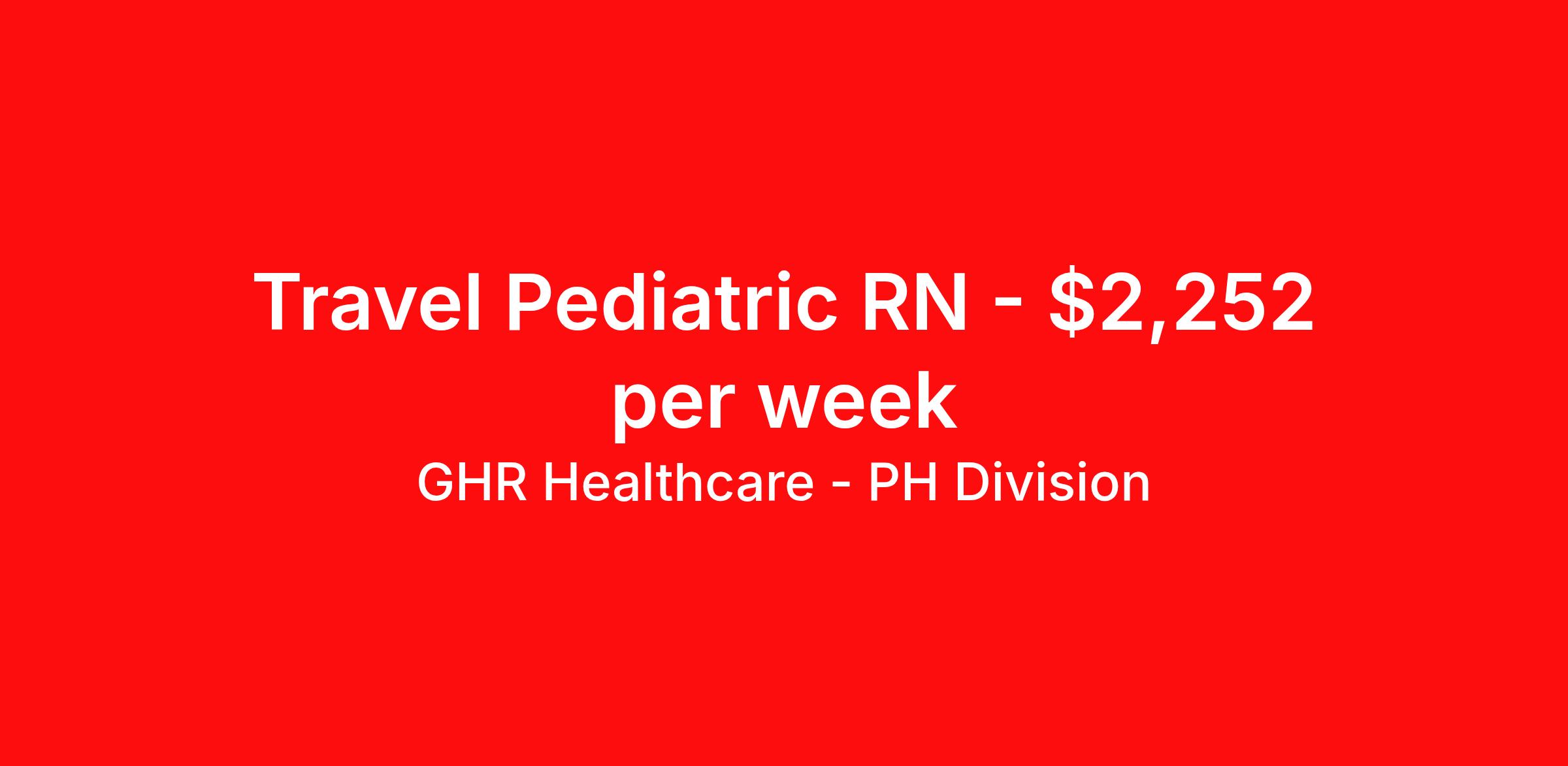 GHR Healthcare - PH Division is seeking a travel nurse RN Pediatrics for a travel nursing job in Mason City, Iowa. Job Description & Requirements Specialty: Pediatrics Discipline: RN Start Date: 03/30/2026 Duration: 12 weeks 36 hours per week Shift: 12 hours Employment Type: Travel Planet Healthcare Job ID 74107020. Pay package is based on 12 hour shifts and 36 hours per week (subject to confirmation) with tax-free stipend amount to be determined. About GHR Healthcare - PH Division For over 30 years, GHR Healthcare has been the bridge between healthcare professionals and the facilities that need them nationwide. We're committed to uncovering your ideal fit, supported by GHR's dedication to competitive compensation, transparent communication, and a devoted team that genuinely cares about your career journey. You can trust us to stand by your side as your advocate, confidante, and partner in advancing your career. At GHR, care and consideration are at the heart of everything we do. Visit ghrhealthcare.com to learn more.