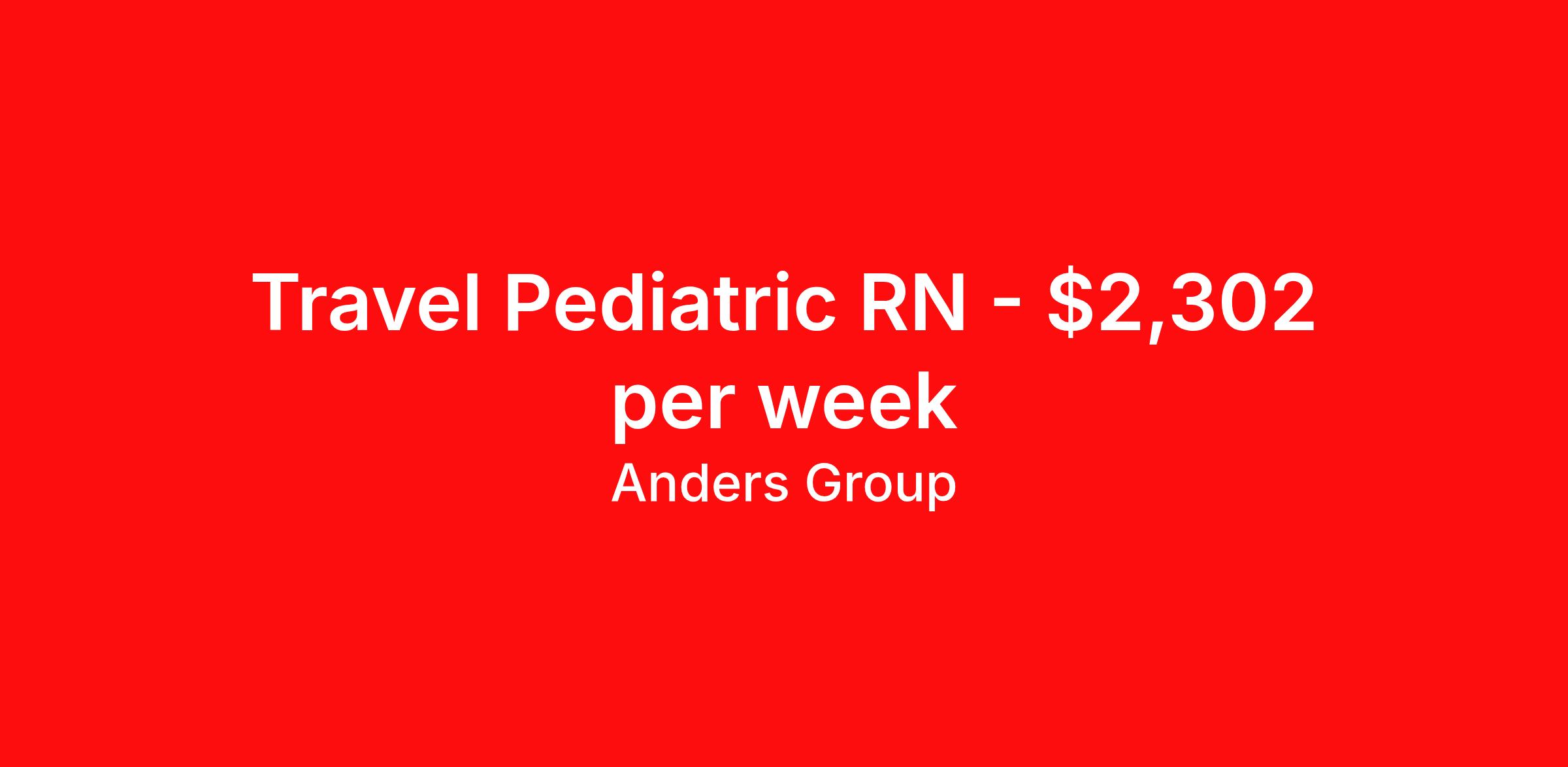 Anders Group is seeking a travel nurse RN Pediatric Med Surg for a travel nursing job in Oklahoma City, Oklahoma. Job Description & Requirements Specialty: Pediatric Med Surg Discipline: RN Start Date: ASAP Duration: 13 weeks 36 hours per week Shift: 12 hours, days Employment Type: Travel Anders Group Job ID 998678. Pay package is based on 12 hour shifts and 36 hours per week (subject to confirmation) with tax-free stipend amount to be determined. Posted job title: RN Medicine - Pediatrics - FS About Anders Group WHY ANDERS? Anders Group is a Joint Commission accredited staffing agency and stands out from other agencies by our commitment to making sure our travelers are given the best customer service. Our team works hard to find the best jobs with the most aggressive rates! Anders Group offers rewarding assignments and competitive compensation packages, nationwide! We offer the following benefits from day one: Health Insurance, Including a Buy-up Option Dental Insurance Vision Insurance Life Insurance 401(k) Licensure Reimbursement Premium Pay Packages CEU Reimbursements Daily Per Diems Travel Reimbursements Rental Car Allowances Continuing Education Resources Referral Bonus And Many More! THE ANDERS DIFFERENCE You're committed to providing exceptional healthcare. We're committed to you. Anders Group was founded by a team of healthcare recruiters who had built strong relationships with healthcare facilities and professionals nationwide. As staffing firms shifted their focus to numbers and margins, these recruiters saw a need for a company to take a different approach to staffing. Anders Group was founded in 2010 to do just that. We focus on individual and facility goals to make quality placements. Great people working with great facilities make for the best placements. Through our focus on providing the best experience to Allied and Nursing health care professionals, Anders Group has grown to be a top staffing firm in Healthcare. We look forward to working with you! Benefits Medical benefits Dental benefits Vision benefits Life insurance 401k retirement plan License and certification reimbursement Continuing Education Referral bonus