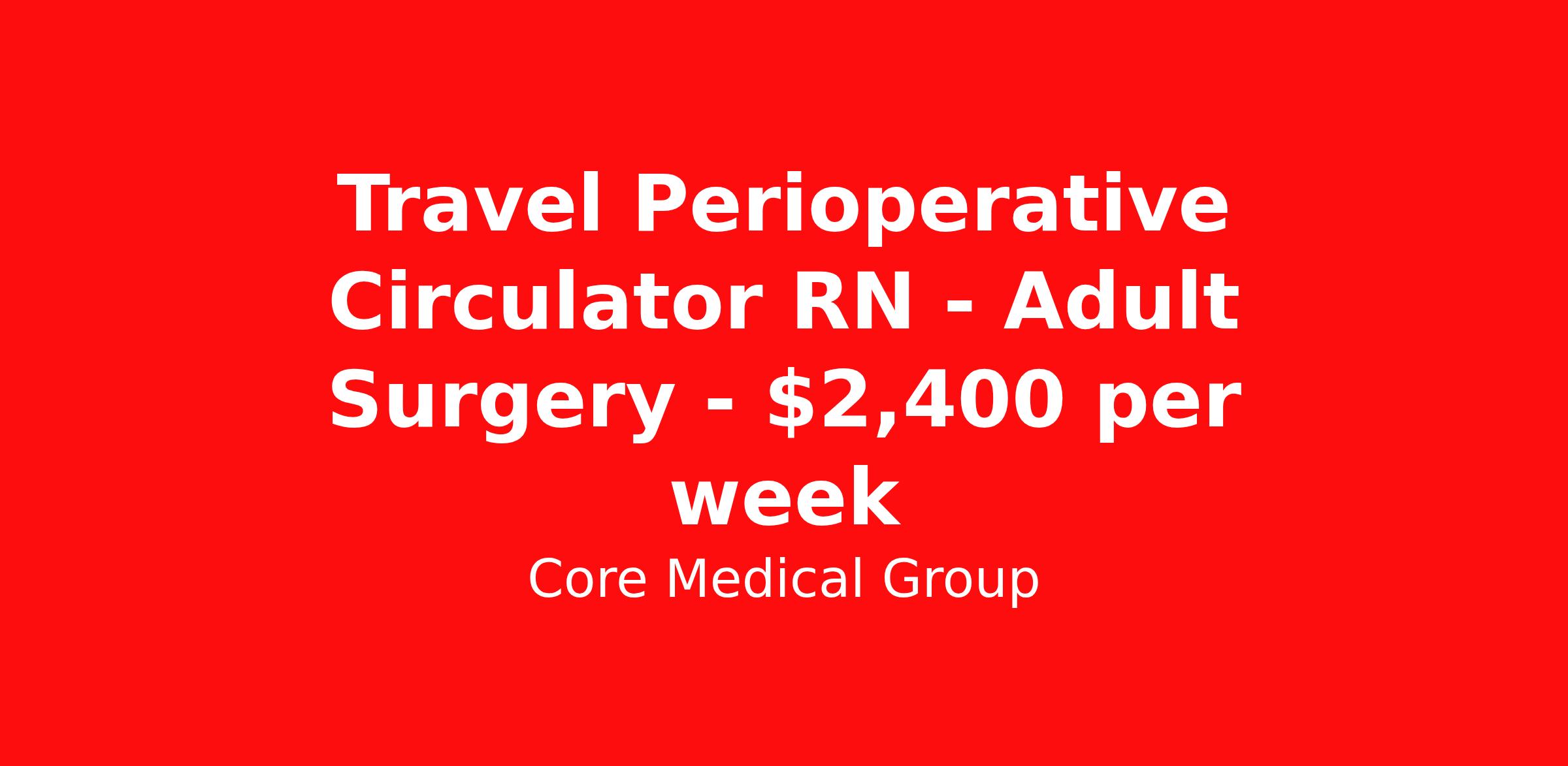 Core Medical Group is seeking a travel nurse RN OR - Operating Room for a travel nursing job in Oklahoma City, Oklahoma. Job Description & Requirements Specialty: OR - Operating Room Discipline: RN Start Date: 04/06/2026 Duration: 13 weeks 40 hours per week Shift: 8 hours Employment Type: Travel Client in OK seeking Registered Nurse: Operating Room for the following shift(s): Days We are looking for a healthcare professional who is ready to provide exceptional patient care in this contract/travel role. Contract/travel assignments are typically 13 weeks, with potential to extend. Help us continue our mission to connect people, improve lives, and give back to the community by joining the CoreMedical Group team. When you work with CoreMedical Group, we put you first and treat you like family, supporting you every step of the way. CoreMedical Group is one of the largest healthcare staffing agencies in the country, with travel and contract positions located across the United States. Our recruiters will help you find the perfect job, whether it's across the country or across the street. In addition to dedicated, personalized support from your recruiter, when you work with CoreMedical Group you'll receive: Access to an extensive benefits package, including day 1 health, dental, and vision insurance, employer paid life insurance, a health reimbursement account, and more! Weekly paychecks with competitive pay packages Matching 401(k) benefits to help you save for retirement Licensure assistance and reimbursement to set you up for success on your contract Travel reimbursement and dedicated housing support while on assignment Referral cash bonuses when you connect us with other clinicians CoreMedical Group also offers you a free, all-inclusive vacation each year as our way of saying "thank you" for your hard work. Join other healthcare professionals on the annual Club CoreMed retreat and you'll see why our contract and travel professionals come back to us year after year! Your career is too valuable to tackle on your own. Let CoreMedical Group help you with your healthcare journey! *Estimate of weekly payments is intended for informational purposes and includes hourly wages, as well as reimbursements for meal & incidental expenses, and housing expenses incurred on behalf of the Company. Any benefits (medical/dental/vision) are in addition to the weekly pay. Please speak with your Recruiter for additional details. Estimated payments are subject to change until formal offer of assignment is made and accepted. Core Medical Group Job ID 1364420. Pay package is based on 8 hour shifts and 40 hours per week (subject to confirmation) with tax-free stipend amount to be determined. Posted job title: RN About Core Medical Group CoreMedical Group is one of the largest healthcare staffing agencies in the country. We have jobs nationwide in travel nursing, travel allied health, interim, locum tenens, and permanent placements! Join the staffing agency with Club CoreMed, the best perk in the industry - an all inclusive paid trip to a tropical resort! Benefits Weekly pay Holiday Pay Guaranteed Hours Continuing Education 401k retirement plan Pet insurance Company provided housing options Sick pay Wellness and fitness programs Mileage reimbursement Referral bonus Employee assistance programs Medical benefits Dental benefits Vision benefits Benefits start day 1 License and certification reimbursement Life insurance Discount program