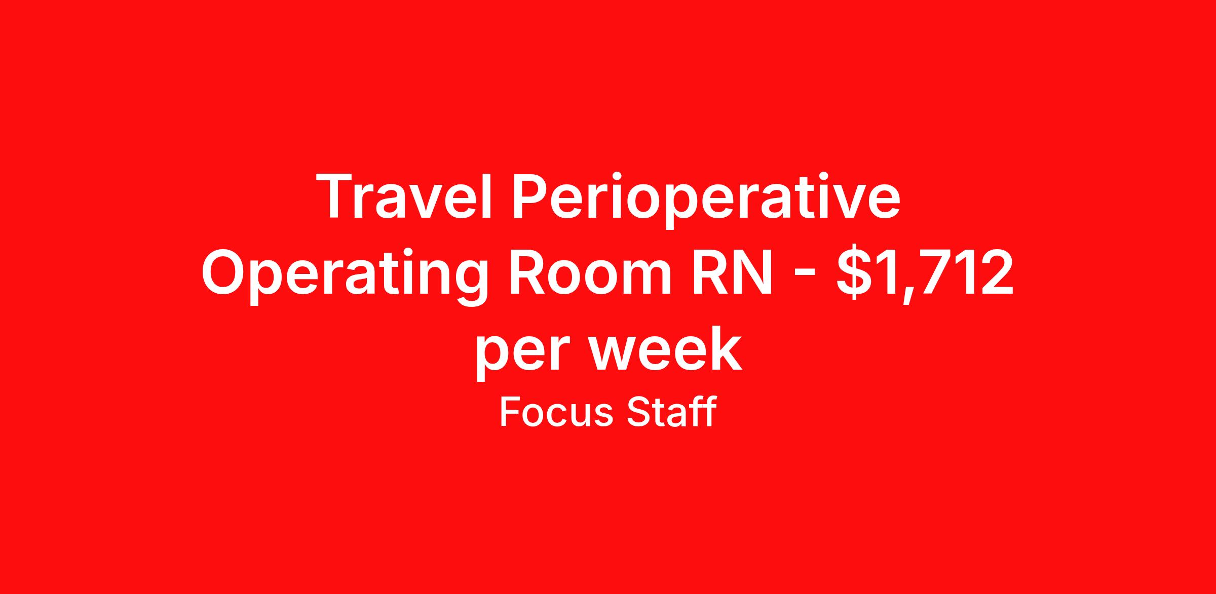 Focus Staff is seeking a travel nurse RN OR - Operating Room for a travel nursing job in Atlanta, Georgia. Job Description & Requirements Specialty: OR - Operating Room Discipline: RN Start Date: 04/13/2026 Duration: 13 weeks 40 hours per week Shift: 8 hours, days Employment Type: Travel Focus Staff is seeking a Operating Room Nurse for a travel contract in Atlanta, GA. The ideal candidate will have at least 1 year of experience in a OR setting. Contract Length: 13 Weeks Start Date: 04/13/2026 Shift: 5x8 Days Benefits for Travel RN ORs: Health insurance Vision insurance Dental insurance Life insurance Licensure reimbursement Travel reimbursement Relocation assistance 401(k) 401(k) matching Competitive pay Referral bonus Holiday bonus Requirements: 1 Year of Experience, 2 Preferred Valid GA RN License BLS (Basic Life Support) ACLS Eligible to work in the United States About Focus Staff: Focus Staff is a traveler-first nurse and healthcare staffing agency! We prioritize the needs of our travelers, giving you complete control over your journey. Our mission is to help you create the life you love, explore the country and do what you do best, help others. Interested in becoming a traveler with Focus Staff? Discover why travelers choose us, apply today! All-Star Status: Dallas 100 (Multiple Years in a Row) Inc. 5000 Middle Market 50 Certified by The Joint Commission Best of Staffing Talent Satisfaction 2022 Best of Staffing Client Satisfaction 2022 Fastest-Growing US Staffing Firms 2017 If you’re seeking a Travel Operating Room Nurse position in Atlanta, GA and are looking to work with an agency that will listen to your needs and career goals, then Focus Staff is the right place to be. We are proud of our ability to build relationships with all our healthcare professionals, whether you’re seeking travel assignments, PR or permanent positions. We Offer: Immediate Openings Weekly Pay through Direct Deposits Flexible Schedules Day and Night Shifts Available Competitive Compensation Guaranteed Hours (based on employer) Travel Assistance Dedicated/Responsive Recruiters Day One Medical, Dental, Vision and Life Insurance Generous Housing Stipend 24/7 Support Company Provided Housing Options Referral Bonus ($600) Loyalty Bonus ($1,200) Discounts/Coupons to Hotels Access to Jobs in all 50 States Painless Credentialing Process U.S.A.-based Company Equal Opportunity Employer Joint Commission Certified Licensure Reimbursement Pet-Friendly Access to Discounts, Rewards, and more Other Information: Job Title: Travel Operating Room Nurse Employment Time: Contract/Travel Date Posted: 03/10/2026 02:45:29 PM Valid Through: 07/11/2026 Job City: Atlanta Job State: GA Job Country: USA Shift: 5x8 Days Job ID: a0xVt00000JYRkQIAX Hiring Organization: Focus Staff Focus Staff is an EEO/AA (Equal Employment Opportunity and Affirmative Action) Employer. Estimated pay package based on bill rate at time job was posted. Bill rates can change frequently and without notice. Exact pay package may vary based on several factors, including, but not limited to, guaranteed hours, travel distance, demand, experience, etc. RN, Registered Nurse, Travel Nurse, Travel RN, Travel OR RN, RN OR, Nurse Practitioner, RN Operating Room, Operating Nurse, RN Operating Room Jobs, Operating Room Travel Nurse, Travel, Contract, Assignment, Nursing, Contract RN, Temporary RN Focus Staff Job ID a0xVt00000JYRkQIAX. Pay package is based on 8 hour shifts and 40 hours per week (subject to confirmation) with tax-free stipend amount to be determined. Posted job title: Travel OR RN - Operating Room Registered Nurse About Focus Staff Your Journey, Our Focus. Travel Confidently, Care Boldly with Focus Staff. At Focus Staff, we’re here to make your travel healthcare career rewarding, seamless, and stress-free. Whether you’re a travel nurse, therapist, or allied health professional, we take care of the details so you can focus on what you do best — caring for others. Our mission is simple: to help healthcare heroes like you thrive, no matter where your journey takes you. With thousands of job opportunities across all 50 states, our dedicated recruiters work closely with you to match you to the right assignment, based on what matters most to you — pay, location, benefits, or career growth. From day one, you’ll enjoy premium benefits like medical coverage that bridges between assignments, 401K matching, travel and licensing reimbursements, and personalized housing support. Plus, our team is here for you 24/7, with clinical support available whenever you need guidance or backup. At Focus Staff, we believe in making every assignment a smooth, comfortable, and empowering experience. Let’s make your next adventure your best one yet.