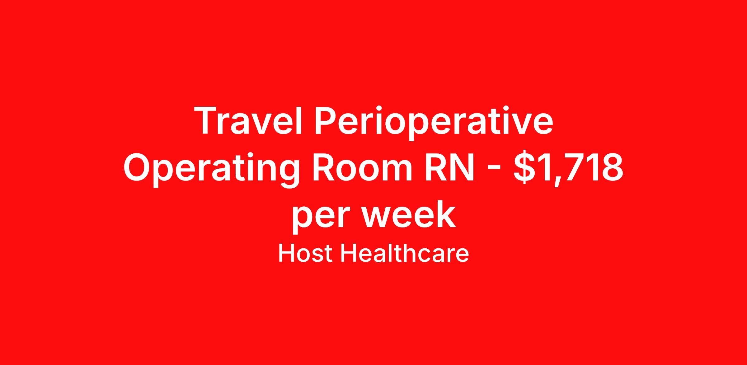 Host Healthcare is seeking a travel nurse RN OR - Operating Room for a travel nursing job in Atlanta, Georgia. Job Description & Requirements Specialty: OR - Operating Room Discipline: RN Start Date: 04/13/2026 Duration: 13 weeks 40 hours per week Shift: 8 hours, days Employment Type: Travel Host Healthcare Job ID a1fVX000002wBy1YAE. Pay package is based on 8 hour shifts and 40 hours per week (subject to confirmation) with tax-free stipend amount to be determined. Posted job title: RN - Operating Room About Host Healthcare At Host Healthcare, we provide a truly comfortable experience as you explore your travel nursing, therapy, or allied career. We make your travel healthcare journey easy by taking care of all the details, so you don’t have to. We are on a mission to help others live better and we do this by helping the healers of the world be as comfortable as possible. With access to tens of thousands of travel nursing, therapy, and allied jobs in all 50 states, our responsive and friendly recruiters find your dream position based on what’s important to you. During your assignment, get access to premium benefits, including Day 1 medical that continues up to 30 days between assignments, 401K matching, travel reimbursements, dedicated housing support, and more. We also offer 24/7 support from our team and access to our on-staff clinicians so you can feel comfortable and confident throughout your entire assignment. Travel comfortably with Host Healthcare. Benefits Referral bonus School loan reimbursement Vision benefits Wellness and fitness programs Company provided housing options License and certification reimbursement Life insurance Medical benefits Mileage reimbursement Pet insurance Discount program Employee assistance programs Guaranteed Hours Health savings account Holiday Pay 401k retirement plan Continuing Education Dental benefits