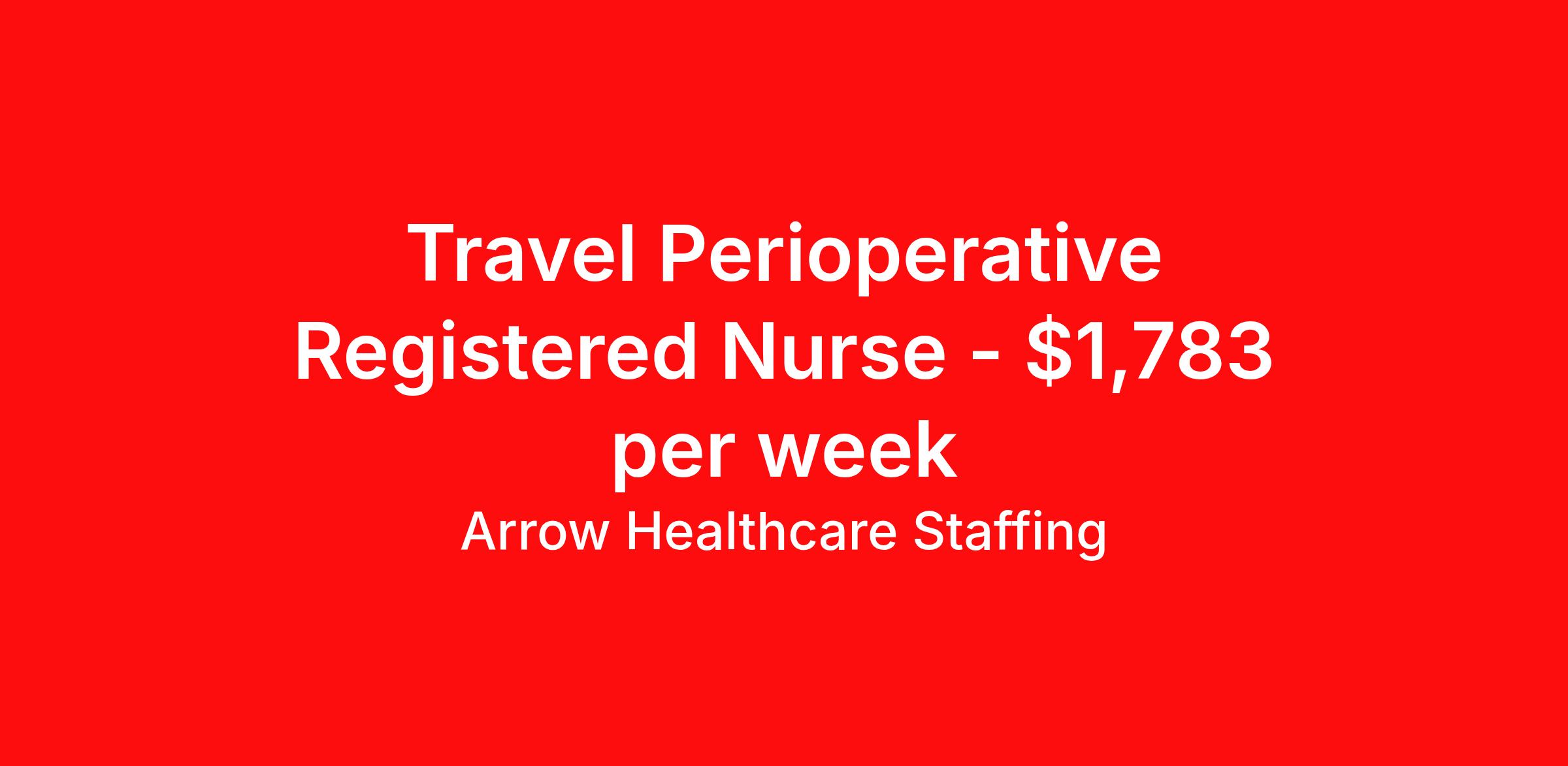 Arrow Healthcare Staffing is seeking a travel nurse RN Perioperative for a travel nursing job in Atlanta, Georgia. Job Description & Requirements Specialty: Perioperative Discipline: RN Start Date: 04/13/2026 Duration: 13 weeks 40 hours per week Shift: 8 hours, days Employment Type: Travel Arrow Healthcare Staffing Job ID 17916789. Pay package is based on 8 hour shifts and 40.0 hours per week (subject to confirmation) with tax-free stipend amount to be determined. Posted job title: RN - Pre-Op/Post-OP/Same Day Surgery RN Pre-Op/Post-OP/Same Day Surgery About Arrow Healthcare Staffing Arrow Healthcare Staffing is a Midwest based travel nursing and allied health recruiting firm. We specialize in local/ travel nursing, medical laboratory, pharmacy, radiology/imaging, therapy, and executive/leadership recruitment. We offer direct hospital contracts and all of the top benefits in the marketplace today. Benefits Medical benefits Vision benefits Weekly pay Benefits start day 1 Holiday Pay 401k retirement plan Dental benefits License and certification reimbursement Guaranteed Hours Continuing Education Cancelation protection Mileage reimbursement Referral bonus