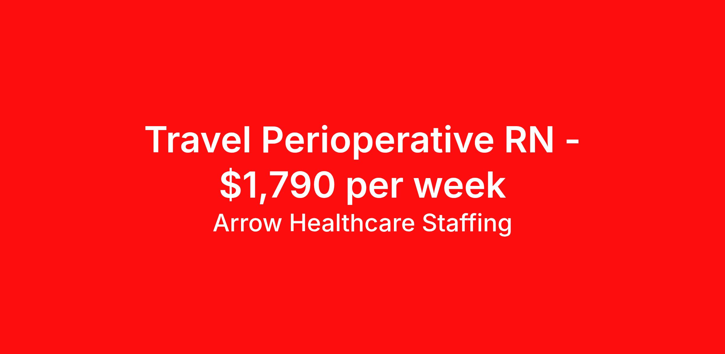 Arrow Healthcare Staffing is seeking a travel nurse RN Perioperative for a travel nursing job in Canton, Georgia. Job Description & Requirements Specialty: Perioperative Discipline: RN Start Date: 04/13/2026 Duration: 13 weeks 40 hours per week Shift: 8 hours, days Employment Type: Travel Arrow Healthcare Staffing Job ID 17923774. Pay package is based on 8 hour shifts and 40.0 hours per week (subject to confirmation) with tax-free stipend amount to be determined. Posted job title: RN - Discharge Planner RN Discharge Planner About Arrow Healthcare Staffing Arrow Healthcare Staffing is a Midwest based travel nursing and allied health recruiting firm. We specialize in local/ travel nursing, medical laboratory, pharmacy, radiology/imaging, therapy, and executive/leadership recruitment. We offer direct hospital contracts and all of the top benefits in the marketplace today. Benefits Medical benefits Vision benefits Weekly pay Benefits start day 1 Holiday Pay 401k retirement plan Dental benefits License and certification reimbursement Guaranteed Hours Continuing Education Cancelation protection Mileage reimbursement Referral bonus