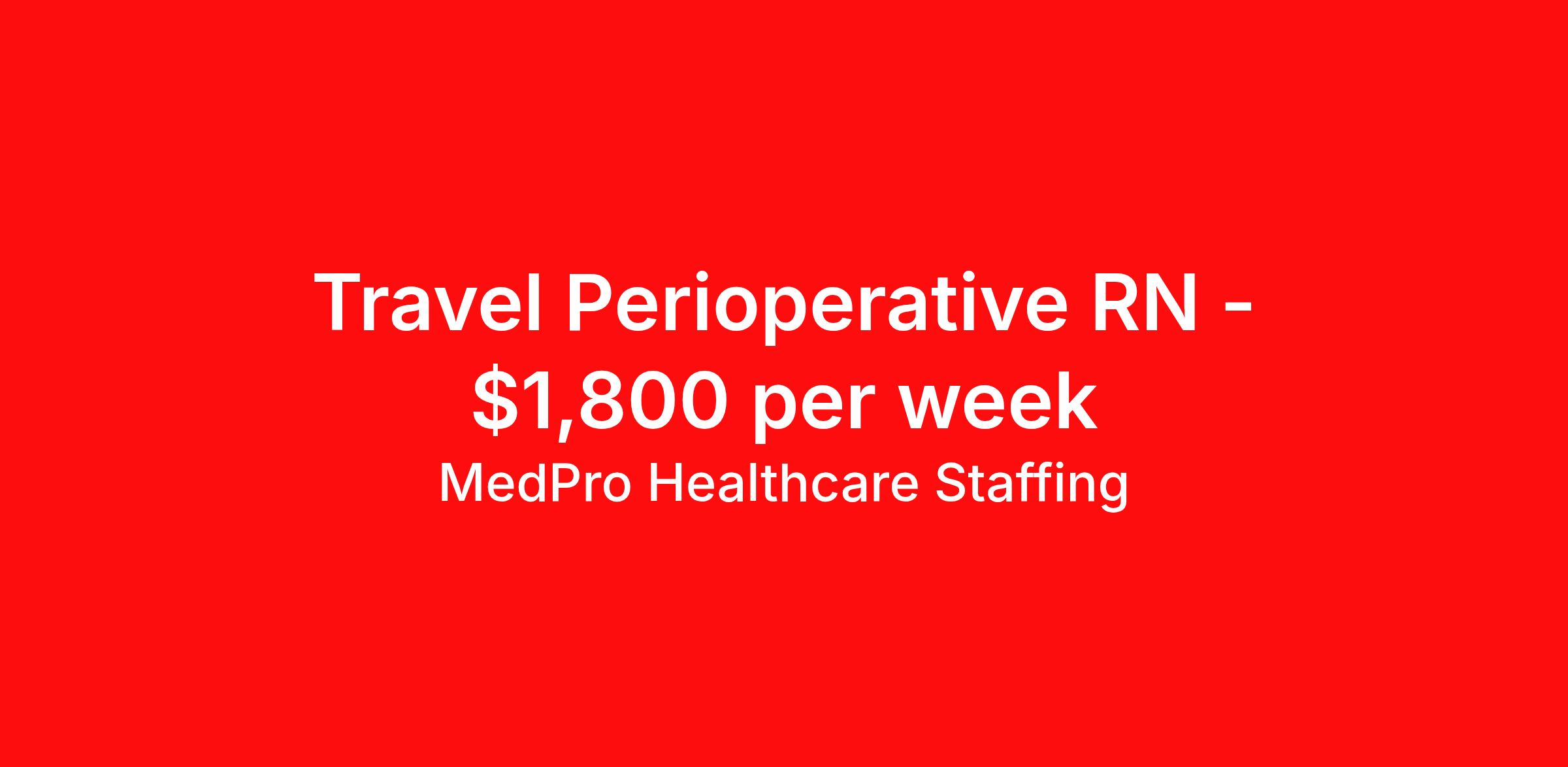 MedPro Healthcare Staffing is seeking a travel nurse RN PACU - Post Anesthesia Care for a travel nursing job in Canton, Georgia. Job Description & Requirements Specialty: PACU - Post Anesthesia Care Discipline: RN Start Date: 04/13/2026 Duration: 13 weeks 40 hours per week Shift: 8 hours, days Employment Type: Travel MedPro Healthcare Staffing , a Joint Commission-certified staffing agency, is seeking a quality PACU Registered Nurse (RN) for a travel assignment with one of our top healthcare clients. Requirements Active RN License Degree from accredited nursing program BLS, & ACLS Certifications Eighteen months of recent experience in an Acute Care PACU setting Other requirements to be determined by our client facility Benefits Weekly pay and direct deposit Full coverage of all credentialing fees Private housing or housing allowance Group Health insurance for you and your family Company-paid life and disability insurance Travel reimbursement 401(k) matching Unlimited Referral Bonuses up to $1,000 Duties Responsibilities Post Anesthesia Care Unit / PACU RN will assist in recovering the patients from anesthesia. They also monitor patients while they wake up from surgery until they are released, either by discharge to outpatient or transfer to the floor for their patient stay. Provide care for post-operative patients recovering from anesthesia, including general, regional, and local. Treats inpatients and outpatients according to their needs. Administer diligent care via monitoring, assessment, intervention, and continuous reassessment. About Agency MedPro Healthcare Staffing is a Joint Commission certified provider of contract staffing services. Since 1983, we have placed nursing and allied travelers in top healthcare facilities nationwide. Join us today for your very own MedPro Experience®. If qualified and interested, please call for immediate consideration. MedPro Staffing is an Equal Opportunity Employer. All applicants will be considered for employment without attention to race, color, religion, national origin, age, sex, disability, marital status or veteran status. Key Words: Registered Nurse, RN, Operating Room, Scrub, Circulate, OR, Contract Nurse, Travel Nurse, Agency RN, Travel RN, Nursing, Contract, Perioperative nurse *Weekly payment estimates are intended for informational purposes only and include a gross estimate of hourly wages and reimbursements for meal, incidental, and housing expenses. Your recruiter will confirm your eligibility and provide additional details. MedPro Job ID a0Fcx00000Gbh4pEAB. Pay package is based on 8 hour shifts and 40 hours per week (subject to confirmation) with tax-free stipend amount to be determined. Posted job title: PACU Registered Nurse Nursing: PACU - Recovery Room. About MedPro Healthcare Staffing At MedPro Healthcare Staffing , we believe no one cares more for caregivers than we do. Our mission is simple: you focus on your patients, and we’ll take care of the rest. As a Joint Commission-certified leader in temporary and contract healthcare staffing since 1983, MedPro has proudly connected nursing and allied travelers with top healthcare facilities across the nation. With thousands of job opportunities available nationwide, we make it easy to find assignments that align with your goals and lifestyle. Our on-staff clinical support team—alongside a compassionate group of experienced recruiters—provides hands-on guidance every step of the way. From Day 1 medical benefits and a 401(k) plan to personalized career support, we’re committed to ensuring every professional we serve feels valued, cared for, and empowered to succeed. Guided by a CEO who is a Registered Nurse, MedPro is built on a foundation of clinical insight and genuine compassion for the caregiving community. Through The MedPro Experience® , we deliver travel assignments that are rewarding, memorable, and designed to help you DREAM big, EXPLORE often, and ACHIEVE greatness. Benefits Day 1 medical, dental, and vision benefits for you and your family Weekly pay and direct deposit Unlimited Referral Bonuses starting at $500 On Staff Clinical Support Team Access to nationwide travel assignments MPX Mobile app -24/7 real-time access to jobs, credentials, assignment details, and more Full coverage of all credentialing fees Private housing or housing allowance Tax Free Per Diems, Housing Stipends and Travel Reimbursements Company-paid life and disability insurance Travel reimbursement 401(k) matching Benefits Weekly pay Referral bonus Employee assistance programs