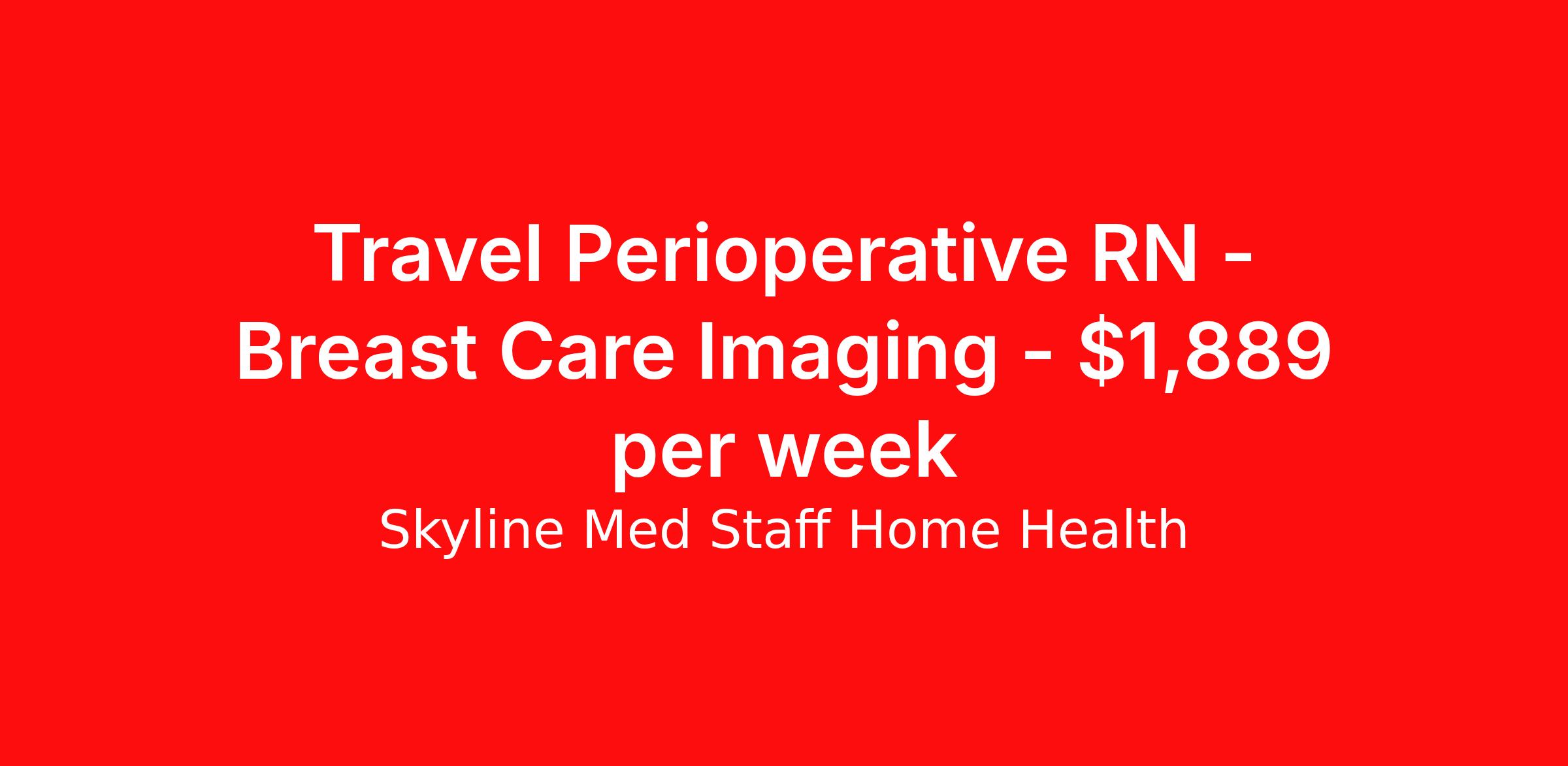 Skyline Med Staff Home Health is seeking a travel nurse RN Radiology for a travel nursing job in Atlanta, Georgia. Job Description & Requirements Specialty: Radiology Discipline: RN Start Date: 04/13/2026 Duration: 13 weeks 40 hours per week Shift: 8 hours, days Employment Type: Travel Weekly amount stated in the job postings is estimated based on estimated hourly wages and potential stipends available for the location of the assignment. Pay package is calculated on bill rate at the time job was posted, but can change or vary without notice. Exact pay packages might vary as this is an estimate. Our recruiter would be happy to build an exact pay package for you for each job. Skyline Med Staff Home Health Job ID 36142373. Pay package is based on 8 hour shifts and 40.0 hours per week (subject to confirmation) with tax-free stipend amount to be determined. Posted job title: RN:Pre Op, Post Op, Same Day Surgery,07:00:00-15:00:00 About Skyline Med Staff Home Health Join the Top- Rated Travel Healthcare Team! Skyline Med Staff was named as the 1 Best Travel Healthcare Company in 2025 by BluePipes, a recognition driven by glowing reviews from travel healthcare professionals. Our recruiters are consistently praised on Google for their responsiveness, dedication, accessibility, and industry knowledge. Ready to experience the difference? Apply for a job today and see why healthcare professionals choose Skyline! Certified Women Owned Business We believe that travel is good for the soul. We want to be on your journey with you and find the right job that fits you Skyline Med Staff is committed to one vision treating others the way that THEY want to be treated. The executive team at Skyline Med Staff focuses on a commitment to quality, consistency, and the highest level of service. Our team members continually strive to build long term relationships that center on you and helping you achieve your goals. Some of the Benefits you will receive with Skyline Med Staff: Over 30 years of combined experience in the staffing industry Higher Take-Home Pay Rates Dedicated Personal Recruiter We are available to you 24/7 Health Insurance Plan Options Tax Free Per Diems, Housing Stipends and Travel Reimbursements Joint Commission Certified Contracts in all 50 states Referral and Loyalty Bonuses Benefits Medical benefits Referral bonus