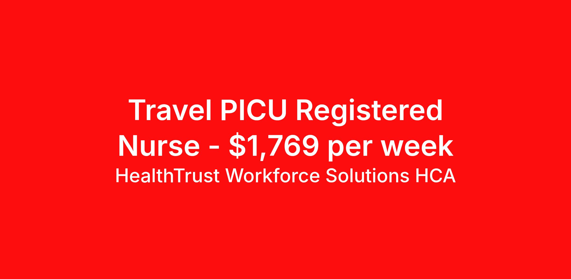 HealthTrust Workforce Solutions HCA is seeking a travel nurse RN PICU - Pediatric Intensive Care for a travel nursing job in Austin, Texas. Job Description & Requirements Specialty: PICU - Pediatric Intensive Care Discipline: RN Duration: 13 weeks 36 hours per week Shift: 12 hours, nights Employment Type: Travel Entrust Your Career to HealthTrust! At HealthTrust, we believe that healthcare is not defined by the four walls in which it is practiced; it’s defined by its people. We pride ourselves on crafting opportunities that expand skill sets, broaden career horizons, provide economic stability, and cultivate personal growth. HealthTrust Offers: Competitive Pay Packages Guaranteed hours Weekly direct deposit options 401k with Company Match Earn up to $750 for referrals Free Private Furnished Housing or Tax-Free Subsidy To get started, you will need: RN's a minimum of 1 year in specialty Allied 6 months of experience An adventurous spirit and fierce dedication Degree in corresponding specialty as required Appropriate certifications and licensure as needed for the specific position HealthTrust Benefits: Opportunities for a lifetime: When you become a part of the HCA family, you will have exclusive access to more opportunities than any other healthcare system in the nation. At HWS, we help open the door to a lifetime of lasting career opportunities. A culture of care: Our clinicians have made HWS an industry leader for over 25 years. We are passionate about our mission that, above all else, we are committed to the care and improvement of human life. Career Development: As a wholly owned subsidiary of HCA Healthcare, HWS is a preferred partner to thousands of top-performing hospitals. We provide our healthcare professionals with first-priority access to more than 200,000 jobs nationwide. We are uniquely positioned to offer you exclusive and direct access to HCA Healthcare’s vast network of facilities. Let us open the door to nationwide opportunities that fit your lifestyle! We are an equal opportunity employer and value diversity at our company. We do not discriminate on the basis of race, religion, color, national origin, gender, sexual orientation, age, marital status, veteran status, or disability status. Job Requirements Certifications PALS (Required) BLS (Required) HealthTrust Workforce Solutions HCA Job ID 981794. Posted job title: Travel Nurse - Pediatric ICU (PICU) About HealthTrust Workforce Solutions HCA At HealthTrust Workforce Solutions, healthcare is not just about the four walls of a facility but about the people who provide and receive care. Our focus is on empowering healthcare professionals to deliver exceptional patient experiences by providing them with the necessary skills, tools, and support. We partner with healthcare facilities nationwide to ensure that the right professionals are in the right roles. We prioritize our clinicians by giving them a voice and access to opportunities to fulfill their mission of improving lives by providing quality patient care. We are committed to our core values of Trust, Innovation, Adaptability, Courage, and Accountability. We are dedicated to positively impacting the healthcare industry by providing first-priority access to more than 200,000 jobs nationwide to our healthcare professionals. Join us and be part of the HealthTrust family, where you can make a difference every day. We embrace our changing environment, and we maintain a culture that has a rich tradition of transforming itself to meet the challenges of the future. MISSION STATEMENT While putting great people in the right roles is essential, our mission is far greater. We want our clinicians to be part of the HealthTrust family, where healthcare professionals have a voice and are empowered with the right tools and opportunities to fulfill their personal mission of improving lives. Plus, as a preferred partner to thousands of top-performing hospitals, we provide our healthcare professionals with first-priority access to more than 200,000 jobs nationwide. Benefits Dental benefits Vision benefits Referral bonus Continuing Education Life insurance