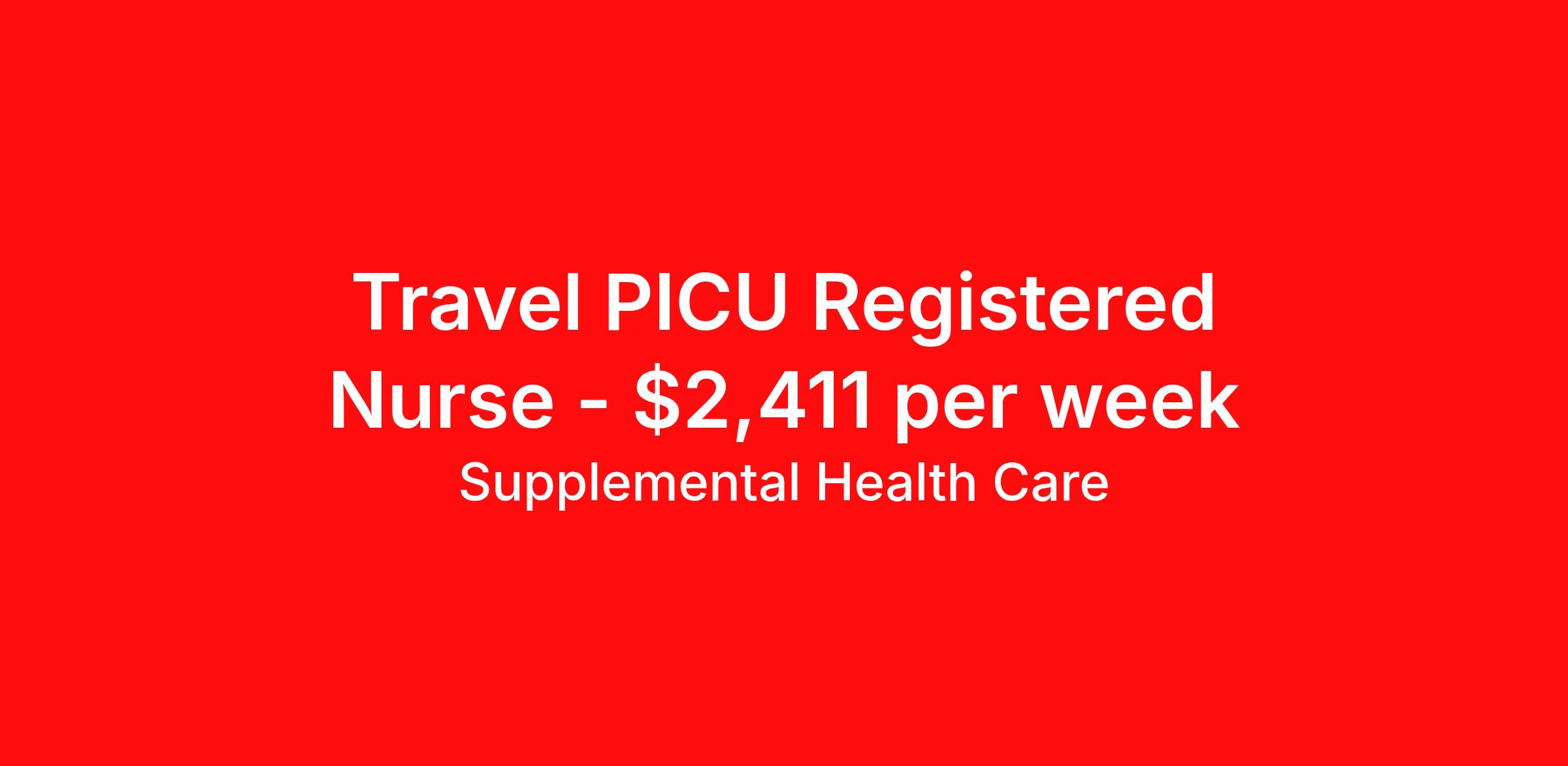 Supplemental Health Care is seeking a travel nurse RN PICU - Pediatric Intensive Care for a travel nursing job in Minneapolis, Minnesota. Job Description & Requirements Specialty: PICU - Pediatric Intensive Care Discipline: RN Start Date: ASAP Duration: 13 weeks 36 hours per week Shift: 12 hours, days, nights Employment Type: Travel Job Description: Supplemental Health Care is connecting PICU, Critical Care - ICU Registered Nurses with top-tier hospital contracts in Minneapolis, Minnesota. Travel or stay local, either way, we’ll guide you to an opportunity that matches your goals, offering excellent pay, benefits, and support. Qualifications: Current Minnesota Registered Nurse License / Certification American Heart Association BLS 1 to 2 years of recent PICU, Critical Care - ICU experience PICU, Critical Care - ICU Registered Nurse Contract Details: $2,164 - $2,411 per week* Weekly pay 12-week contract with possibility to extend AM shifts available *Estimated weekly payment may include both taxable wages and tax-free reimbursements for meals, housing, and incidentals. Please speak with a recruiter for details. What We Offer: Full medical, dental, vision, life, and even pet insurance! Round the clock support. No matter where you are or what time it is, Supplemental Health Care is standing by. SHC's Share the Care referral program is the most dynamic, profitable referral program in the industry. 401(k) Retirement Savings Program with a wide range of investment options. Discounted and free online access to CEU courses through Supplemental University. Apply now to launch your next PICU, Critical Care - ICU Registered Nurse assignment, or ask our team about other exciting Registered Nurse opportunities. Supplemental Health Care is an Equal Opportunity Employer. All candidates, including veterans and those with disabilities, are encouraged to apply. SHC will consider for employment qualified applicants with criminal histories in a manner consistent with the requirements of applicable local, state, or federal law. To learn more, visit www.shccares.com/eeo Supplemental Health Care Job ID 1468792. Pay package is based on 12 hour shifts and 36 hours per week (subject to confirmation) with tax-free stipend amount to be determined. Posted job title: PICU, Critical Care - ICU Registered Nurse About Supplemental Health Care At Supplemental Health Care, a simple belief in the power of caring guides a unique commitment to world-class service in healthcare staffing. For 40 years, we’ve supported talented professionals pursuing their life calling in hospitals, schools, home health, corrections, behavioral health, and other settings. At SHC, we inspire vital connections and enrich lives and inspire better outcomes. As recipients of the Best in Staffing Awards for both Client and Talent, Supplemental Health Care is proud to be among only 2% of staffing companies singled out for the distinction based on the real feedback of our employees and the clients we serve. SHC has also earned The Joint Commission’s Gold Seal of Approval and is named among the Largest Health Care Staffing companies in the United States by Staffing Industry Analysts. We are also thrilled to recognize our very own SLP, Dr. Kelly Byrd as the American Staffing Association 2024 National Staffing Employee of the Year and Health Care Sector All-Star. We’re honored to connect Dr. Byrd to employment, share her incredible story, and support her family literacy nonprofit. For everyone that we serve, SHC is the place where caring hearts thrive. Benefits Referral bonus Benefits start day 1 401k retirement plan Continuing Education Discount program Health savings account