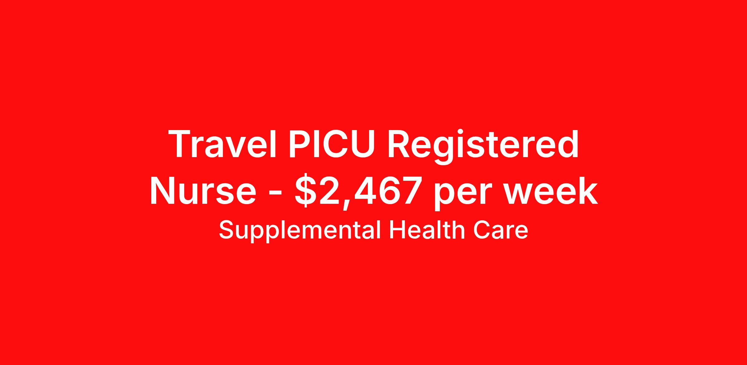 Supplemental Health Care is seeking a travel nurse RN PICU - Pediatric Intensive Care for a travel nursing job in Columbus, Ohio. Job Description & Requirements Specialty: PICU - Pediatric Intensive Care Discipline: RN Start Date: ASAP Duration: 13 weeks 36 hours per week Shift: 12 hours, days Employment Type: Travel Job Description: Supplemental Health Care is hiring PICU RNs for contract assignments at partnering hospitals in Columbus, Ohio. Whether you’re looking to travel or stay local, we’re committed to helping Pediatric Intensive Care Unit Registered Nurses find the right fit with top hospitals across the country. With more than 40 years of experience in healthcare staffing, Supplemental Health Care offers reliable support, competitive pay, and great benefits every step of the way. Qualifications: Ohio RN License or Compact State RN License American Heart Association BLS PALS certification 2 years of recent Pediatric Intensive Care Unit experience NALS or NRP preferred PICU RN Contract Details: $2,268 - $2,467 per week* AM shift available 13-week contract with possibility to extend RN will provide critical care for pediatric patients *Estimated weekly payment may include both taxable wages and tax-free reimbursements for meals, housing, and incidentals. Please speak with a recruiter for details. Apply today to get started with this PICU RN contract opportunity, or talk to our team about the full range of Registered Nurse opportunities available. What We Offer: Full medical, dental, vision, life, and even pet insurance! Round the clock support. No matter where you are or what time it is, Supplemental Health Care is standing by. SHC's Share the Care referral program is the most dynamic, profitable referral program in the industry. 401(k) Retirement Savings Program with a wide range of investment options. Discounted and free online access to CEU courses through Supplemental University. Supplemental Health Care is an Equal Opportunity Employer. All candidates, including veterans and those with disabilities, are encouraged to apply. SHC will consider for employment qualified applicants with criminal histories in a manner consistent with the requirements of applicable local, state, or federal law. To learn more, visit www.shccares.com/eeo Supplemental Health Care Job ID 1472646. Pay package is based on 12 hour shifts and 36 hours per week (subject to confirmation) with tax-free stipend amount to be determined. Posted job title: PICU RN About Supplemental Health Care At Supplemental Health Care, a simple belief in the power of caring guides a unique commitment to world-class service in healthcare staffing. For 40 years, we’ve supported talented professionals pursuing their life calling in hospitals, schools, home health, corrections, behavioral health, and other settings. At SHC, we inspire vital connections and enrich lives and inspire better outcomes. As recipients of the Best in Staffing Awards for both Client and Talent, Supplemental Health Care is proud to be among only 2% of staffing companies singled out for the distinction based on the real feedback of our employees and the clients we serve. SHC has also earned The Joint Commission’s Gold Seal of Approval and is named among the Largest Health Care Staffing companies in the United States by Staffing Industry Analysts. We are also thrilled to recognize our very own SLP, Dr. Kelly Byrd as the American Staffing Association 2024 National Staffing Employee of the Year and Health Care Sector All-Star. We’re honored to connect Dr. Byrd to employment, share her incredible story, and support her family literacy nonprofit. For everyone that we serve, SHC is the place where caring hearts thrive. Benefits Referral bonus Benefits start day 1 401k retirement plan Continuing Education Discount program Health savings account