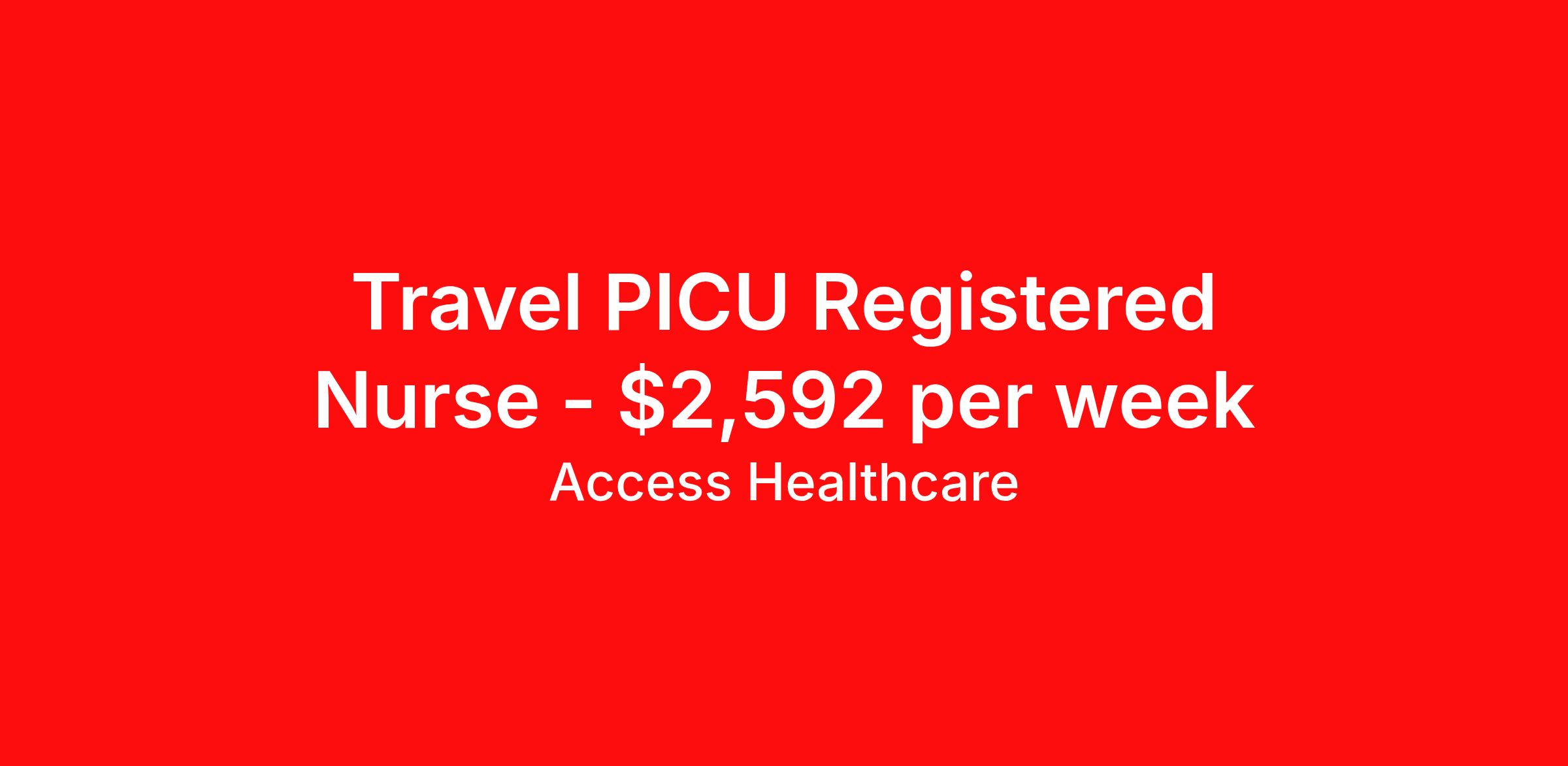 Access Healthcare is seeking a travel nurse RN Clinic PICU - Pediatric Intensive Care for a travel nursing job in Cleveland, Ohio. Job Description & Requirements Specialty: PICU - Pediatric Intensive Care Discipline: RN Start Date: 04/17/2026 Duration: 13 weeks 36 hours per week Shift: 12 hours, nights Employment Type: Travel Access Healthcare Job ID 76168740. Pay package is based on 12 hour shifts and 36 hours per week (subject to confirmation) with tax-free stipend amount to be determined. About Access Healthcare Access Healthcare aims to provide superior service to our nursing family by providing around the clock support, competitive pay packages and an unmatched benefits package! Unlike other agencies, we offer a true family feel and work with you to find the placement that is right for you. We offer one of the top leading pay packages in the industry and we are ready to get you the money you deserve! Access Healthcare was founded by two travel nurses, Danielle and Diego, who had a dream and a shared vision of creating an agency which all nurses would want to work with. Our passion has led us to where we are today as one of the top 10 agencies in our home state of New Jersey, with access to contracts in all 50 states! We encourage you to join our team and we cannot wait to get to know you!