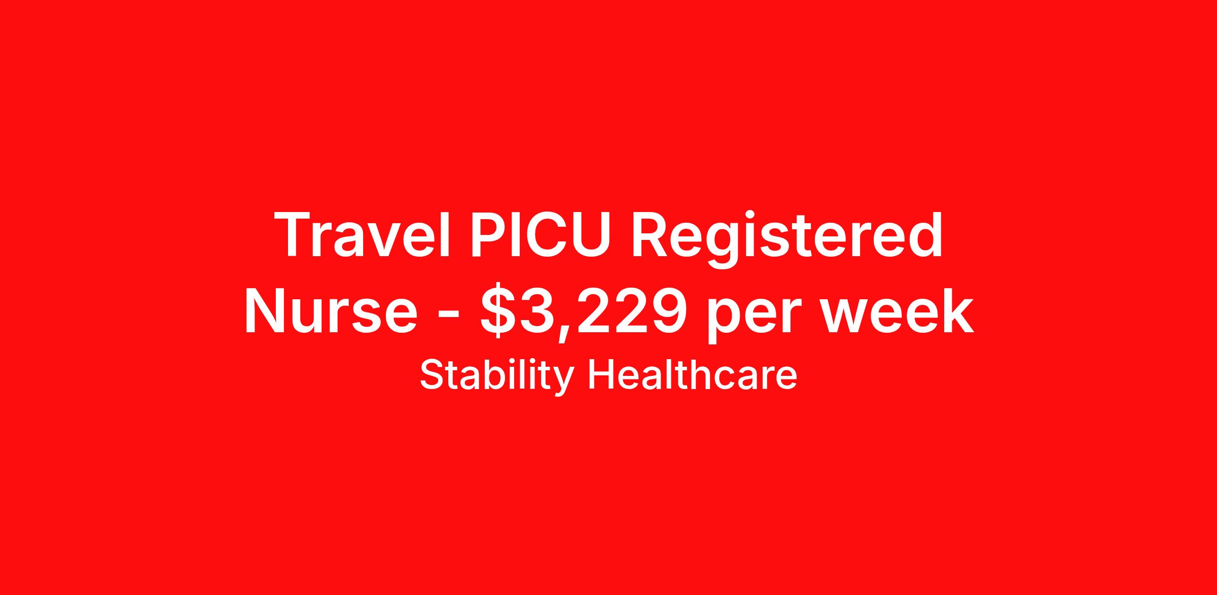 Stability Healthcare is seeking a travel nurse RN PICU - Pediatric Intensive Care for a travel nursing job in Madera, California. Job Description & Requirements Specialty: PICU - Pediatric Intensive Care Discipline: RN Duration: 8 weeks 33 hours per week Shift: 11 hours, nights Employment Type: Travel Stability Healthcare is looking for a PICU RN contract position in Madera, CA. Pediatric intensive care unit (PICU) nurse jobs involve the treatment of children and adolescents up to age 18 with high-acuity or life-threatening conditions. PICU Nurses should have experience in technologically-advanced intensive care units. Duties include the prioritization and monitoring of patients with high-acuity conditions and working with doctors, nurses, respiratory therapists, and other professionals to implement a plan of care. *$600 travel bonus *Day 1 health insurance with United Healthcare *PTO plan start accruing on day 1, use during contract or cash out at the end! *Guaranteed stipend if facility calls you off *Extra hour bonus earn an additional hourly bonus for working over your weekly contracted hours Stability Job ID 827662. Pay package is based on 11 hour shifts and 33 hours per week (subject to confirmation) with tax-free stipend amount to be determined. Posted job title: PICU About Stability Healthcare Stability Healthcare was founded in 2009, with the mission of becoming the best Travel Nursing Agency in California. We have been rated one of the top travel nursing agencies and offer our nurses the highest paying travel nursing jobs available. We have access to the best travel assignments from 1000’s of facilities. You can start the year off in sunny California, spend the Spring in the Colorado Rockies, enjoy the Summer in the Mid-West, experience the change of seasons in Boston and New York, and hit the beaches of Florida in the winter. Our Nurses work in the best hospitals and health systems in the country. Benefits Guaranteed Hours Benefits start day 1