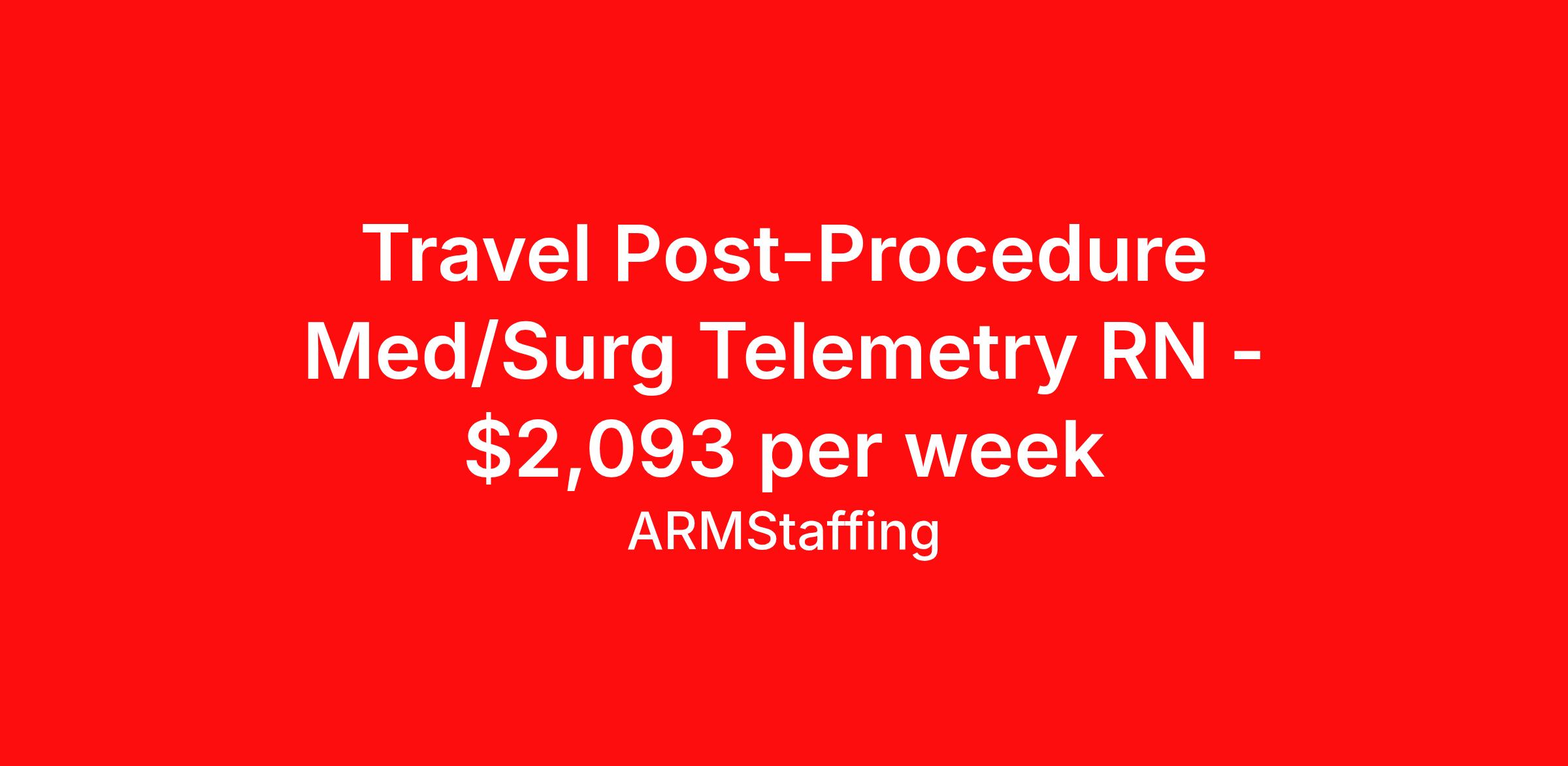 Travel Post-Procedure Med/Surg Telemetry RN - $2,093 per week