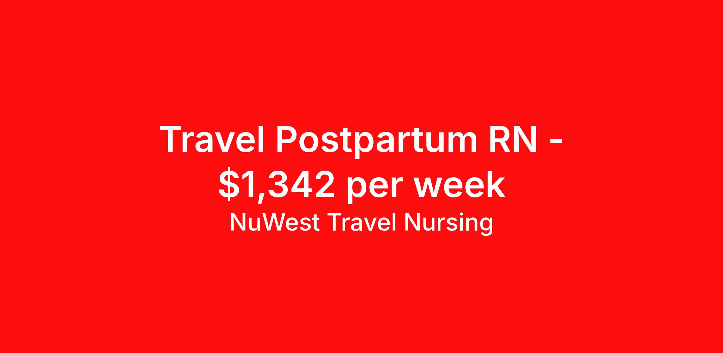 NuWest Travel Nursing is seeking a travel nurse RN Post Partum for a travel nursing job in Lone Tree, Colorado. Job Description & Requirements Specialty: Post Partum Discipline: RN Duration: 13 weeks 36 hours per week Shift: 12 hours Employment Type: Travel We have a new assignment for RN - Postpartum in Lone Tree, CO and are interviewing ASAP. This is a travel assignment, 3x12 Nights position at a great facility. Pay Range: $1233.11 - $1450.72 Per Week Benefits include medical, dental, vision, 401K, weekly direct deposit, and more! NuWest Travel Nursing Job ID 240349. Pay package is based on 12 hour shifts and 36 hours per week (subject to confirmation) with tax-free stipend amount to be determined.