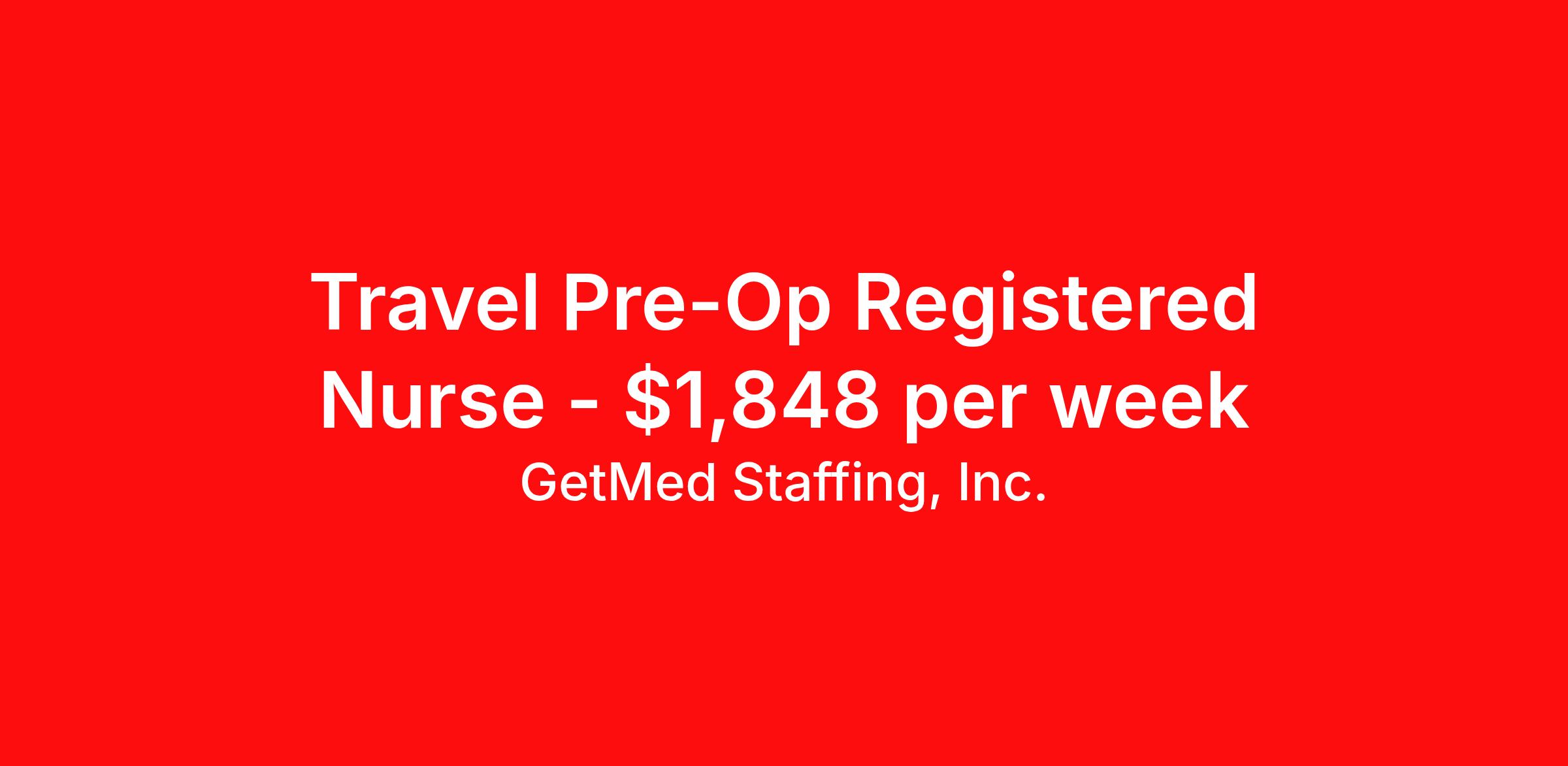 Travel Pre-Op Registered Nurse - $1,848 per week