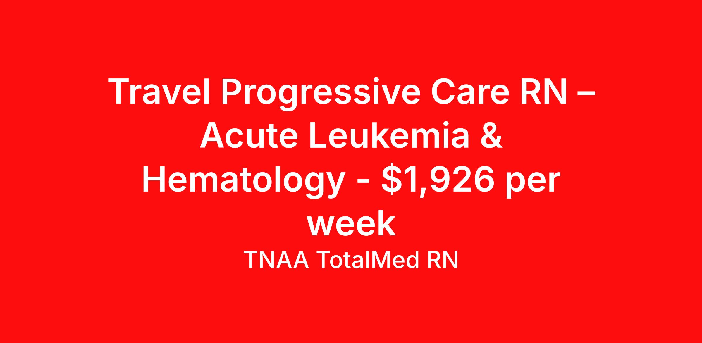 Travel Progressive Care RN – Acute Leukemia & Hematology - $1,926 per week