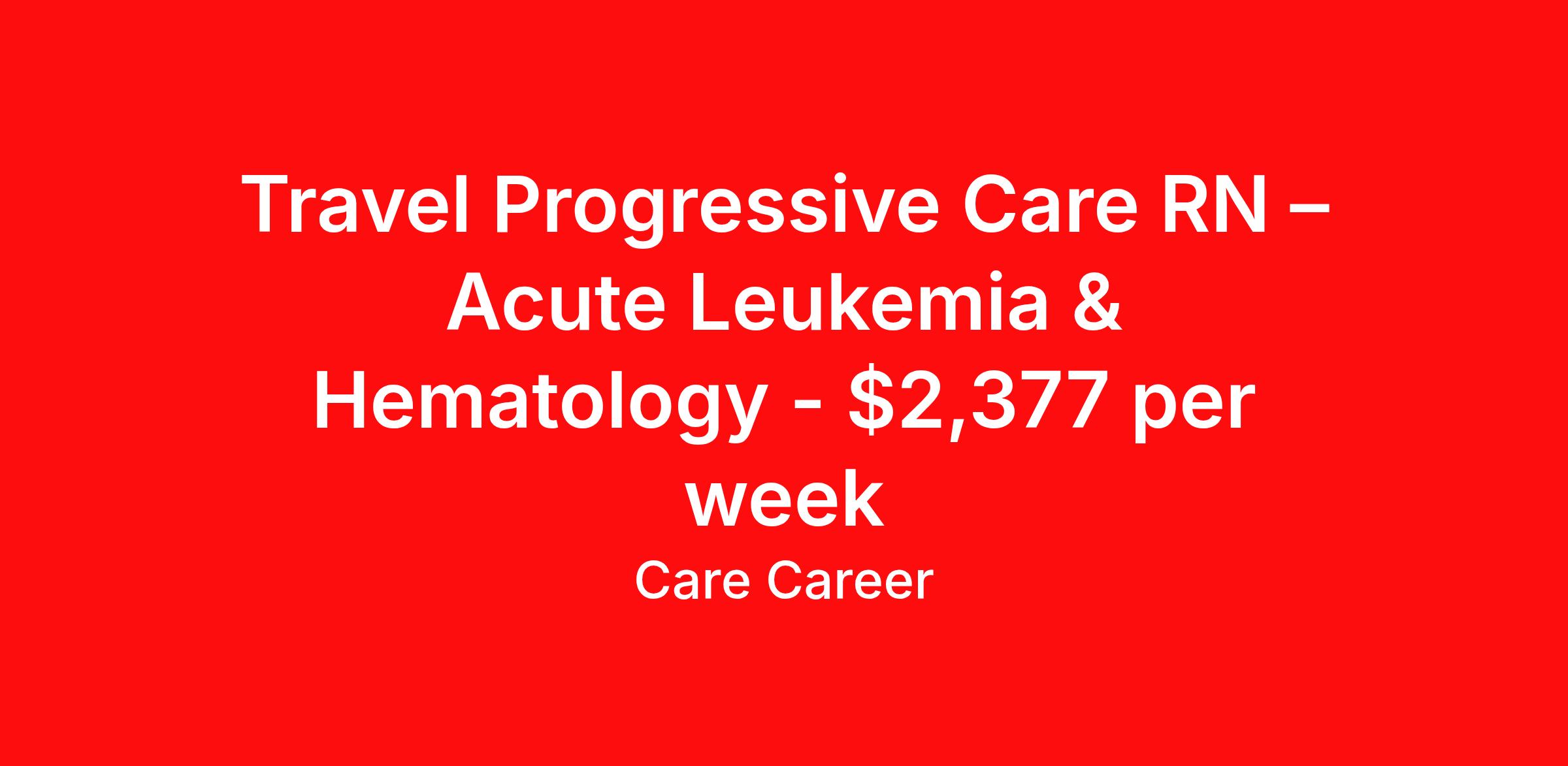 Travel Progressive Care RN – Acute Leukemia & Hematology - $2,377 per week