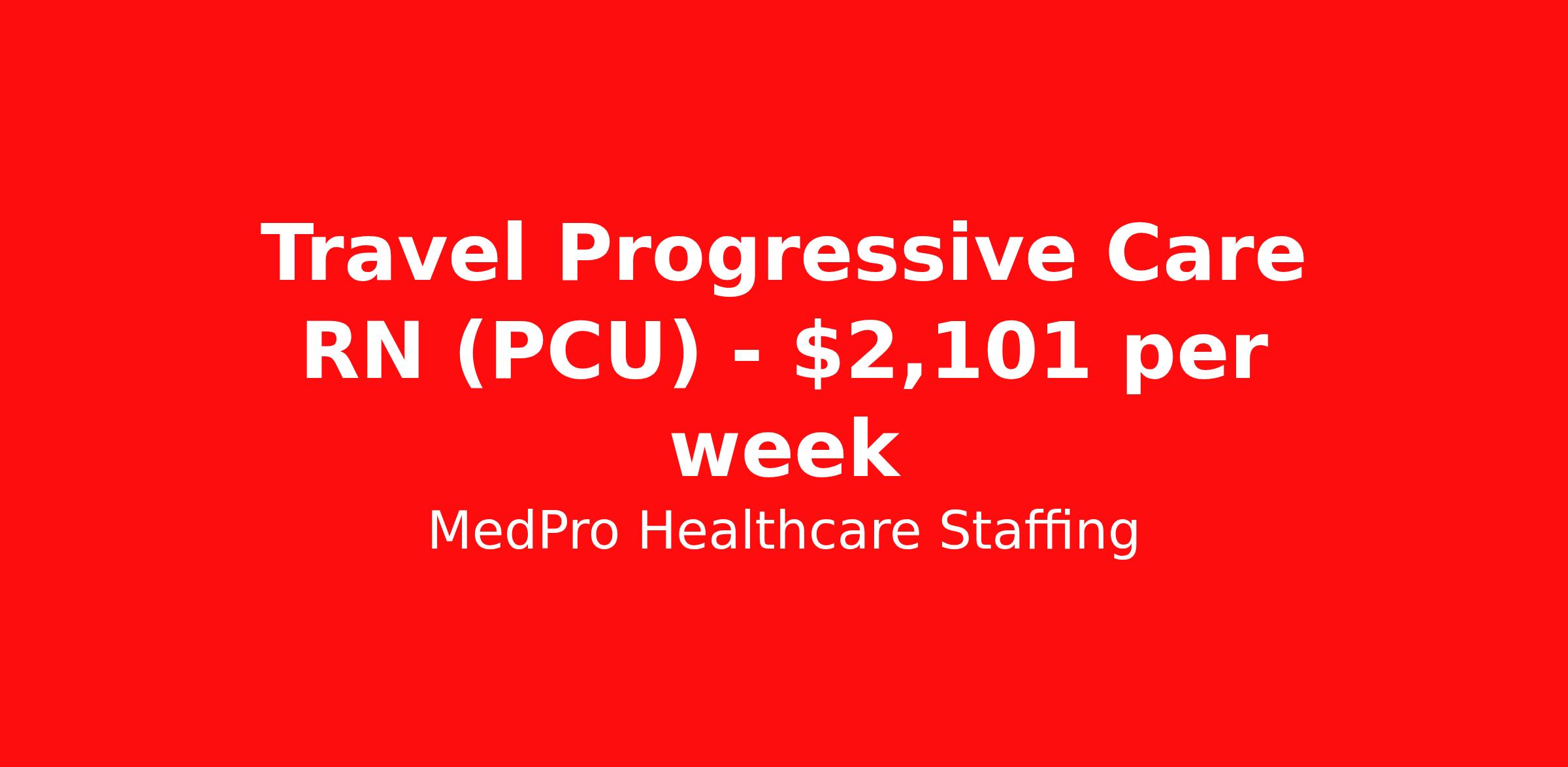 MedPro Healthcare Staffing is seeking a travel nurse RN PCU - Progressive Care Unit for a travel nursing job in St. Louis, Missouri. Job Description & Requirements Specialty: PCU - Progressive Care Unit Discipline: RN Start Date: 04/06/2026 Duration: 13 weeks 36 hours per week Shift: 12 hours, nights Employment Type: Travel MedPro Healthcare Staffing , a Joint Commission-certified staffing agency, is seeking a quality PCU/Step-down Nurse for a travel assignment with one of our top healthcare clients. Requirements Active RN License Degree from accredited nursing program BLS & ACLS Certifications Eighteen months of recent experience in an Acute Care PCU/Step-down setting Other requirements to be determined by our client facility Benefits Weekly pay and direct deposit Full coverage of all credentialing fees Private housing or housing allowance Group Health insurance for you and your family Company-paid life and disability insurance Travel reimbursement 401(k) matching Unlimited Referral Bonuses up to $1,000 Duties Responsibilities Progressive Care Nurses (PCU) care for patients requiring close monitoring and frequent assessment, but who aren't unstable enough to need ICU care. PCU nurses monitor cardiac and other critical vital signs and detect any changes, thereby enabling intervention of life-threatening or emergency situations. Many PCU patients receive complex medications that may require titration based on the patient’s vital signs The PCU nurse is sometimes also called a step-down nurse and the PCU is also known as cardiac step-down, medical step-down, neuro step-down, surgical step-down and ER holding. Monitor and assess patients who aren't unstable enough to need ICU care. Utilize computer equipment to monitor cardiac and other vital information and detect any changes, thereby enabling intervention of life-threatening or emergency situations. About Agency MedPro Healthcare Staffing is a Joint Commission certified provider of contract staffing services. Since 1983, we have placed nursing and allied travelers in top healthcare facilities nationwide. Join us today for your very own MedPro Experience®. If qualified and interested, please call for immediate consideration. MedPro Staffing is an Equal Opportunity Employer. All applicants will be considered for employment without attention to race, color, religion, national origin, age, sex, disability, marital status or veteran status. Key Words: PCU Nurse, RN-Progressive Care, Telemetry Nursing positions, Step-down, Stepdown, Travel Nurse, Contract Nurse, Agency Nurse, EKG, Tele, Telemetry Contracts, Registered Nurse, Telemetry Nurse, Tele Nurse, RN, Registered Nurse, Telemetry Nurse, RN-Tele, Travel Nursing *Weekly payment estimates are intended for informational purposes only and include a gross estimate of hourly wages and reimbursements for meal, incidental, and housing expenses. Your recruiter will confirm your eligibility and provide additional details. MedPro Job ID a0Fcx00000HDyz3EAD. Pay package is based on 12 hour shifts and 36 hours per week (subject to confirmation) with tax-free stipend amount to be determined. Posted job title: PCU/Step-down Nurse Nursing: PCU. About MedPro Healthcare Staffing At MedPro Healthcare Staffing , we believe no one cares more for caregivers than we do. Our mission is simple: you focus on your patients, and we’ll take care of the rest. As a Joint Commission-certified leader in temporary and contract healthcare staffing since 1983, MedPro has proudly connected nursing and allied travelers with top healthcare facilities across the nation. With thousands of job opportunities available nationwide, we make it easy to find assignments that align with your goals and lifestyle. Our on-staff clinical support team—alongside a compassionate group of experienced recruiters—provides hands-on guidance every step of the way. From Day 1 medical benefits and a 401(k) plan to personalized career support, we’re committed to ensuring every professional we serve feels valued, cared for, and empowered to succeed. Guided by a CEO who is a Registered Nurse, MedPro is built on a foundation of clinical insight and genuine compassion for the caregiving community. Through The MedPro Experience® , we deliver travel assignments that are rewarding, memorable, and designed to help you DREAM big, EXPLORE often, and ACHIEVE greatness. Benefits Day 1 medical, dental, and vision benefits for you and your family Weekly pay and direct deposit Unlimited Referral Bonuses starting at $500 On Staff Clinical Support Team Access to nationwide travel assignments MPX Mobile app -24/7 real-time access to jobs, credentials, assignment details, and more Full coverage of all credentialing fees Private housing or housing allowance Tax Free Per Diems, Housing Stipends and Travel Reimbursements Company-paid life and disability insurance Travel reimbursement 401(k) matching Benefits Weekly pay Referral bonus Employee assistance programs