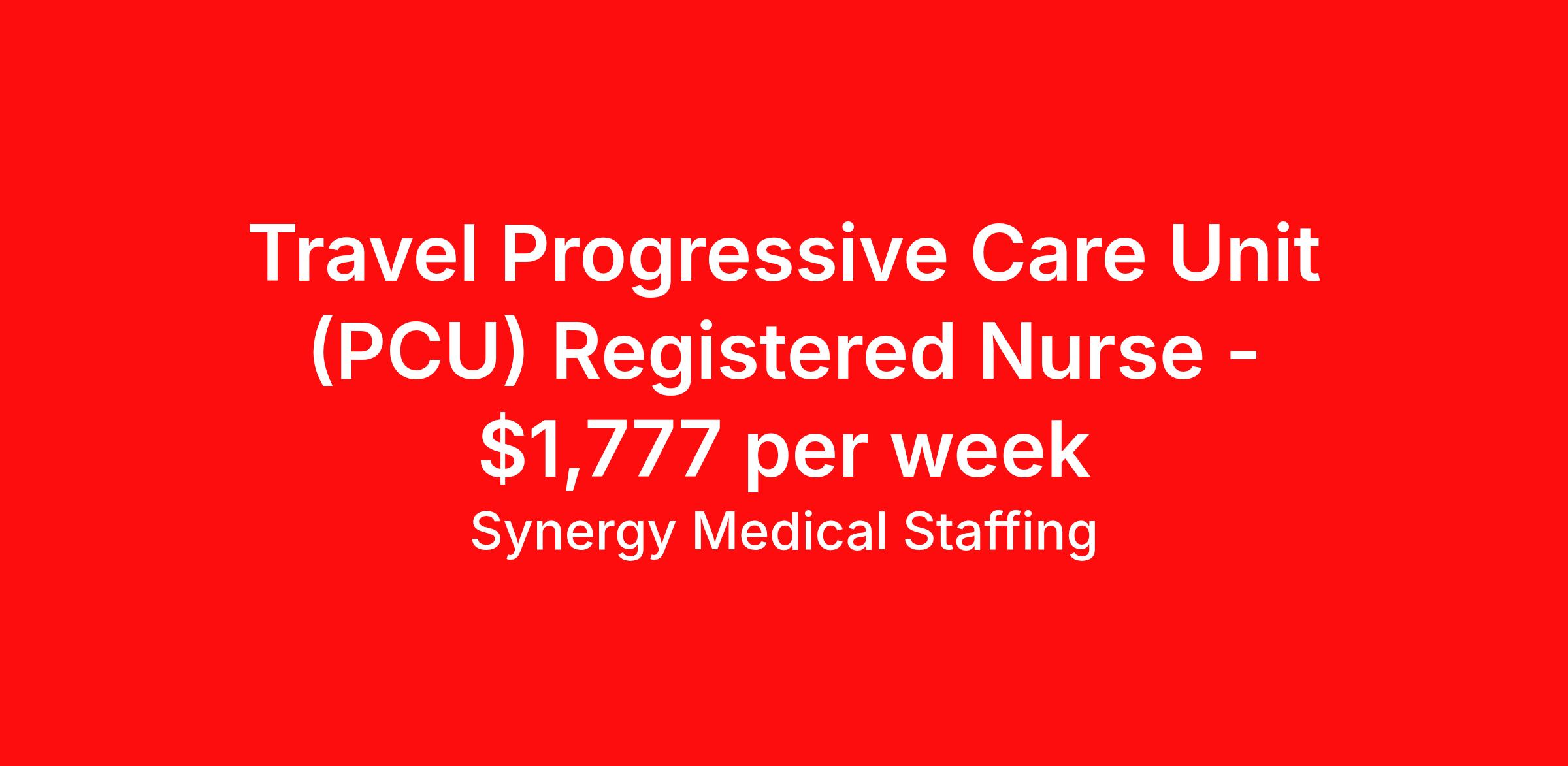 Synergy Medical Staffing is seeking a travel nurse RN PCU - Progressive Care Unit for a travel nursing job in Murfreesboro, Tennessee. Job Description & Requirements Specialty: PCU - Progressive Care Unit Discipline: RN Start Date: 04/13/2026 Duration: 13 weeks 36 hours per week Shift: 12 hours, nights Employment Type: Travel Travel, RN - PCU Location: Murfreesboro, Tennessee Shift: 3X12 Nights, 19:00:00-07:00:00, 12.00-3 Duration 13 Weeks When you join Synergy Medical Staffing, you’ll have a dedicated recruiter helping you at all times. Your recruiter is a cross between a career coach and a concierge. They will help you fine-tune your resume, find your next job, and locate an apartment (even one that takes pets!). Make one call and get help with everything from placement to housing to payroll, even travel directions! As a travel, contract and permanent placement medical staffing company with over 20 years of experience in the industry, we understand your needs. Synergy’s Benefits are best in class and include the following: 401K that matches up to 5% of your pay and you are 100% vested from Day 1. Medical, Dental, Vision, Life insurance, Long and short-term disability and others Loyality Program Weekly pay Holiday Pay (varies by Assignment) Guaranteed Hours (varies by Assignment) Referral bonus Continuing Education License and certification reimbursement Synergy Medical Staffing Job ID 36154689. Pay package is based on 12 hour shifts and 36.0 hours per week (subject to confirmation) with tax-free stipend amount to be determined. Posted job title: RN:PCU,19:00:00-07:00:00 About Synergy Medical Staffing When you join Synergy Medical Staffing, you’ll have a dedicated recruiter helping you at all times. Your recruiter is a cross between a career coach and a concierge. They will help you fine-tune your resume, find your next job, and locate an apartment (even one that takes pets!). Make one call and get help with everything from placement to housing to payroll, even travel directions! As a travel, contract and permanent placement medical staffing company with over 12 years of experience in the industry, we understand your needs. Are you interested in traveling, or just a job around the corner? Whatever your preference, you can be sure there are plenty of Nursing Jobs, Allied Jobs and Physical Therapy Jobs, Occupational Therapy Jobs, Speech Therapy Jobs and Rehab Therapy jobs anywhere you want to go. Synergy Medical Staffing professionals have been in the Medical staffing employment and staffing industry for over 12 years, and have developed solid relationships with numerous healthcare facilities nationwide. Contact us now and expand your medical career with new opportunities from Synergy Medical Staffing. Synergy’s Benefits are best in class and include the following 401K Day 1 Full Medical, Dental, Vision, Life insurance, Long and short term disability and others Student Loan Repayment and CEU reimbursement Loyalty bonus after 600 hours Benefits Discount program Weekly pay Holiday Pay Guaranteed Hours Referral bonus Medical benefits Dental benefits Continuing Education License and certification reimbursement Life insurance 401k retirement plan Cancelation protection Vision benefits