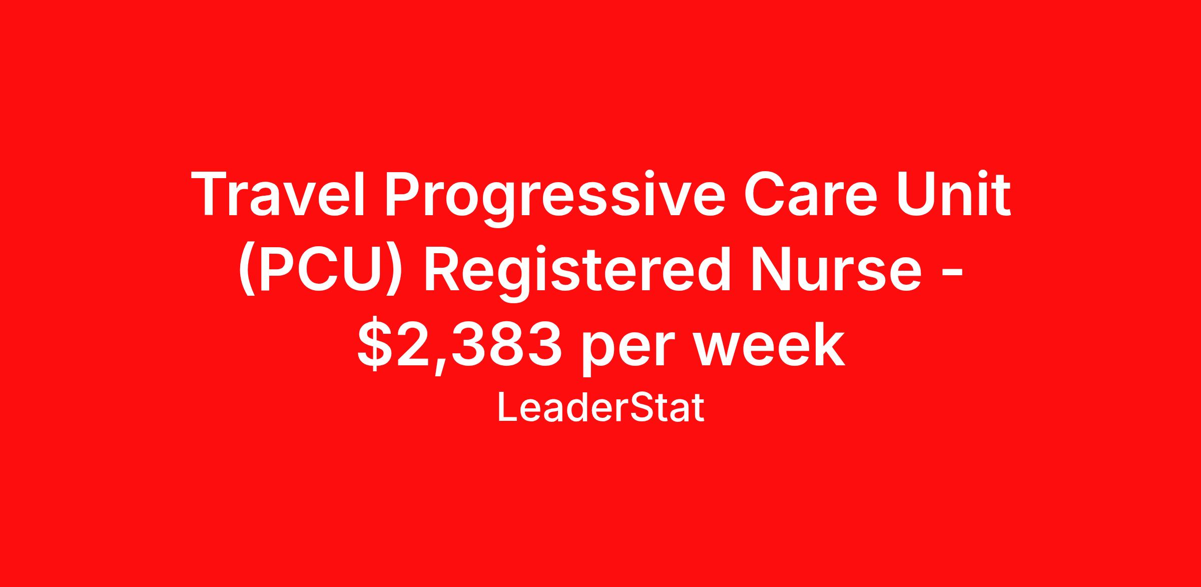 Travel Progressive Care Unit (PCU) Registered Nurse - $2,383 per week