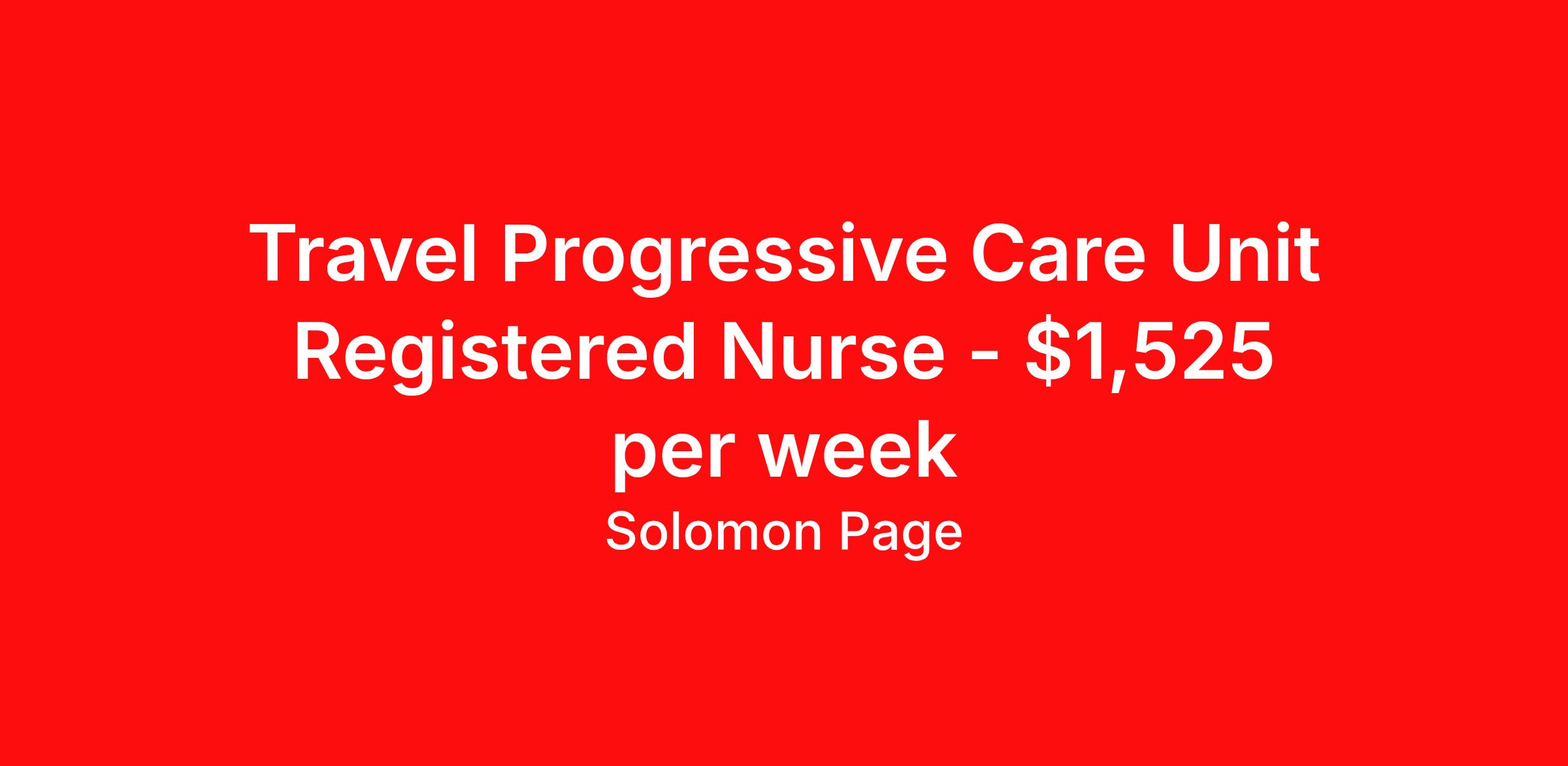 Travel Progressive Care Unit Registered Nurse - $1,525 per week