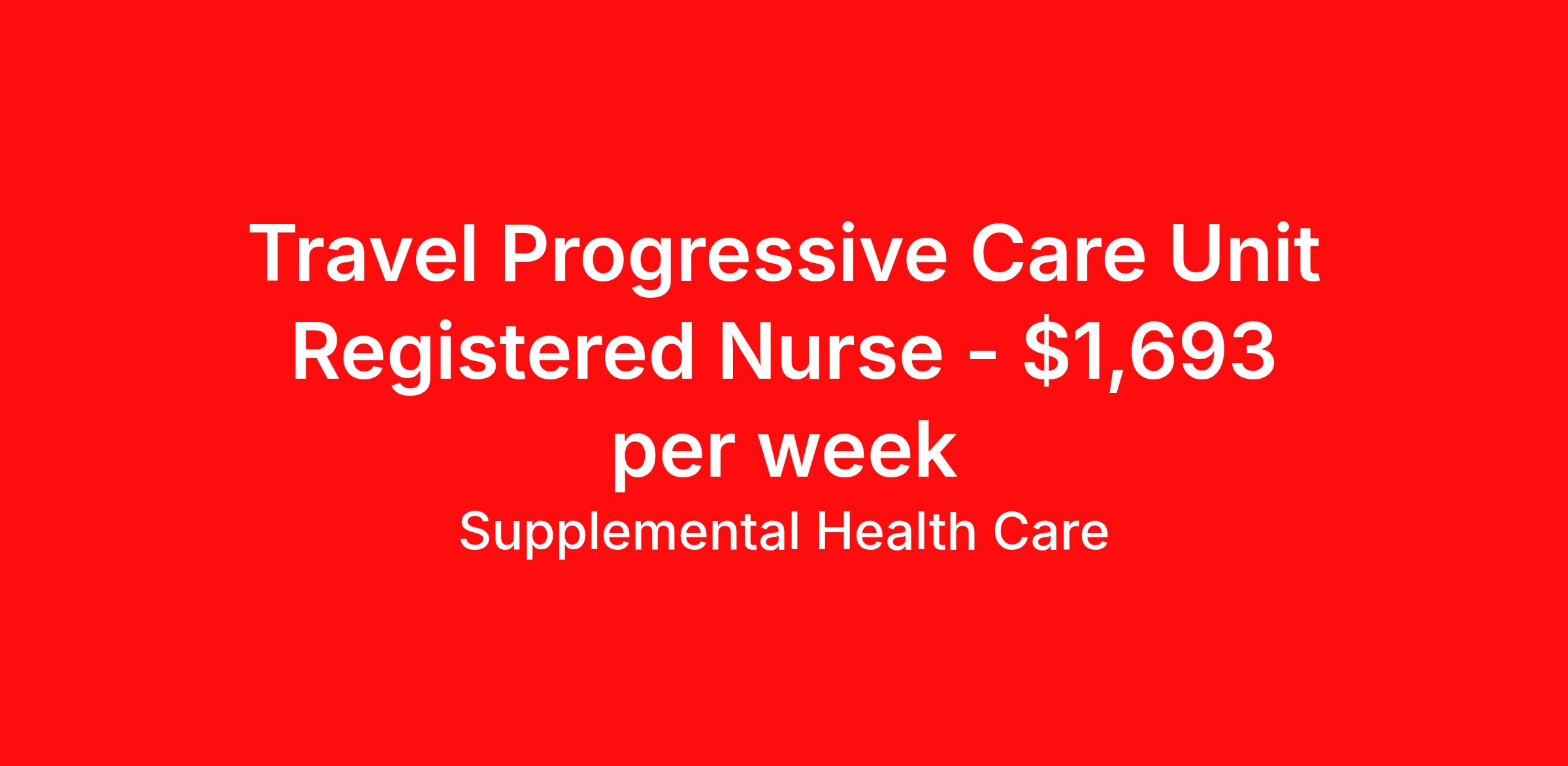 Supplemental Health Care is seeking a travel nurse RN PCU - Progressive Care Unit for a travel nursing job in Morehead City, North Carolina. Job Description & Requirements Specialty: PCU - Progressive Care Unit Discipline: RN Start Date: ASAP Duration: 13 weeks 36 hours per week Shift: 12 hours, nights Employment Type: Travel Job Description: Supplemental Health Care is hiring PCU RNs for contract assignments at partnering hospitals in Morehead City, North Carolina. Whether you’re looking to travel or stay local, we’re committed to helping Progressive Care Unit Registered Nurses find the right fit with top hospitals across the country. With more than 40 years of experience in healthcare staffing, Supplemental Health Care offers reliable support, competitive pay, and great benefits every step of the way. Qualifications: Current North Carolina Nursing License American Heart Association BLS 2 years of recent Progressive/step-down/transitional Care Unit nursing experience PCU RN Contract Details: $1,566 - $1,693 per week* NOC shift available 13-week contract with possibility to extend The Progressive Care Unit Nurse will be evaluating and monitoring patients upon admittance to the PCU Responsibilities include but are not limited to: Changing dressings, Starting or changing IVs, Preparing medical equipment, and Assisting doctors with bedside procedures *Estimated weekly payment may include both taxable wages and tax-free reimbursements for meals, housing, and incidentals. Please speak with a recruiter for details. Apply today to get started with this PCU RN contract opportunity, or talk to our team about the full range of Registered Nurse opportunities available. What We Offer: Full medical, dental, vision, life, and even pet insurance! Round the clock support. No matter where you are or what time it is, Supplemental Health Care is standing by. SHC's Share the Care referral program is the most dynamic, profitable referral program in the industry. 401(k) Retirement Savings Program with a wide range of investment options. Discounted and free online access to CEU courses through Supplemental University. Supplemental Health Care is an Equal Opportunity Employer. All candidates, including veterans and those with disabilities, are encouraged to apply. SHC will consider for employment qualified applicants with criminal histories in a manner consistent with the requirements of applicable local, state, or federal law. To learn more, visit www.shccares.com/eeo Supplemental Health Care Job ID 1466758. Pay package is based on 12 hour shifts and 36 hours per week (subject to confirmation) with tax-free stipend amount to be determined. Posted job title: Registered Nurse - Progressive Care Unit About Supplemental Health Care At Supplemental Health Care, a simple belief in the power of caring guides a unique commitment to world-class service in healthcare staffing. For 40 years, we’ve supported talented professionals pursuing their life calling in hospitals, schools, home health, corrections, behavioral health, and other settings. At SHC, we inspire vital connections and enrich lives and inspire better outcomes. As recipients of the Best in Staffing Awards for both Client and Talent, Supplemental Health Care is proud to be among only 2% of staffing companies singled out for the distinction based on the real feedback of our employees and the clients we serve. SHC has also earned The Joint Commission’s Gold Seal of Approval and is named among the Largest Health Care Staffing companies in the United States by Staffing Industry Analysts. We are also thrilled to recognize our very own SLP, Dr. Kelly Byrd as the American Staffing Association 2024 National Staffing Employee of the Year and Health Care Sector All-Star. We’re honored to connect Dr. Byrd to employment, share her incredible story, and support her family literacy nonprofit. For everyone that we serve, SHC is the place where caring hearts thrive. Benefits Referral bonus Benefits start day 1 401k retirement plan Continuing Education Discount program Health savings account