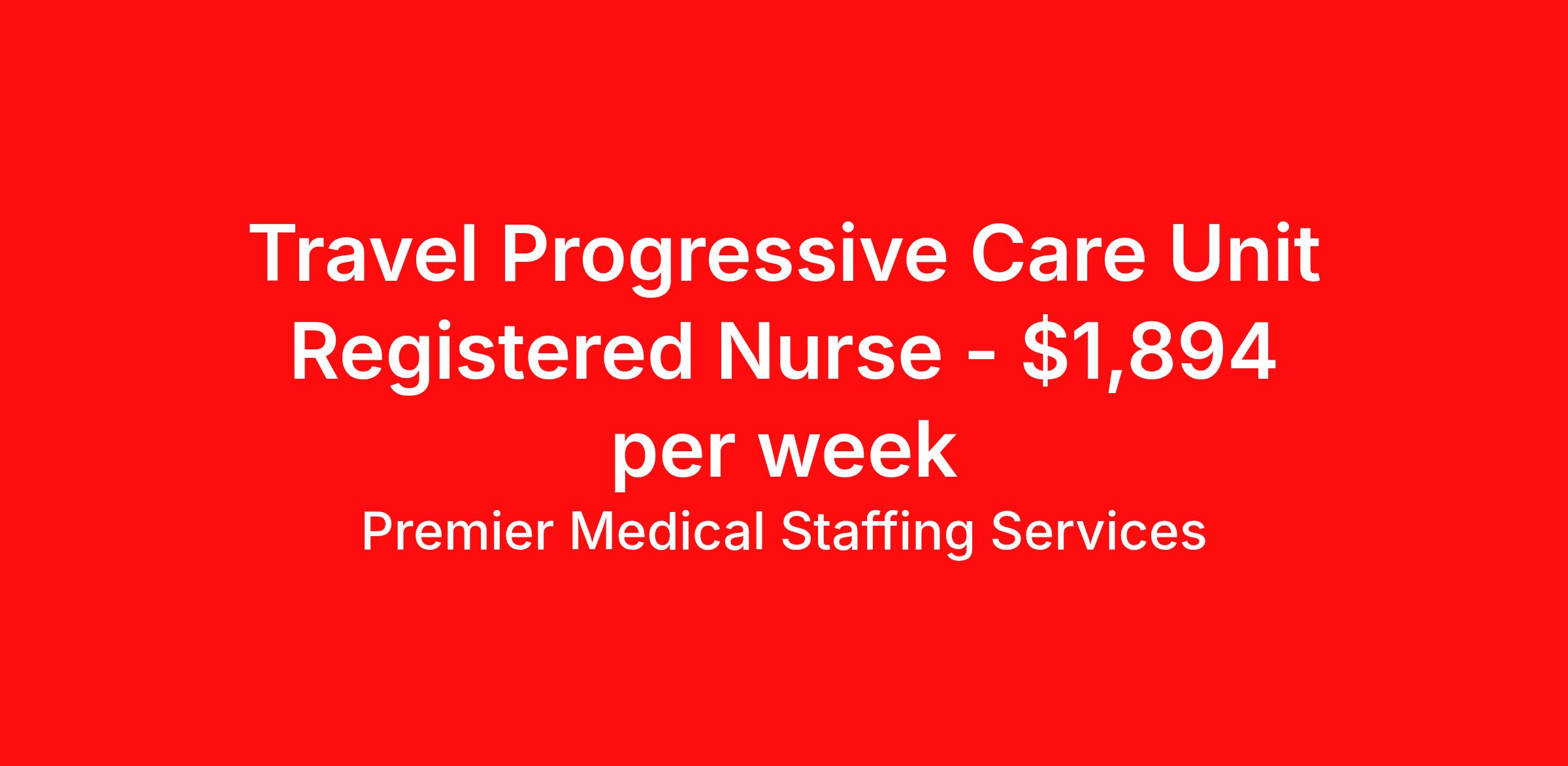 Premier Medical Staffing Services is seeking a travel nurse RN PCU - Progressive Care Unit for a travel nursing job in Evansville, Indiana. Job Description & Requirements Specialty: PCU - Progressive Care Unit Discipline: RN Start Date: 04/12/2026 Duration: 12 weeks 36 hours per week Shift: 12 hours Employment Type: Travel Premier Medical Staffing Job ID 625843. Pay package is based on 12 hour shifts and 36 hours per week (subject to confirmation) with tax-free stipend amount to be determined. Posted job title: RN PCU About Premier Medical Staffing Services Premier Medical Staffing Services, LLC is a nationally expanding healthcare staffing firm for healthcare professionals and companies. We understand our clients’ need for highly qualified, expertly trained medical professionals and are passionate about helping clinicians find employment opportunities that fit their personality and needs. Able to accommodate the ever-changing needs of the healthcare landscape, we offer per-diem, contract and direct hire placements to support the unique needs of each industry sector. Premier Medical Staffing Services is Joint Commission Certified, a Military Spouse Employment Partner and is certified as a Women’s Business Enterprise. We are proudly nurse owned.