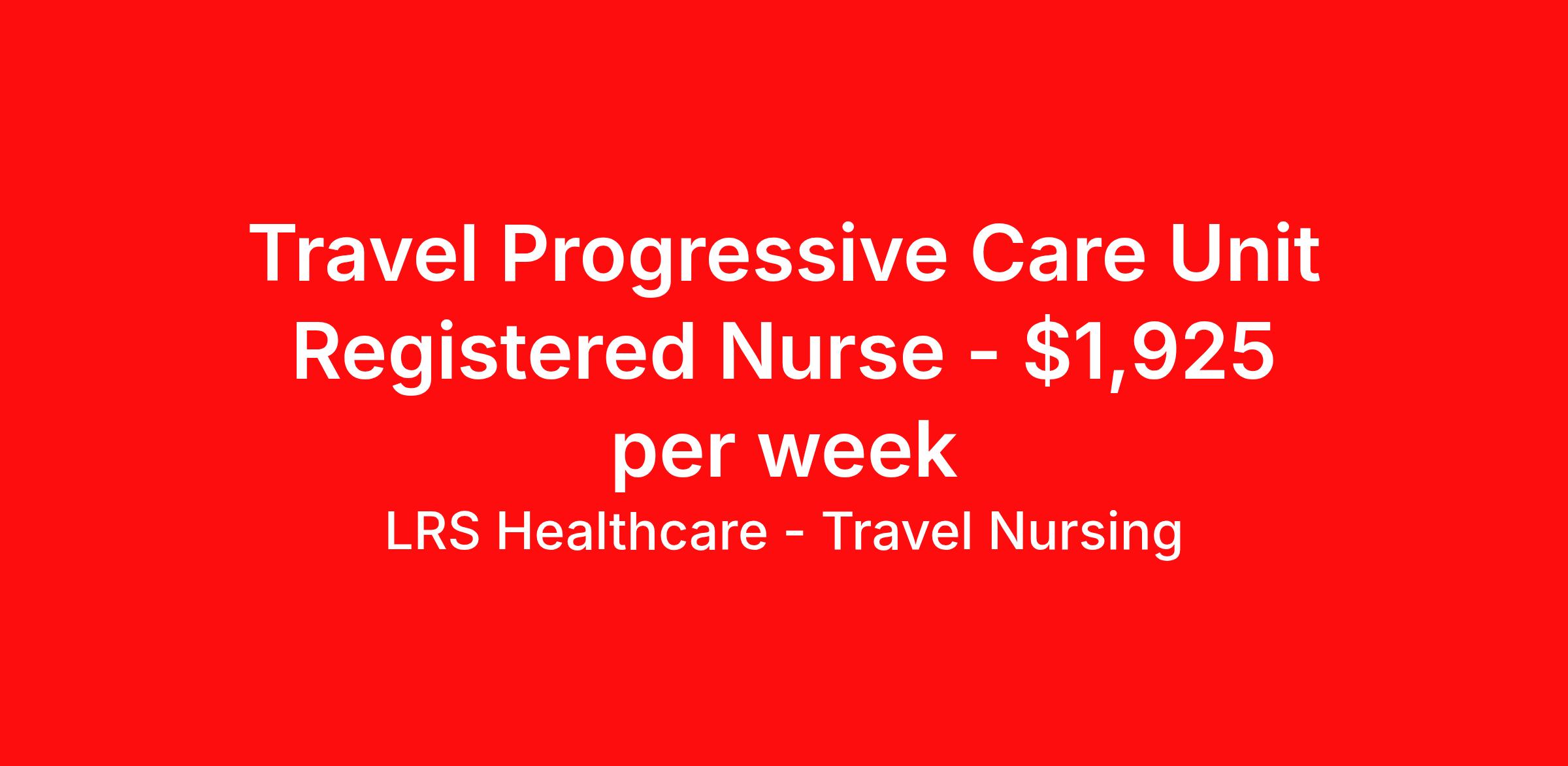 LRS Healthcare - Travel Nursing is seeking a travel nurse RN PCU - Progressive Care Unit for a travel nursing job in Asheville, North Carolina. Job Description & Requirements Specialty: PCU - Progressive Care Unit Discipline: RN Start Date: 03/30/2026 Duration: 13 weeks 36 hours per week Shift: 12 hours, nights Employment Type: Travel LRS Healthcare - Travel Nursing Job ID 74-69833. Pay package is based on 12 hour shifts and 36 hours per week (subject to confirmation) with tax-free stipend amount to be determined. About LRS Healthcare - Travel Nursing LRS Healthcare can lend a hand to take your career to new heights and places. As an industry leader in healthcare staffing, we work to connect you with jobs at top of the line facilities in the locations you’ve always wanted to live and visit. LRS is truly a full service medical staffing agency, so we take care of everything from housing and travel expenses to your itinerary, too. We handle it all because we want to be with you throughout your journey – not just your next placement. As a medical staffing agency that fosters long relationships with their employees, we’re determined to help amplify your personal and career growth through placement. We identify both temporary and permanent positions for candidates, and even some temp-to-perm positions that begin as 13-week programs. We have many positions available across the country, so let's discuss what would be a good fit for you! Benefits: Medical, Dental, and Vision Short-Term Disability Long-Term Disability Life Insurance 401(k) Certification & License Reimbursement Refer-a-friend Bonus Program Direct Deposit - Weekly 24-Hour Support Benefits Medical benefits Life insurance 401k retirement plan License and certification reimbursement Referral bonus Weekly pay