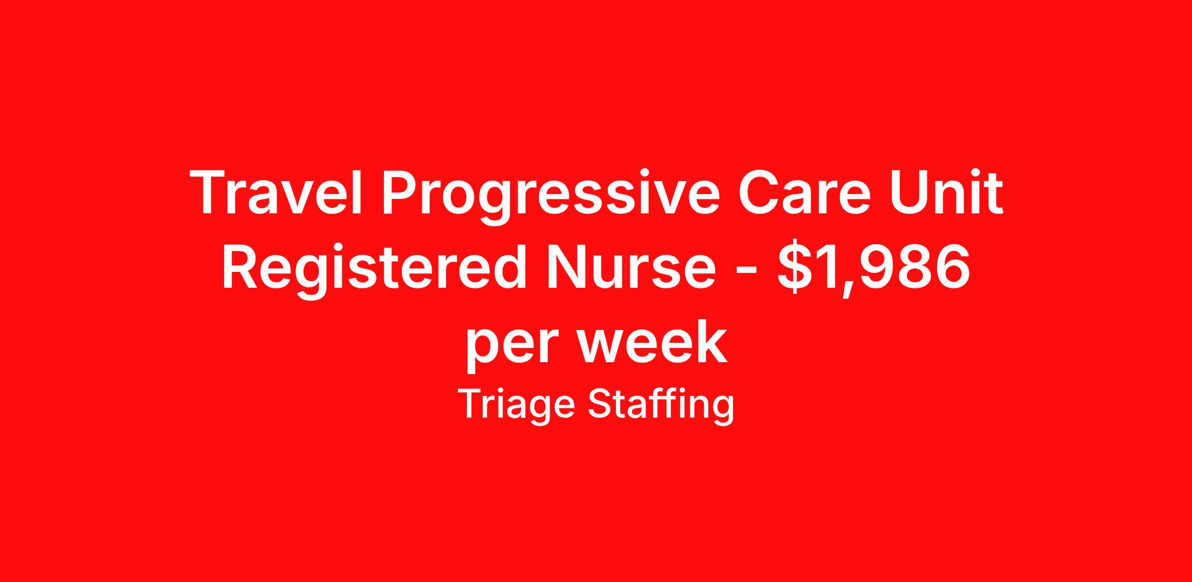 Travel Progressive Care Unit Registered Nurse - $1,986 per week