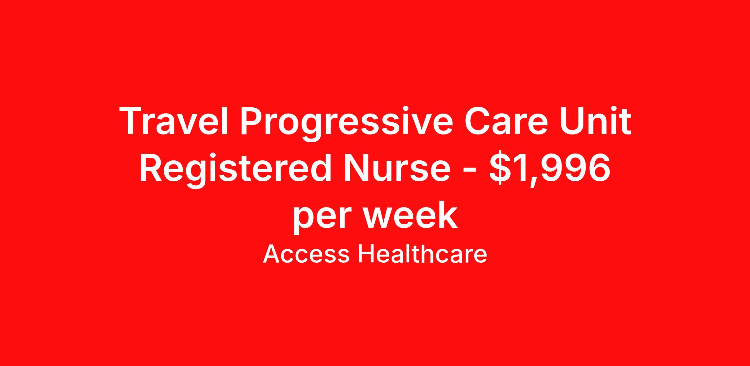 Access Healthcare is seeking a travel nurse RN PCU - Progressive Care Unit for a travel nursing job in Morehead City, North Carolina. Job Description & Requirements Specialty: PCU - Progressive Care Unit Discipline: RN Start Date: 03/30/2026 Duration: 13 weeks 36 hours per week Shift: 12 hours, nights Employment Type: Travel Access Healthcare Job ID 75487402. Pay package is based on 12 hour shifts and 36 hours per week (subject to confirmation) with tax-free stipend amount to be determined. About Access Healthcare Access Healthcare aims to provide superior service to our nursing family by providing around the clock support, competitive pay packages and an unmatched benefits package! Unlike other agencies, we offer a true family feel and work with you to find the placement that is right for you. We offer one of the top leading pay packages in the industry and we are ready to get you the money you deserve! Access Healthcare was founded by two travel nurses, Danielle and Diego, who had a dream and a shared vision of creating an agency which all nurses would want to work with. Our passion has led us to where we are today as one of the top 10 agencies in our home state of New Jersey, with access to contracts in all 50 states! We encourage you to join our team and we cannot wait to get to know you!