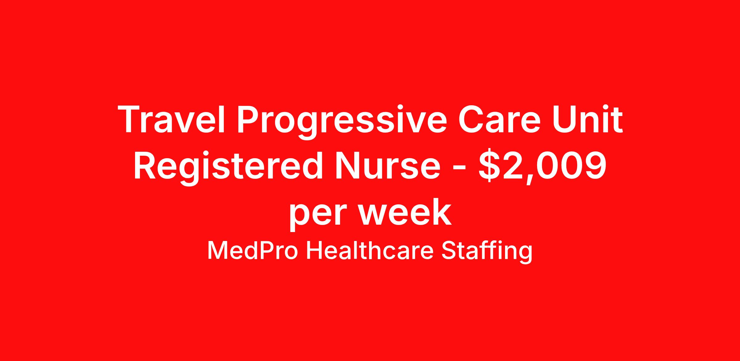 MedPro Healthcare Staffing is seeking a travel nurse RN PCU - Progressive Care Unit for a travel nursing job in Asheville, North Carolina. Job Description & Requirements Specialty: PCU - Progressive Care Unit Discipline: RN Start Date: 04/06/2026 Duration: 13 weeks 36 hours per week Shift: 12 hours, nights Employment Type: Travel MedPro Healthcare Staffing , a Joint Commission-certified staffing agency, is seeking a quality PCU/Step-down Nurse for a travel assignment with one of our top healthcare clients. Requirements Active RN License Degree from accredited nursing program BLS & ACLS Certifications Eighteen months of recent experience in an Acute Care PCU/Step-down setting Other requirements to be determined by our client facility Benefits Weekly pay and direct deposit Full coverage of all credentialing fees Private housing or housing allowance Group Health insurance for you and your family Company-paid life and disability insurance Travel reimbursement 401(k) matching Unlimited Referral Bonuses up to $1,000 Duties Responsibilities Progressive Care Nurses (PCU) care for patients requiring close monitoring and frequent assessment, but who aren't unstable enough to need ICU care. PCU nurses monitor cardiac and other critical vital signs and detect any changes, thereby enabling intervention of life-threatening or emergency situations. Many PCU patients receive complex medications that may require titration based on the patient’s vital signs The PCU nurse is sometimes also called a step-down nurse and the PCU is also known as cardiac step-down, medical step-down, neuro step-down, surgical step-down and ER holding. Monitor and assess patients who aren't unstable enough to need ICU care. Utilize computer equipment to monitor cardiac and other vital information and detect any changes, thereby enabling intervention of life-threatening or emergency situations. About Agency MedPro Healthcare Staffing is a Joint Commission certified provider of contract staffing services. Since 1983, we have placed nursing and allied travelers in top healthcare facilities nationwide. Join us today for your very own MedPro Experience®. If qualified and interested, please call for immediate consideration. MedPro Staffing is an Equal Opportunity Employer. All applicants will be considered for employment without attention to race, color, religion, national origin, age, sex, disability, marital status or veteran status. Key Words: PCU Nurse, RN-Progressive Care, Telemetry Nursing positions, Step-down, Stepdown, Travel Nurse, Contract Nurse, Agency Nurse, EKG, Tele, Telemetry Contracts, Registered Nurse, Telemetry Nurse, Tele Nurse, RN, Registered Nurse, Telemetry Nurse, RN-Tele, Travel Nursing *Weekly payment estimates are intended for informational purposes only and include a gross estimate of hourly wages and reimbursements for meal, incidental, and housing expenses. Your recruiter will confirm your eligibility and provide additional details. MedPro Job ID a0Fcx00000Gjg6mEAB. Pay package is based on 12 hour shifts and 36 hours per week (subject to confirmation) with tax-free stipend amount to be determined. Posted job title: PCU/Step-down Nurse Nursing: PCU. About MedPro Healthcare Staffing At MedPro Healthcare Staffing , we believe no one cares more for caregivers than we do. Our mission is simple: you focus on your patients, and we’ll take care of the rest. As a Joint Commission-certified leader in temporary and contract healthcare staffing since 1983, MedPro has proudly connected nursing and allied travelers with top healthcare facilities across the nation. With thousands of job opportunities available nationwide, we make it easy to find assignments that align with your goals and lifestyle. Our on-staff clinical support team—alongside a compassionate group of experienced recruiters—provides hands-on guidance every step of the way. From Day 1 medical benefits and a 401(k) plan to personalized career support, we’re committed to ensuring every professional we serve feels valued, cared for, and empowered to succeed. Guided by a CEO who is a Registered Nurse, MedPro is built on a foundation of clinical insight and genuine compassion for the caregiving community. Through The MedPro Experience® , we deliver travel assignments that are rewarding, memorable, and designed to help you DREAM big, EXPLORE often, and ACHIEVE greatness. Benefits Day 1 medical, dental, and vision benefits for you and your family Weekly pay and direct deposit Unlimited Referral Bonuses starting at $500 On Staff Clinical Support Team Access to nationwide travel assignments MPX Mobile app -24/7 real-time access to jobs, credentials, assignment details, and more Full coverage of all credentialing fees Private housing or housing allowance Tax Free Per Diems, Housing Stipends and Travel Reimbursements Company-paid life and disability insurance Travel reimbursement 401(k) matching Benefits Weekly pay Referral bonus Employee assistance programs