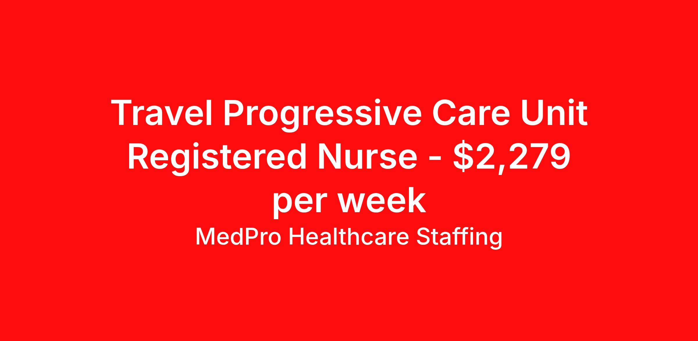 MedPro Healthcare Staffing is seeking a travel nurse RN PCU - Progressive Care Unit for a travel nursing job in Kearney, Nebraska. Job Description & Requirements Specialty: PCU - Progressive Care Unit Discipline: RN Start Date: 04/06/2026 Duration: 13 weeks 36 hours per week Shift: 12 hours, nights Employment Type: Travel MedPro Healthcare Staffing , a Joint Commission-certified staffing agency, is seeking a quality PCU/Step-down Nurse for a travel assignment with one of our top healthcare clients. Requirements Active RN License Degree from accredited nursing program BLS & ACLS Certifications Eighteen months of recent experience in an Acute Care PCU/Step-down setting Other requirements to be determined by our client facility Benefits Weekly pay and direct deposit Full coverage of all credentialing fees Private housing or housing allowance Group Health insurance for you and your family Company-paid life and disability insurance Travel reimbursement 401(k) matching Unlimited Referral Bonuses up to $1,000 Duties Responsibilities Progressive Care Nurses (PCU) care for patients requiring close monitoring and frequent assessment, but who aren't unstable enough to need ICU care. PCU nurses monitor cardiac and other critical vital signs and detect any changes, thereby enabling intervention of life-threatening or emergency situations. Many PCU patients receive complex medications that may require titration based on the patient’s vital signs The PCU nurse is sometimes also called a step-down nurse and the PCU is also known as cardiac step-down, medical step-down, neuro step-down, surgical step-down and ER holding. Monitor and assess patients who aren't unstable enough to need ICU care. Utilize computer equipment to monitor cardiac and other vital information and detect any changes, thereby enabling intervention of life-threatening or emergency situations. About Agency MedPro Healthcare Staffing is a Joint Commission certified provider of contract staffing services. Since 1983, we have placed nursing and allied travelers in top healthcare facilities nationwide. Join us today for your very own MedPro Experience®. If qualified and interested, please call for immediate consideration. MedPro Staffing is an Equal Opportunity Employer. All applicants will be considered for employment without attention to race, color, religion, national origin, age, sex, disability, marital status or veteran status. Key Words: PCU Nurse, RN-Progressive Care, Telemetry Nursing positions, Step-down, Stepdown, Travel Nurse, Contract Nurse, Agency Nurse, EKG, Tele, Telemetry Contracts, Registered Nurse, Telemetry Nurse, Tele Nurse, RN, Registered Nurse, Telemetry Nurse, RN-Tele, Travel Nursing *Weekly payment estimates are intended for informational purposes only and include a gross estimate of hourly wages and reimbursements for meal, incidental, and housing expenses. Your recruiter will confirm your eligibility and provide additional details. MedPro Job ID a0Fcx00000D6RR3EAN. Pay package is based on 12 hour shifts and 36 hours per week (subject to confirmation) with tax-free stipend amount to be determined. Posted job title: PCU/Step-down Nurse Nursing: PCU. About MedPro Healthcare Staffing At MedPro Healthcare Staffing , we believe no one cares more for caregivers than we do. Our mission is simple: you focus on your patients, and we’ll take care of the rest. As a Joint Commission-certified leader in temporary and contract healthcare staffing since 1983, MedPro has proudly connected nursing and allied travelers with top healthcare facilities across the nation. With thousands of job opportunities available nationwide, we make it easy to find assignments that align with your goals and lifestyle. Our on-staff clinical support team—alongside a compassionate group of experienced recruiters—provides hands-on guidance every step of the way. From Day 1 medical benefits and a 401(k) plan to personalized career support, we’re committed to ensuring every professional we serve feels valued, cared for, and empowered to succeed. Guided by a CEO who is a Registered Nurse, MedPro is built on a foundation of clinical insight and genuine compassion for the caregiving community. Through The MedPro Experience® , we deliver travel assignments that are rewarding, memorable, and designed to help you DREAM big, EXPLORE often, and ACHIEVE greatness. Benefits Day 1 medical, dental, and vision benefits for you and your family Weekly pay and direct deposit Unlimited Referral Bonuses starting at $500 On Staff Clinical Support Team Access to nationwide travel assignments MPX Mobile app -24/7 real-time access to jobs, credentials, assignment details, and more Full coverage of all credentialing fees Private housing or housing allowance Tax Free Per Diems, Housing Stipends and Travel Reimbursements Company-paid life and disability insurance Travel reimbursement 401(k) matching Benefits Weekly pay Referral bonus Employee assistance programs