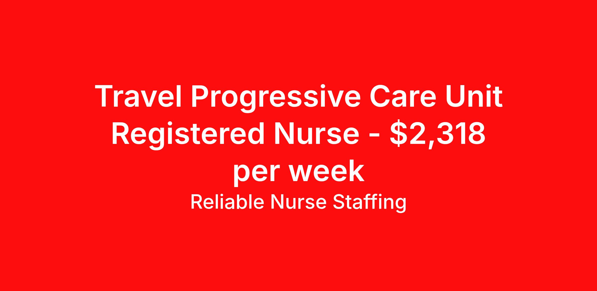 Reliable Nurse Staffing is seeking a travel nurse RN PCU - Progressive Care Unit for a travel nursing job in Kearney, Nebraska. Job Description & Requirements Specialty: PCU - Progressive Care Unit Discipline: RN Start Date: 03/30/2026 Duration: 13 weeks 36 hours per week Shift: 12 hours, nights Employment Type: Travel Reliable Nurse Staffing Job ID 59398372. Pay package is based on 12 hour shifts and 36 hours per week (subject to confirmation) with tax-free stipend amount to be determined. About Reliable Nurse Staffing Providing reliable, competent, and compassionate care to our patients and clients. Benefits Weekly pay Holiday Pay Guaranteed Hours Referral bonus Medical benefits Dental benefits Vision benefits Life insurance
