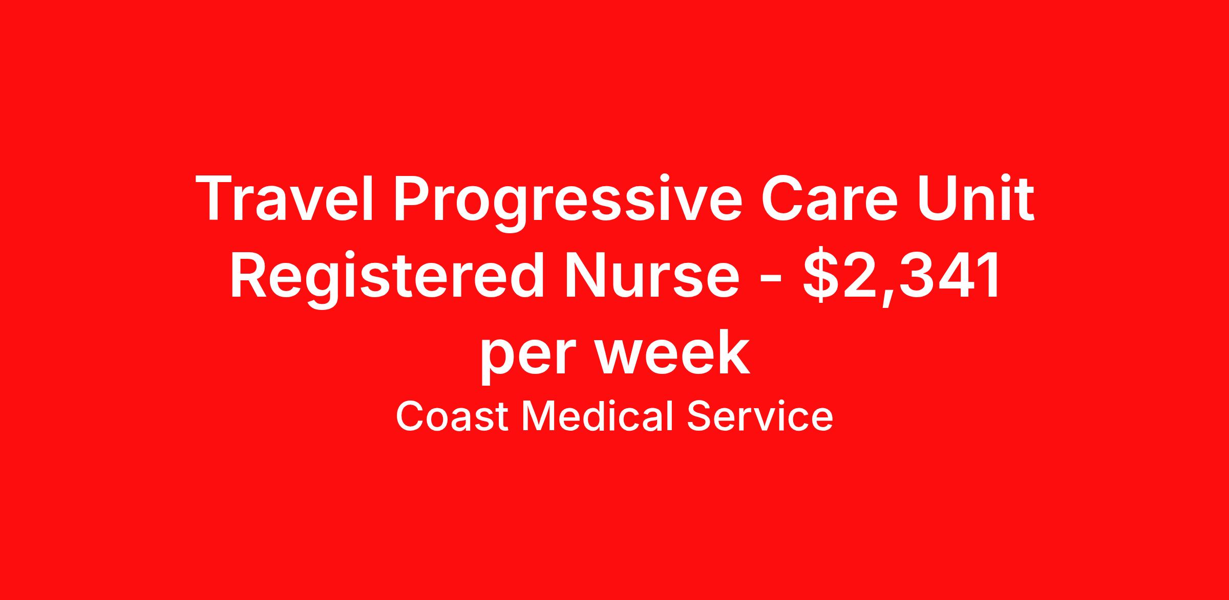 Coast Medical Service is seeking a travel nurse RN PCU - Progressive Care Unit for a travel nursing job in Columbus, Ohio. Job Description & Requirements Specialty: PCU - Progressive Care Unit Discipline: RN Start Date: 04/20/2026 Duration: 16 weeks 36 hours per week Shift: 12 hours, nights Employment Type: Travel Coast Medical Service is a nationwide travel nursing & allied healthcare staffing agency dedicated to providing an elite traveler experience for the experienced or first-time traveler. Coast is featured on Blue Pipes' 2023 Best Travel Agencies and named a 2022 Top Rated Healthcare Staffing Firm & 2023 First Half Top Rated Healthcare Staffing Firm by Great Recruiters. Please note that pay rate may differ for locally based candidates. Please apply here or contact a recruiter directly to learn more about this position & the facility, and/or explore others that may be of interest to you. We look forward to speaking with you! Coast Medical Services Job ID 36006389. Pay package is based on 12 hour shifts and 36.0 hours per week (subject to confirmation) with tax-free stipend amount to be determined. Posted job title: RN:Stepdown (PCU),19:00:00-07:30:00