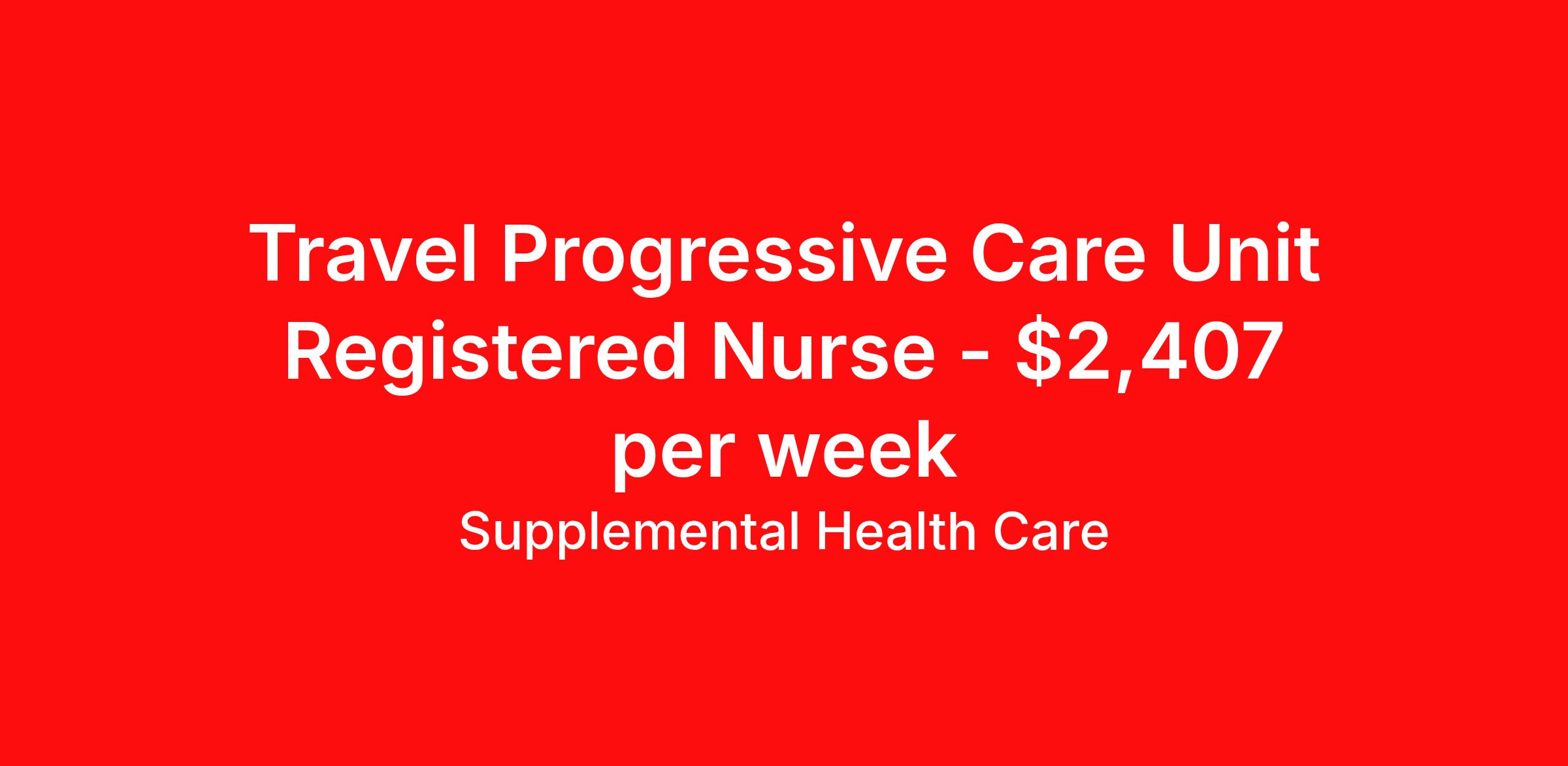 Supplemental Health Care is seeking a travel nurse RN PCU - Progressive Care Unit for a travel nursing job in Glendale, Arizona. Job Description & Requirements Specialty: PCU - Progressive Care Unit Discipline: RN Start Date: ASAP Duration: 13 weeks 36 hours per week Shift: 12 hours, nights Employment Type: Travel Job Description: Supplemental Health Care is hiring Progressive/step-down/transitional Care Unit Registered Nurses for travel-only contracts at a partnering hospital in Glendale, Arizona. With 40 years of experience, we connect nurses to nationwide opportunities with competitive pay, benefits, and dedicated support. Please note – this contract is not available to Arizona residents. Qualifications: Active Compact State RN License BLS certification required (AHA) Experience working in an acute care setting within the past 12 months as a Registered Nurse in the PCU area Ability to pass a background check and meet credentialing requirements Additional experience/certifications may be required Travel RN contracts only, must not be an AZ resident Travel PCU Registered Nurse Contract Details: Compensation: $2,178 - $2,407 per week *estimate Location: Glendale, Arizona Contract Length: 13 weeks, with potential for extension Schedule: 36 hours per week | Every other weekend Start Date: Flexible, based on facility need Responsibilities: Assess, plan, implement, and evaluate patient care in accordance with the standards of professional Progressive/step-down/transitional Care Unit nursing practice Provide direct patient care, including medication administration and monitoring Collaborate with physicians, patients, and families to ensure continuity of care Document all assessments, interventions, and patient responses What We Offer: Full medical, dental, vision, life, and even pet insurance! Round the clock support. No matter where you are or what time it is, Supplemental Health Care is standing by. SHC's Share the Care referral program is the most dynamic, profitable referral program in the industry. 401(k) Retirement Savings Program with a wide range of investment options. Discounted and free online access to CEU courses through Supplemental University. Apply online now for immediate consideration and connect with an SHC recruiter to take the next step in your travel nursing career. Please speak with a recruiter for details. Supplemental Health Care is an Equal Opportunity Employer. All candidates, including veterans and those with disabilities, are encouraged to apply. SHC will consider for employment qualified applicants with criminal histories in a manner consistent with the requirements of applicable local, state, or federal law. To learn more, visit www.shccares.com/eeo Supplemental Health Care Job ID 1469540. Pay package is based on 12 hour shifts and 36 hours per week (subject to confirmation) with tax-free stipend amount to be determined. Posted job title: Travel Registered Nurse - PCU About Supplemental Health Care At Supplemental Health Care, a simple belief in the power of caring guides a unique commitment to world-class service in healthcare staffing. For 40 years, we’ve supported talented professionals pursuing their life calling in hospitals, schools, home health, corrections, behavioral health, and other settings. At SHC, we inspire vital connections and enrich lives and inspire better outcomes. As recipients of the Best in Staffing Awards for both Client and Talent, Supplemental Health Care is proud to be among only 2% of staffing companies singled out for the distinction based on the real feedback of our employees and the clients we serve. SHC has also earned The Joint Commission’s Gold Seal of Approval and is named among the Largest Health Care Staffing companies in the United States by Staffing Industry Analysts. We are also thrilled to recognize our very own SLP, Dr. Kelly Byrd as the American Staffing Association 2024 National Staffing Employee of the Year and Health Care Sector All-Star. We’re honored to connect Dr. Byrd to employment, share her incredible story, and support her family literacy nonprofit. For everyone that we serve, SHC is the place where caring hearts thrive. Benefits Referral bonus Benefits start day 1 401k retirement plan Continuing Education Discount program Health savings account