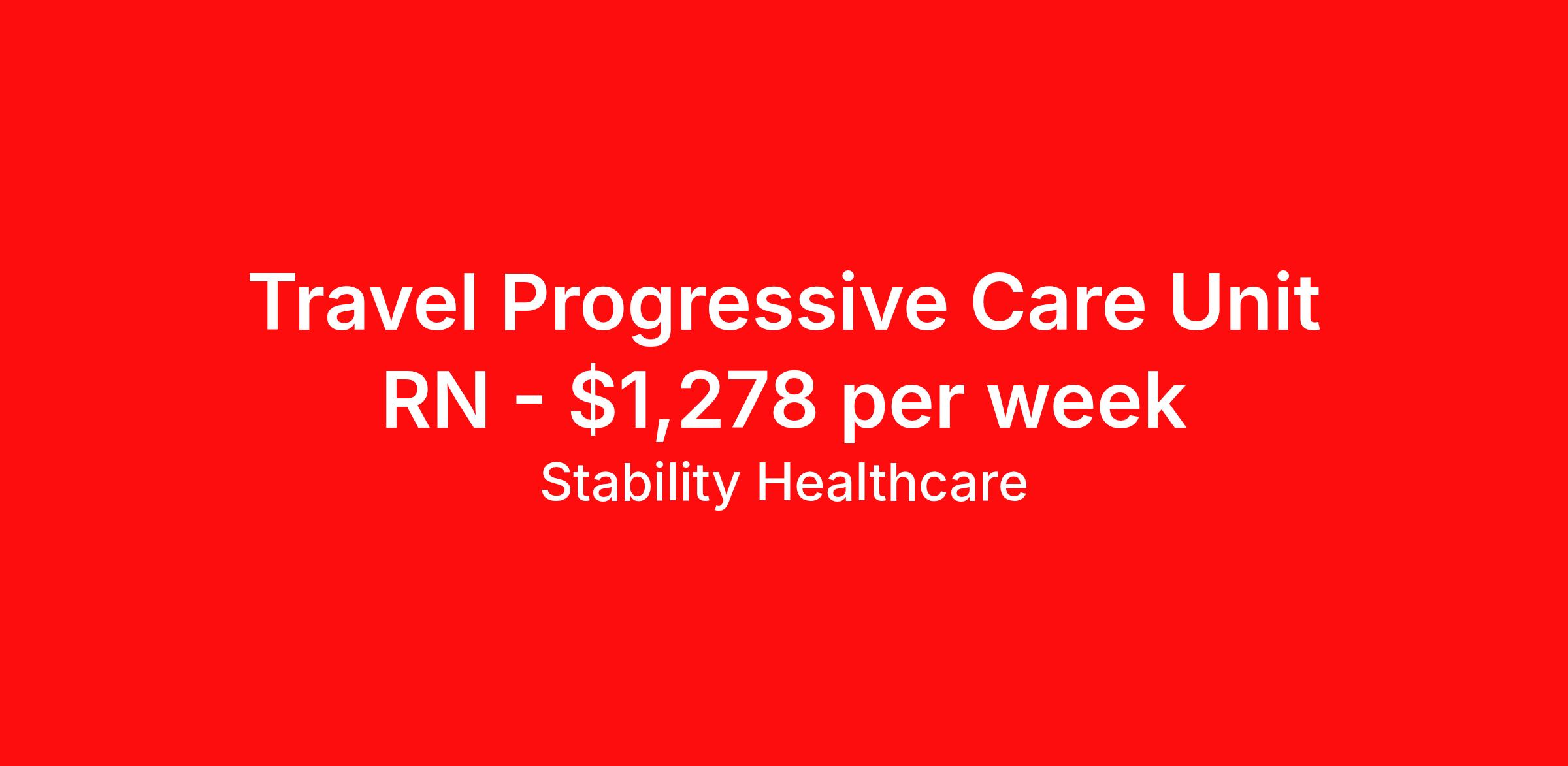 Stability Healthcare is seeking a travel nurse RN PCU - Progressive Care Unit for a travel nursing job in Jacksonville, Florida. Job Description & Requirements Specialty: PCU - Progressive Care Unit Discipline: RN Start Date: 04/12/2026 Duration: 13 weeks 36 hours per week Shift: 12 hours, nights Employment Type: Travel Stability Healthcare is looking for a Tele Step-Down RN contract position in Jacksonville, FL. The PCU nurse is sometimes also called a step-down nurse and the PCU is also known as cardiac stepdown, medical stepdown, neuro stepdown, surgical stepdown and ER holding. PCU nursing jobs traditionally operate between the levels of general and ICU care, and more recently, in the field of critical care, as well. *$600 travel bonus *Day 1 health insurance with United Healthcare *PTO plan start accruing on day 1, use during contract or cash out at the end! *Guaranteed stipend if facility calls you off *Extra hour bonus earn an additional hourly bonus for working over your weekly contracted hours Stability Job ID 827250. Pay package is based on 12 hour shifts and 36 hours per week (subject to confirmation) with tax-free stipend amount to be determined. Posted job title: Tele Step-Down About Stability Healthcare Stability Healthcare was founded in 2009, with the mission of becoming the best Travel Nursing Agency in California. We have been rated one of the top travel nursing agencies and offer our nurses the highest paying travel nursing jobs available. We have access to the best travel assignments from 1000’s of facilities. You can start the year off in sunny California, spend the Spring in the Colorado Rockies, enjoy the Summer in the Mid-West, experience the change of seasons in Boston and New York, and hit the beaches of Florida in the winter. Our Nurses work in the best hospitals and health systems in the country. Benefits Guaranteed Hours Benefits start day 1