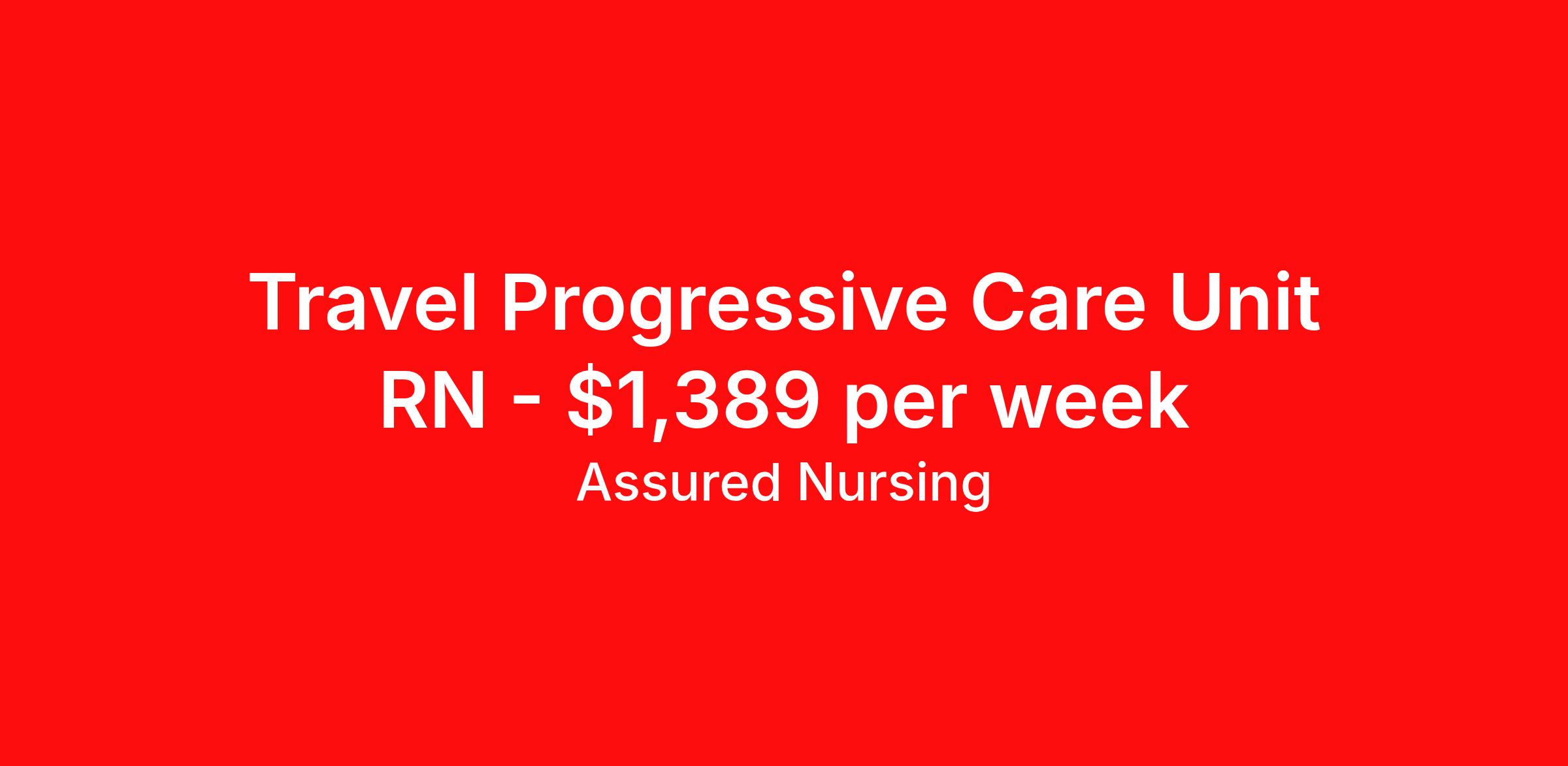 Assured Nursing is seeking a travel nurse RN PCU - Progressive Care Unit for a travel nursing job in Jacksonville, Florida. Job Description & Requirements Specialty: PCU - Progressive Care Unit Discipline: RN Start Date: 04/12/2026 Duration: 13 weeks 36 hours per week Shift: 12 hours, days Employment Type: Travel 36 - 48 hour contracts acceptableEvery other weekendEaster Required Assured Nursing Job ID 36116036. Pay package is based on 12 hour shifts and 36.0 hours per week (subject to confirmation) with tax-free stipend amount to be determined. Posted job title: RN:PCU,07:00:00-19:30:00 Benefits Weekly pay Holiday Pay 401k retirement plan Referral bonus Medical benefits Dental benefits Vision benefits