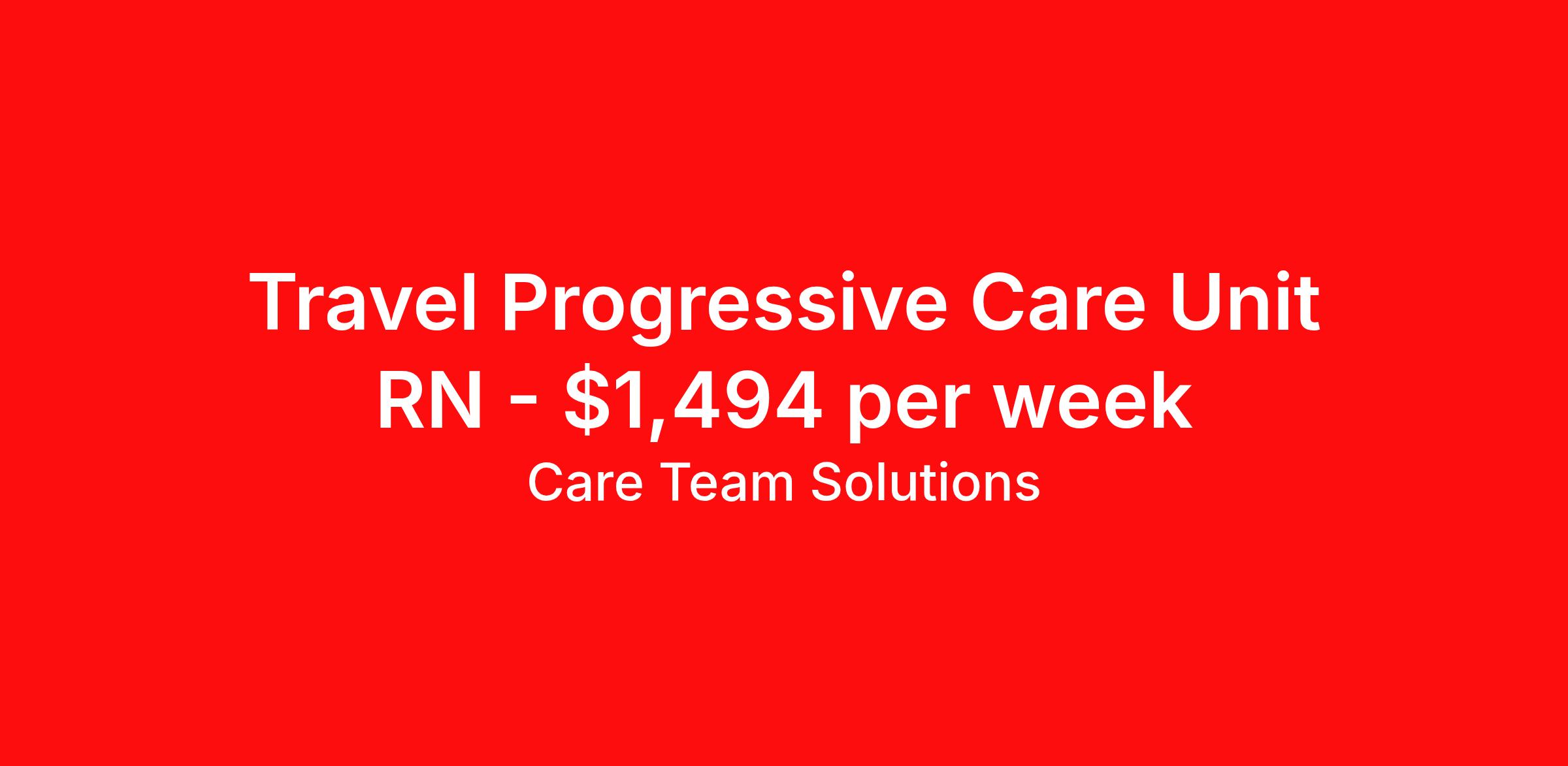 Care Team Solutions is seeking a travel nurse RN PCU - Progressive Care Unit for a travel nursing job in Asheville, North Carolina. Job Description & Requirements Specialty: PCU - Progressive Care Unit Discipline: RN Start Date: ASAP Duration: 13 weeks 36 hours per week Shift: 12 hours Employment Type: Travel Registered Nurse must have 2 years of recent experience in particular specialty Details: Must Have 2 Years of recent Progressive Care Unit experience. Specialty: Progressive Care Unit Discipline: Registered Nurse Start Date: 2026-03-09 Duration: 13 Weeks Shift: 12 Hours Overnight shift. Hours Per Week: 36 Hours Employment Type: Contract Gross Weekly Pay: $1494.37 Six things that won’t happen if you apply to this job: You won’t have to guess what the downsides are. We’ll tell you up front. You won’t show up on day 1 and find out this is not what you signed up for. We won't leave your phone call ringing when it's inconvenient. Business hours for you are business hours for us. You won’t get shuffled to some customer service rep when a problem pops up. If we screw up something in securing your placement, we'll own it. That means it's on us to make it right. You won’t figure out your credentials alone. Our credentialing experts will walk you through it step by step. We've talked to thousands of travel nurses like you. We know you want good pay. You want to choose when you work. But the one thing nurse after nurse has said they want and don't have is someone in their corner. There's a lot in this business that’s messed up. We’re trying to be the people that fix it. You and every nurse with the guts to travel deserve it. We've worked hard for you to enjoy some one-of-a-kind benefits you'll not likely find anywhere else, because they benefit you more than they benefit us: Our early pay program Student loan reimbursement Free well-being tele-visits with a psychologist Care Team Solutions Job ID 584275. Pay package is based on 12 hour shifts and 36 hours per week (subject to confirmation) with tax-free stipend amount to be determined. Posted job title: BACKFILL - TRAVEL - RN - MED/TELE - A6W NEURO TELE (620) 6:45PM-7:15AM About Care Team Solutions Two brothers who give an enormous damn. We're Justin and Kyle. Neither of us are nurses. It doesn’t take a nurse to see that the way travel nurses are treated sucks. Nursing is already hard enough. Travel nursing takes serious guts. You get the toughest assignments in places you’ve never been. Which can be fun, but it’s also stressful. You’re in your element but outside of your hometown. You can be a stranger on the team. If anyone deserves someone in their corner, it’s you. But that’s not how most agencies operate. Which is why travel nurses hate working with them. We got into this business because we saw bucket-loads of nurses moving through the "churn and burn" travel machinery. We absolutely hate that. You'll do your best work when you have the placements you want and feel fully supported in your work. We pay our people well because we want them to treat you well. Our recruiters are amazing (we picked each of them ourselves), but if you've got a problem too big for them, they can come straight to us. We work like ten feet away. The "Churners and Burners" promise you the same benefits. They might as well copy/paste them from each other. We have them too: 401k, holiday pay, healthcare, dental, travel reimbursement, etc But we've worked hard for you to enjoy some one-of-a-kind benefits you'll not likely find anywhere else, because they benefit you more than they benefit us: Our early pay program Student loan reimbursement Free well-being tele-visits with a psychologist Benefits Weekly pay Holiday Pay Guaranteed Hours 401k retirement plan Wellness and fitness programs Referral bonus Medical benefits Dental benefits Vision benefits School loan reimbursement