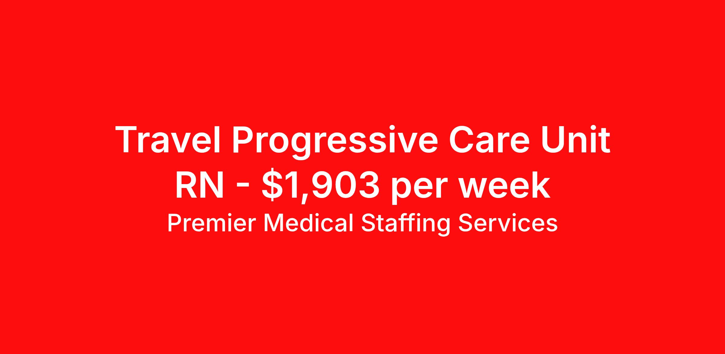 Premier Medical Staffing Services is seeking a travel nurse RN PCU - Progressive Care Unit for a travel nursing job in Shelby, North Carolina. Job Description & Requirements Specialty: PCU - Progressive Care Unit Discipline: RN Start Date: 04/13/2026 Duration: 12 weeks 36 hours per week Shift: 12 hours Employment Type: Travel Premier Medical Staffing Job ID 624921. Pay package is based on 12 hour shifts and 36 hours per week (subject to confirmation) with tax-free stipend amount to be determined. Posted job title: RN PCU About Premier Medical Staffing Services Premier Medical Staffing Services, LLC is a nationally expanding healthcare staffing firm for healthcare professionals and companies. We understand our clients’ need for highly qualified, expertly trained medical professionals and are passionate about helping clinicians find employment opportunities that fit their personality and needs. Able to accommodate the ever-changing needs of the healthcare landscape, we offer per-diem, contract and direct hire placements to support the unique needs of each industry sector. Premier Medical Staffing Services is Joint Commission Certified, a Military Spouse Employment Partner and is certified as a Women’s Business Enterprise. We are proudly nurse owned.