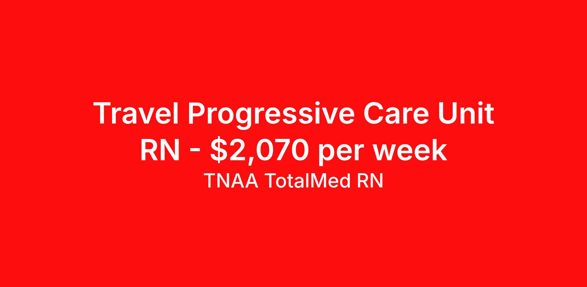 TNAA TotalMed RN is seeking a travel nurse RN PCU - Progressive Care Unit for a travel nursing job in Sierra Vista, Arizona. Job Description & Requirements Specialty: PCU - Progressive Care Unit Discipline: RN Start Date: 05/04/2026 Duration: 13 weeks 36 hours per week Shift: 12 hours, nights Employment Type: Travel About TNAA TotalMed RN TotalMed is a Top Ten, travel nursing and healthcare staffing agency with the mission of igniting purpose in healthcare. The organization staffs nurses, therapists, pharmacists, and other clinicians of all specialties in all 50 states. They offer local and travel jobs and match caregivers with the right organization to assist both facilities and patients. As an organization, they focus on putting highly-skilled staff into facilities to ensure adequate staffing for a better patient experience. TotalMed specializes in recruiting and placing healthcare professionals in travel, PRN, and permanent positions across the country in Nursing and Allied Health. Throughout 2020, the organization filled roles at even the most short-staffed facilities during the most challenging time in healthcare. By matching the right travel healthcare professional with the right organization, TotalMed continues to offer a lifeline to facilities and their patients. Benefits Weekly pay Guaranteed Hours Continuing Education 401k retirement plan Sick pay Wellness and fitness programs Referral bonus Employee assistance programs Medical benefits Dental benefits Vision benefits Benefits start day 1