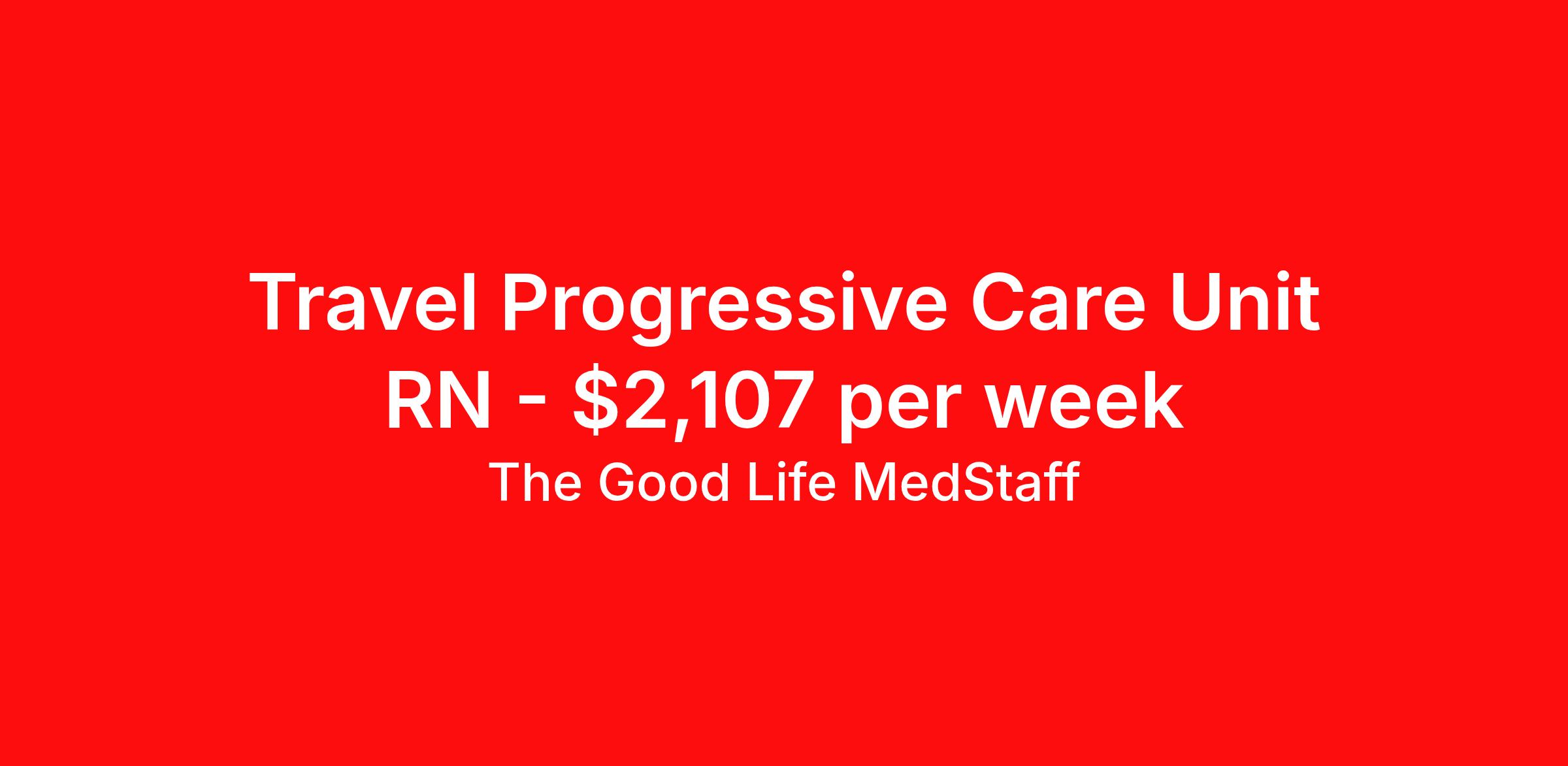 The Good Life MedStaff is seeking a travel nurse RN PCU - Progressive Care Unit for a travel nursing job in Rapid City, South Dakota. Job Description & Requirements Specialty: PCU - Progressive Care Unit Discipline: RN Start Date: 04/13/2026 Duration: 13 weeks 36 hours per week Shift: 12 hours, nights Employment Type: Travel The Good Life MedStaff Job ID 36184260. Pay package is based on 12 hour shifts and 36.0 hours per week (subject to confirmation) with tax-free stipend amount to be determined. Posted job title: RN:Step Down,19:00:00-07:00:00 About The Good Life MedStaff We are a Travel Nursing Agency, connecting compassionate caregivers, who love adventure, with amazing opportunities. We want to bring you to The Good Life! Connecting, Caring, and Competing for the best opportunities to help you reach your goals! Benefits Medical benefits Dental benefits Vision benefits 401k retirement plan Referral bonus