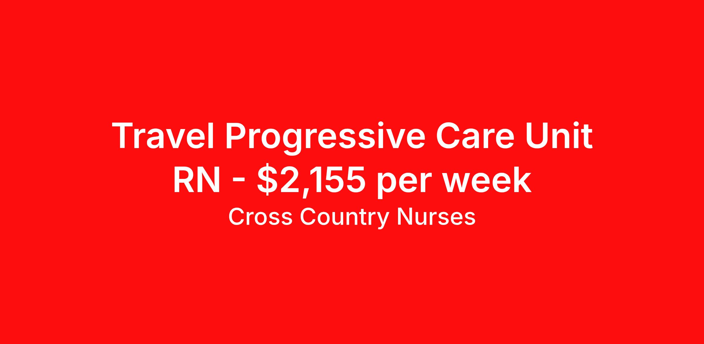 Cross Country Nurses is seeking a travel nurse RN PCU - Progressive Care Unit for a travel nursing job in Tulsa, Oklahoma. Job Description & Requirements Specialty: PCU - Progressive Care Unit Discipline: RN Start Date: 04/06/2026 Duration: 13 weeks 36 hours per week Shift: 12 hours, nights Employment Type: Travel Job Description As a registered nurse - progressive care unit (RN PCU), you will help care for patients who need a moderate level of monitoring and assessment but whose conditions do not require the resources of the intensive care unit. In other words, it is an intermediary level of hospital care. Telemetry units, intermediate care units, direct observation units, step-down units, or transitional care units are sometimes called progressive care units. Minimum Requirements At least 1 year of recent acute care experience in specialty Active RN license Benefits The benefits of taking a travel nursing job with Cross Country include: Private housing or generous housing allowance Comprehensive health insurance with prescription coverage Dependent health insurance with prescription coverage Competitive salaries Referral bonuses Travel reimbursement 401(k) retirement plan Direct deposit/free checking Unlimited free CE credits Cross Country Job ID 1234347. Pay package is based on 12 hour shifts and 36 hours per week (subject to confirmation) with tax-free stipend amount to be determined. Posted job title: Registered Nurse / Progressive Care Unit About Cross Country Nurses You care for others — we’re here to care for you. At Cross Country, we know travel nursing is about more than just the job. It’s about building a career that supports your lifestyle, your values, and your impact. We offer competitive pay, full benefits, and 24/7 support from a team that truly understands what it means to be on the front lines. Wherever your journey takes you, we’re with you every step of the way. Let’s build your best life — one assignment at a time. Benefits 401k retirement plan Referral bonus