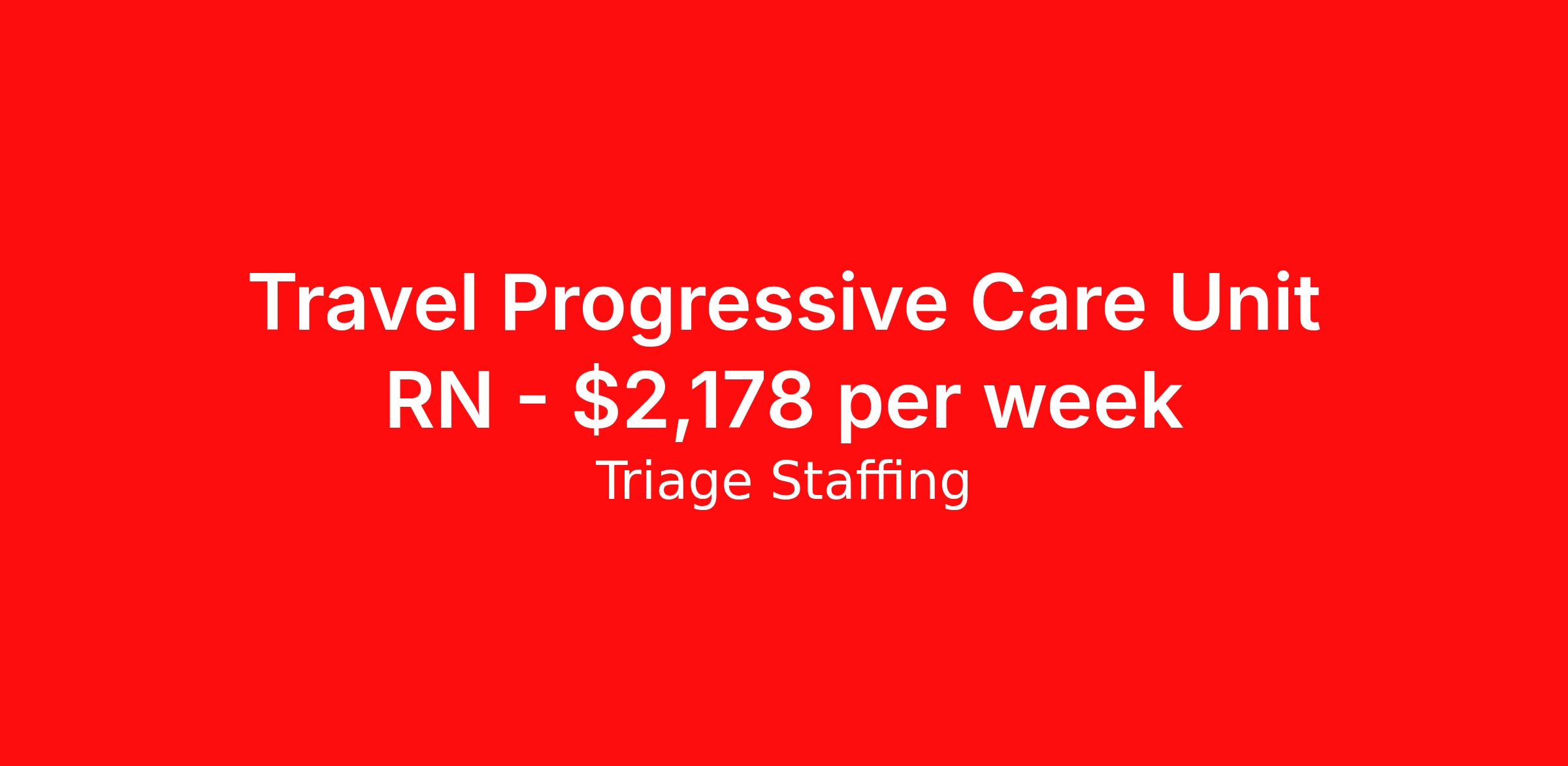 Triage Staffing is seeking a travel nurse RN PCU - Progressive Care Unit for a travel nursing job in Kearney, Nebraska. Job Description & Requirements Specialty: PCU - Progressive Care Unit Discipline: RN Start Date: 04/13/2026 Duration: 13 weeks 36 hours per week Shift: 12 hours, nights Employment Type: Travel Travel Nursing: Progressive Care Unit Kearney, NE Location: Kearney, NE Start Date: 4/13/2026 Shift Details: 12H Nights 36 hours per week Length: 13 WEEKS Apply for specific facility details.Stepdown/PCU RN Triage Staffing Job ID VQD9HFHM. Posted job title: Nursing: Progressive Care Unit About Triage Staffing At Triage, we prefer to be real . Real about expectations—both ours and yours. Real about how a decision you make today could affect your tomorrows. Real about how compensation actually works. Real about how great—or grating—your next supervisor may be. Being real allows everyone at Triage to be ready . Ready to serve you with real honesty. So if that gig near the ocean is really no day at the beach, or that third shift comes with a second-class rate, we tell you. So you can be ready, too. We staff all five major divisions of acute care—nursing, lab, radiology, cardiopulmonary and rehab therapy, offering: - Competitive, custom pay packages - One point of contact for both travelers and facilities (per division) - A reliable recruiter who's got your back throughout your entire assignment - In-house compliance and accounting specialists - A clinical liaison team available 24/7 to offer medical and professional support and career development - A mentoring program that is run and managed by actual clinicians—yeah, you read that right - And more (because of course there’s more) Are we the biggest? No. Are we the best? That’s rather subjective, but we’re trying to be. Will we work like hell to get you as close to your idea of heaven as possible? Yes. Yes, we will. Benefits: Day One comprehensive, nationwide insurance plans for health, vision and dental and life—including a HSA option Day One 401(k) program with employer-matching contributions once eligible Facility cancelling protection—your time is money on and off-the-clock Guaranteed hours Weekly paychecks via direct deposit Earned vacation bonuses for time worked Paid holidays Employee assistance program (EAP)—your mental health is important, too Continuing education, certification and licensing reimbursement Workers comp—because accidents happen Top-rated professional liability insurance Company provided housing options Referral bonus—$750 in your pocket after they’ve completed a 13-week assignment