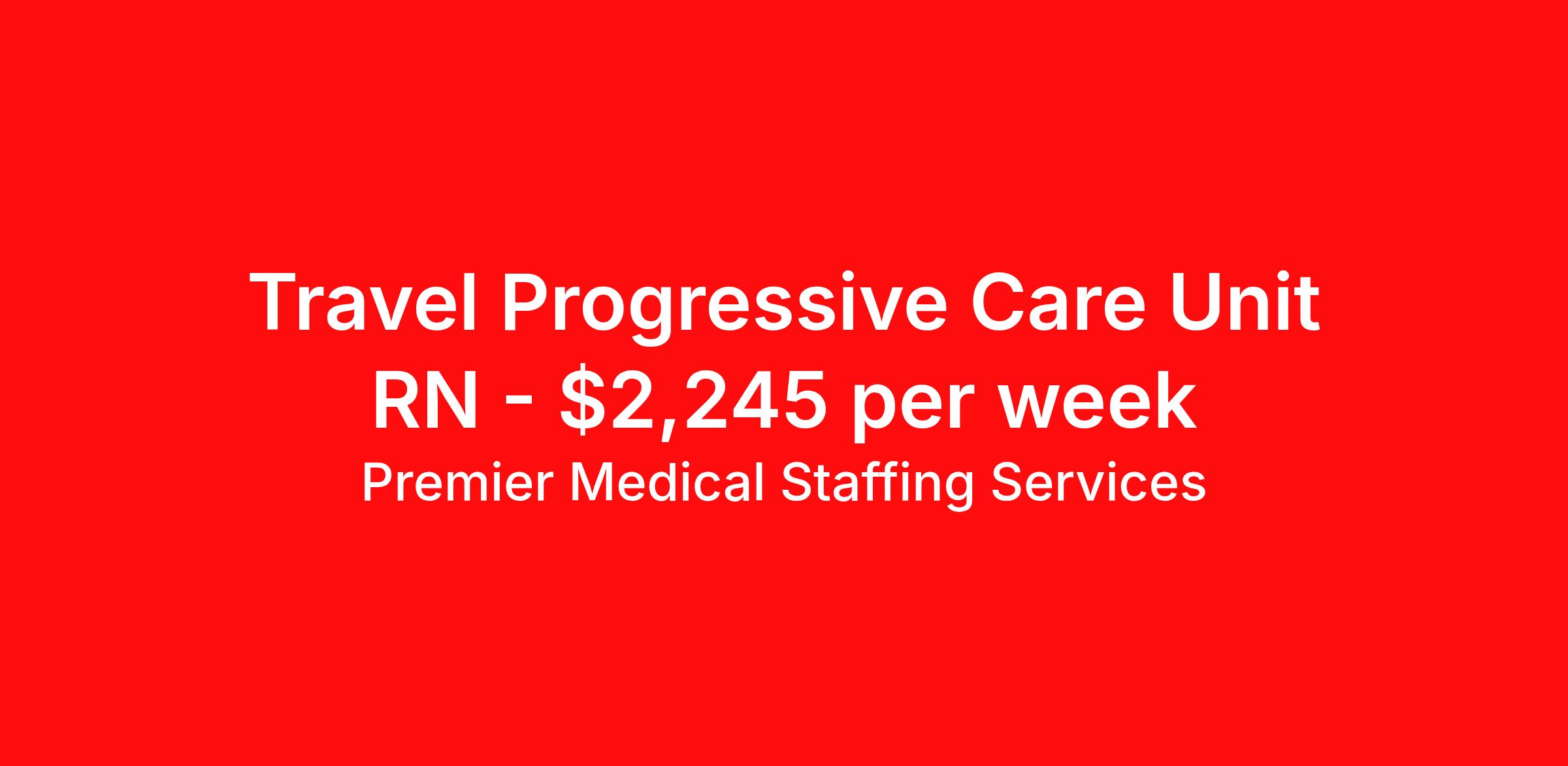 Premier Medical Staffing Services is seeking a travel nurse RN PCU - Progressive Care Unit for a travel nursing job in Des Moines, Iowa. Job Description & Requirements Specialty: PCU - Progressive Care Unit Discipline: RN Start Date: 04/13/2026 Duration: 13 weeks 36 hours per week Shift: 12 hours Employment Type: Travel Premier Medical Staffing Job ID 626623. Pay package is based on 12 hour shifts and 36 hours per week (subject to confirmation) with tax-free stipend amount to be determined. Posted job title: RN PCU About Premier Medical Staffing Services Premier Medical Staffing Services, LLC is a nationally expanding healthcare staffing firm for healthcare professionals and companies. We understand our clients’ need for highly qualified, expertly trained medical professionals and are passionate about helping clinicians find employment opportunities that fit their personality and needs. Able to accommodate the ever-changing needs of the healthcare landscape, we offer per-diem, contract and direct hire placements to support the unique needs of each industry sector. Premier Medical Staffing Services is Joint Commission Certified, a Military Spouse Employment Partner and is certified as a Women’s Business Enterprise. We are proudly nurse owned.