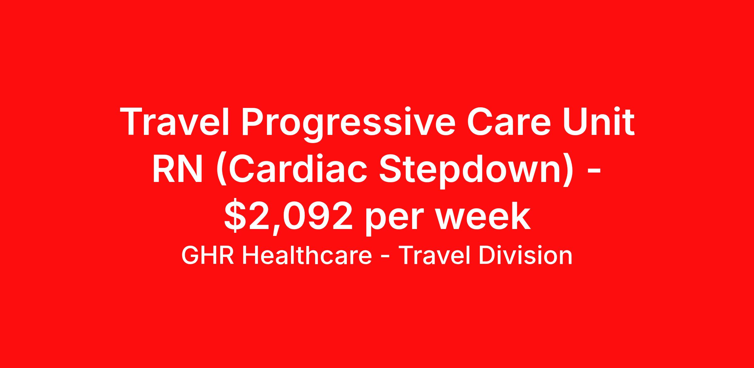 GHR Healthcare - Travel Division is seeking a travel nurse RN PCU - Progressive Care Unit for a travel nursing job in Albany, Georgia. Job Description & Requirements Specialty: PCU - Progressive Care Unit Discipline: RN Start Date: ASAP Duration: 17 weeks 36 hours per week Shift: 12 hours Employment Type: Travel GHR Healthcare - Travel Division Job ID 75393985. Pay package is based on 12 hour shifts and 36 hours per week (subject to confirmation) with tax-free stipend amount to be determined. About GHR Healthcare - Travel Division For over 30 years, GHR Healthcare has been the bridge between healthcare professionals and the facilities that need them nationwide. We're committed to uncovering your ideal fit, supported by GHR's dedication to competitive compensation, transparent communication, and a devoted team that genuinely cares about your career journey. You can trust us to stand by your side as your advocate, confidante, and partner in advancing your career. At GHR, care and consideration are at the heart of everything we do. Visit ghrhealthcare.com to learn more.