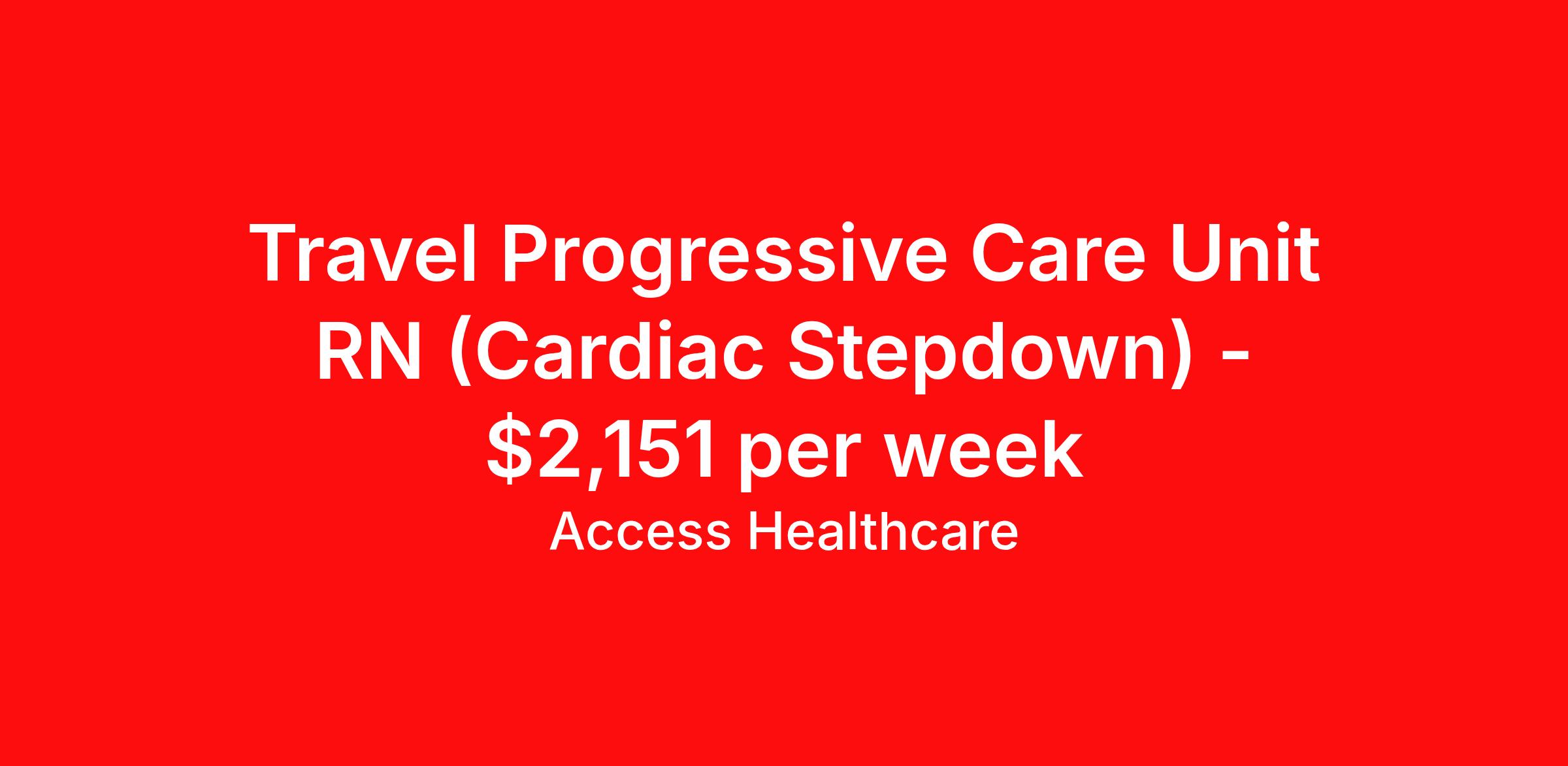 Travel Progressive Care Unit RN (Cardiac Stepdown) - $2,151 per week