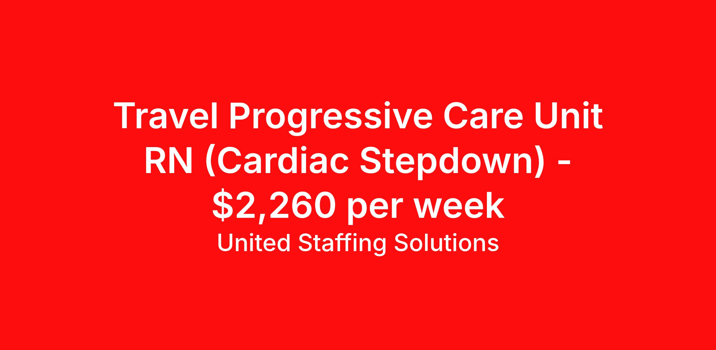 United Staffing Solutions is seeking a travel nurse RN PCU - Progressive Care Unit for a travel nursing job in Albany, Georgia. Job Description & Requirements Specialty: PCU - Progressive Care Unit Discipline: RN Start Date: ASAP Duration: 17 weeks 36 hours per week Shift: 12 hours, days Employment Type: Travel Required: 2 years Stepdown RN (acute care) — no exceptions EMR: MEDITECH Certs: BLS ACLS (NIHSS preferred) Schedule: 12s (6:45a/6:45p), every other weekend, holiday flexibility Unit: Cardiac stepdown with tele (Philips); must read/interpret strips Floating: May float to ICU (stepdown patients / tasking if needed) Hard rule: Must live within 75 miles of facility per driver’s license; DL copy required with submission Dress code: Natural hair only; no fake nails/shellac; no facial piercings; no visible tattoos Offer type: Interview or auto-offer (resume review) — specify at submission United Staffing Solutions Job ID 1044251. Pay package is based on 12 hour shifts and 36 hours per week (subject to confirmation) with tax-free stipend amount to be determined. About United Staffing Solutions United Staffing Solutions, Inc. (USS) is one of the largest privately-owned business in America, with 4 divisions and staffing in over 4,000 job categories. USS offers a complete portfolio of personnel solutions to small, mid-sized and large organizations through the tri-state region. Specializes in staffing and recruitment for various industries, including Travel Healthcare, Education, Light Industrial, IT, Security and Administrative Roles. Comprehensive services for workforce solutions, including temporary, permanent and contract staffing Expertise in diverse talent sourcing and matching skilled candidates with appropriate roles. Strong knowledge of industry regulations and compliance standards. Benefits Medical benefits Referral bonus Weekly pay