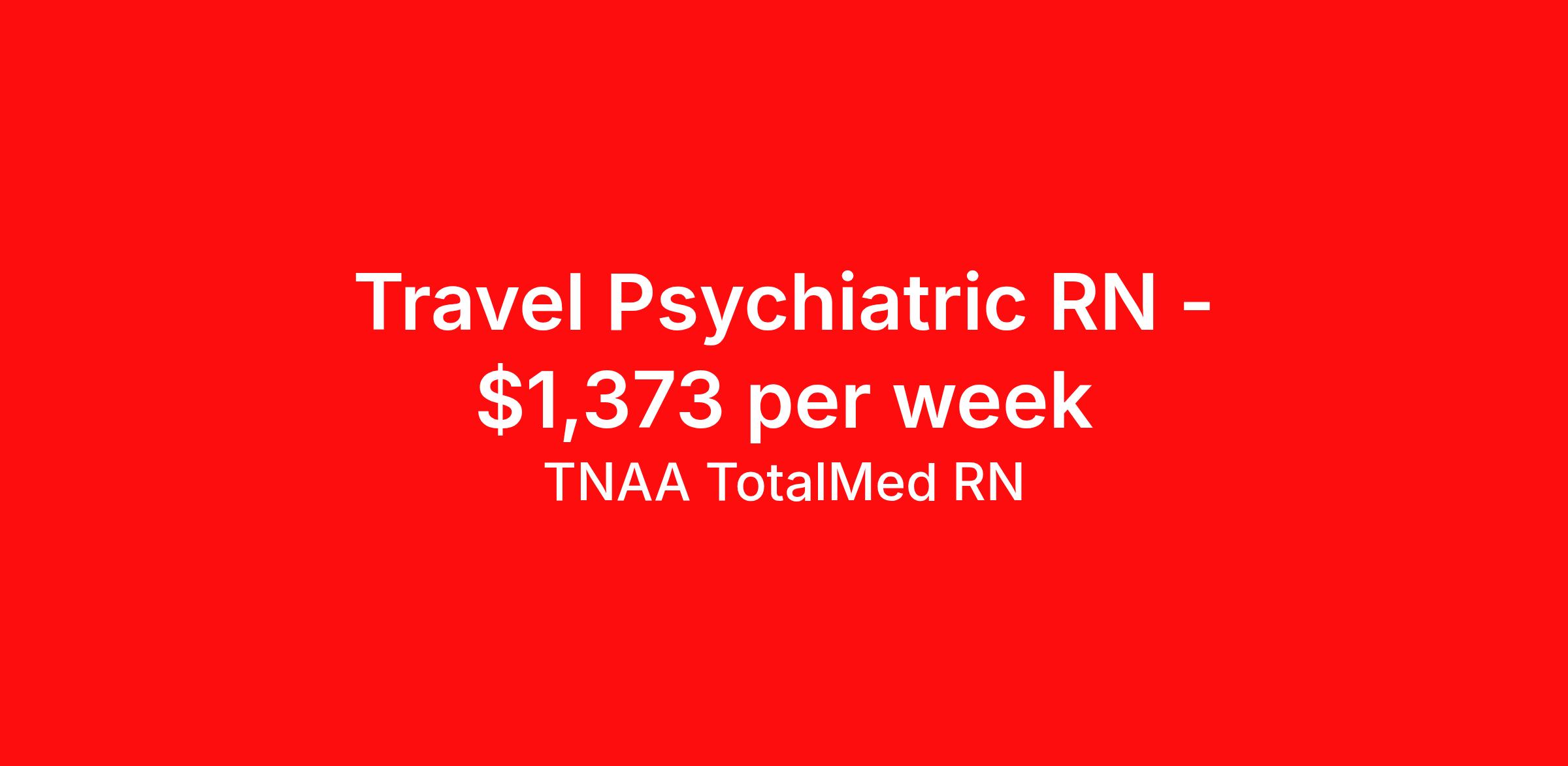 TNAA TotalMed RN is seeking a travel nurse RN Psychiatric for a travel nursing job in Santa Fe, New Mexico. Job Description & Requirements Specialty: Psychiatric Discipline: RN Duration: 13 weeks 36 hours per week Shift: 12 hours, nights Employment Type: Travel We're looking for Psychiatric Nurses for an immediate travel nurse opening in Santa Fe, NM. The right RN should have 1-2 years recent psychiatric nursing experience. Read below for more requirements. As a Psychiatric nurse, you'll work under general supervision to provide professional nursing care for those with emotional disturbances or mental illnesses in Behavioral Health and Recovery Services. The Psychiatric Nurse also collaborates with clinical and case management staff to coordinate care and assist in patient treatment planning. As a Psychiatric Travel Nurse, you should be prepared to perform the following tasks: Conduct intake assessments through interviews with patients and relatives to gather case history, and complete physical and mental health assessments Observe and report patient behavioral changes. Assist patients in understanding the nature of emotional disturbances and accepting the need for treatment. Document all patient information on medical charts and follow physician's written orders while maintaining patient confidentiality. Plan nursing care for patients by providing nursing diagnosis of the medical and emotional status of patients and recommending treatment options. Consult with psychiatrists and other behavioral health staff in designing appropriate treatment plans for patients. Administer and record reactions to psychotropic drugs and other medications, arranging further medical attention when necessary. Assist in maintaining a safe and secure environment for staff and patients. Test for pain vital signs and ensure appropriate pain treatment is administered. Maintain accurate records and documentation of patient treatments, immunizations and laboratory results according to standard medical recordkeeping. Perform administrative assignments such as filing, answering phones, typing, and completing electronic progress notes. Psychiatric Travel Nurses should be able to stand and walk for long periods of time, carry up to 20 pounds of weight, as well as bend, lean and stoop without difficulty. Moving or lifting of patients may require lifting of up to 50 pounds at times. Because of the unpredictable nature of psychiatric and emotional disturbances, Psychiatric RNs must possess excellent coping and stress management skills and be able to relate to people of all ages and backgrounds while maintaining proper patient - clinician boundaries. Requirements*: BLS, CPI, 2 Years * Additional certifications may be required before beginning an assignment. TotalMed Travel Job ID 1386157. Pay package is based on 12 hour shifts and 36 hours per week (subject to confirmation) with tax-free stipend amount to be determined. Posted job title: Psychiatric - Psych RN - Travel Nurse About TNAA TotalMed RN TotalMed is a Top Ten, travel nursing and healthcare staffing agency with the mission of igniting purpose in healthcare. The organization staffs nurses, therapists, pharmacists, and other clinicians of all specialties in all 50 states. They offer local and travel jobs and match caregivers with the right organization to assist both facilities and patients. As an organization, they focus on putting highly-skilled staff into facilities to ensure adequate staffing for a better patient experience. TotalMed specializes in recruiting and placing healthcare professionals in travel, PRN, and permanent positions across the country in Nursing and Allied Health. Throughout 2020, the organization filled roles at even the most short-staffed facilities during the most challenging time in healthcare. By matching the right travel healthcare professional with the right organization, TotalMed continues to offer a lifeline to facilities and their patients. Benefits Weekly pay Guaranteed Hours Continuing Education 401k retirement plan Sick pay Wellness and fitness programs Referral bonus Employee assistance programs Medical benefits Dental benefits Vision benefits Benefits start day 1