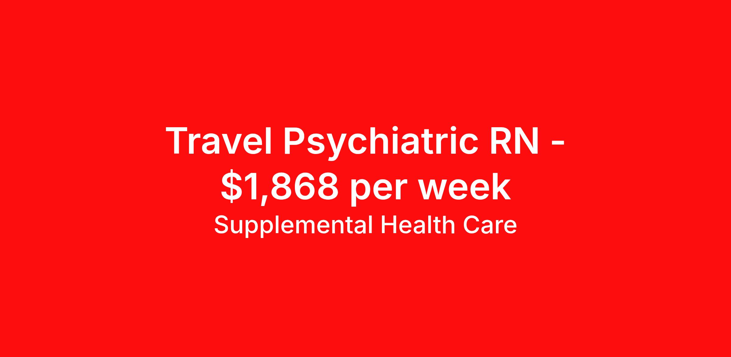 Supplemental Health Care is seeking a travel nurse RN Psychiatric for a travel nursing job in Huntington, West Virginia. Job Description & Requirements Specialty: Psychiatric Discipline: RN Start Date: ASAP Duration: 13 weeks 36 hours per week Shift: 12 hours Employment Type: Travel Job Description: Supplemental Health Care is hiring Psychiatric Registered Nurses for contract assignments at a partnering Behavioral Health facility in Huntington, West Virginia. Whether you’re looking to travel or stay local, we’re committed to helping Psych RNs find the right fit with top healthcare facilities across the country. With more than 40 years of experience in healthcare staffing, Supplemental Health Care offers reliable support, competitive pay, and great benefits every step of the way. Qualifications: West Virginia RN License American Heart Association BLS 2 Years of recent nursing experience Prior Psych nursing experience preferred Psychiatric RN Contract Details: $1,708 - $1,868 per week* FLEX shift available 13-week contract with possibility to extend *Estimated weekly payment may include both taxable wages and tax-free reimbursements for meals, housing, and incidentals. Please speak with a recruiter for details. Skills Needed: Ability to review and implement Recovery/Treatment plans Ability to support medical and psycho-social care for members served Ability to administer oral and injectable medications Ability to act as a team member and provide input via reporting observations and concerns and asking appropriate questions Ability to review and implement recovery treatment plans for members served Demonstrated ability to implement physical crisis and de-escalation techniques Apply today to get started with this Psychiatric RN contract opportunity, or talk to our team about the full range of Registered Nurse opportunities available. What We Offer: Full medical, dental, vision, life, and even pet insurance! Round the clock support. No matter where you are or what time it is, Supplemental Health Care is standing by. SHC's Share the Care referral program is the most dynamic, profitable referral program in the industry. 401(k) Retirement Savings Program with a wide range of investment options. Discounted and free online access to CEU courses through Supplemental University. Supplemental Health Care is an Equal Opportunity Employer. All candidates, including veterans and those with disabilities, are encouraged to apply. SHC will consider for employment qualified applicants with criminal histories in a manner consistent with the requirements of applicable local, state, or federal law. To learn more, visit www.shccares.com/eeo Supplemental Health Care Job ID 1469196. Pay package is based on 12 hour shifts and 36 hours per week (subject to confirmation) with tax-free stipend amount to be determined. Posted job title: Psych Registered Nurse - RN About Supplemental Health Care At Supplemental Health Care, a simple belief in the power of caring guides a unique commitment to world-class service in healthcare staffing. For 40 years, we’ve supported talented professionals pursuing their life calling in hospitals, schools, home health, corrections, behavioral health, and other settings. At SHC, we inspire vital connections and enrich lives and inspire better outcomes. As recipients of the Best in Staffing Awards for both Client and Talent, Supplemental Health Care is proud to be among only 2% of staffing companies singled out for the distinction based on the real feedback of our employees and the clients we serve. SHC has also earned The Joint Commission’s Gold Seal of Approval and is named among the Largest Health Care Staffing companies in the United States by Staffing Industry Analysts. We are also thrilled to recognize our very own SLP, Dr. Kelly Byrd as the American Staffing Association 2024 National Staffing Employee of the Year and Health Care Sector All-Star. We’re honored to connect Dr. Byrd to employment, share her incredible story, and support her family literacy nonprofit. For everyone that we serve, SHC is the place where caring hearts thrive. Benefits Referral bonus Benefits start day 1 401k retirement plan Continuing Education Discount program Health savings account